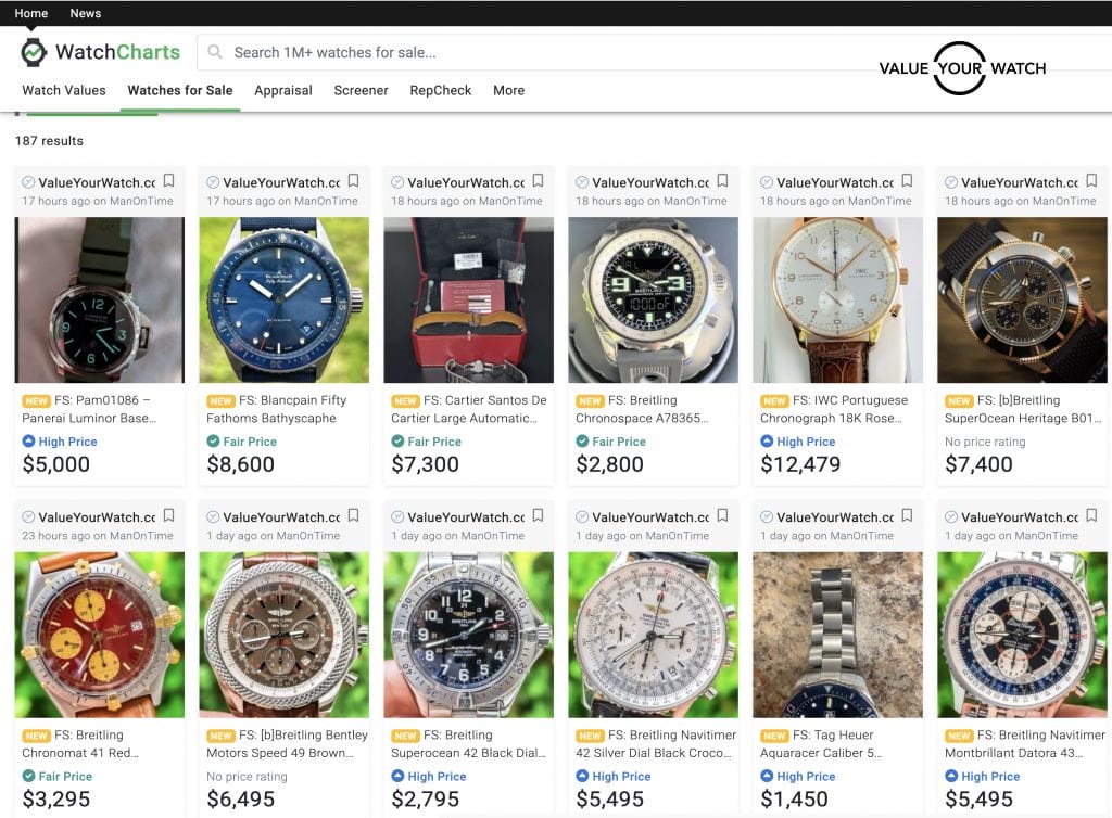 mywatchmart.com – This is another scraper, but one that is a bit more streamlined. It has two quick filters, source of the post filter, and Brand filter. It will quickly lead you to listings that you may find handy. This one has its own forums as well.
