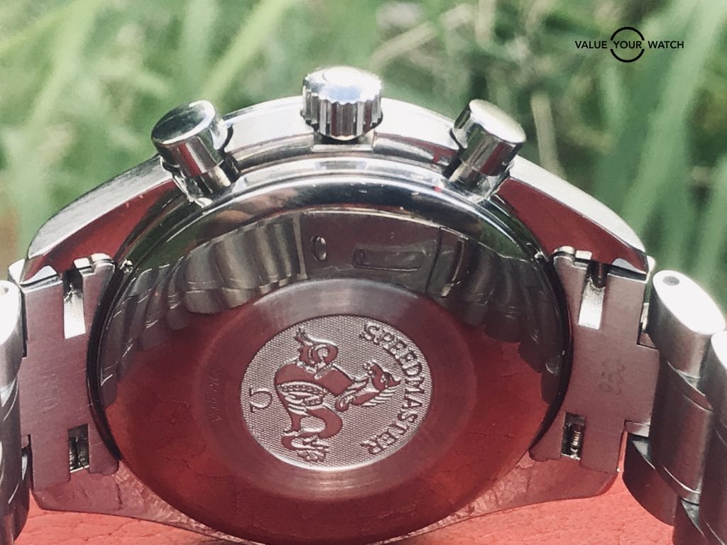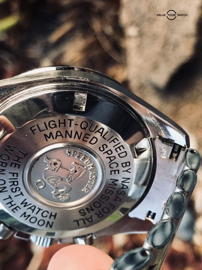 The Speedmaster Reduced is often mistaken for the moon watch because the dials look very similar at first. The case back does not mention anything about the moon watch. You can see the different case back on the picture below.