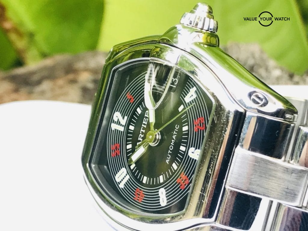 Cartier Roadster has many great dial variations. You can get white or black Roman dial or Las Vegas dial. The size of the dial does not feel too large or too small. Just right for the average person.