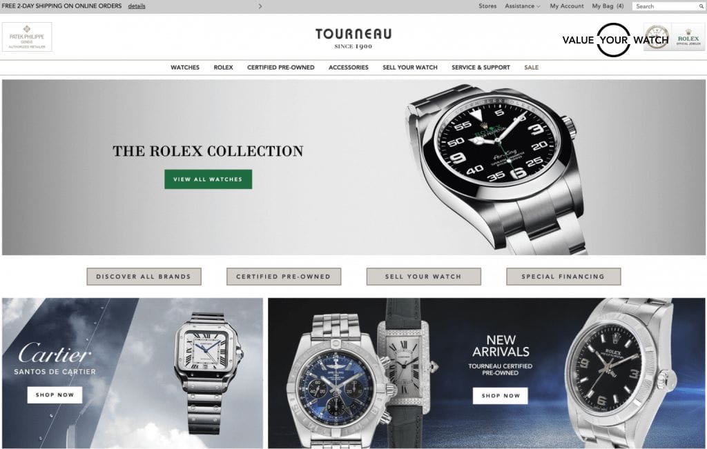 Tourneau is a well-known watch dealer of Rolex watches as well as nearly 100 brands since 1900. They also offer one of the largest certified pre-owned watch collection on their online site as well as in stores.