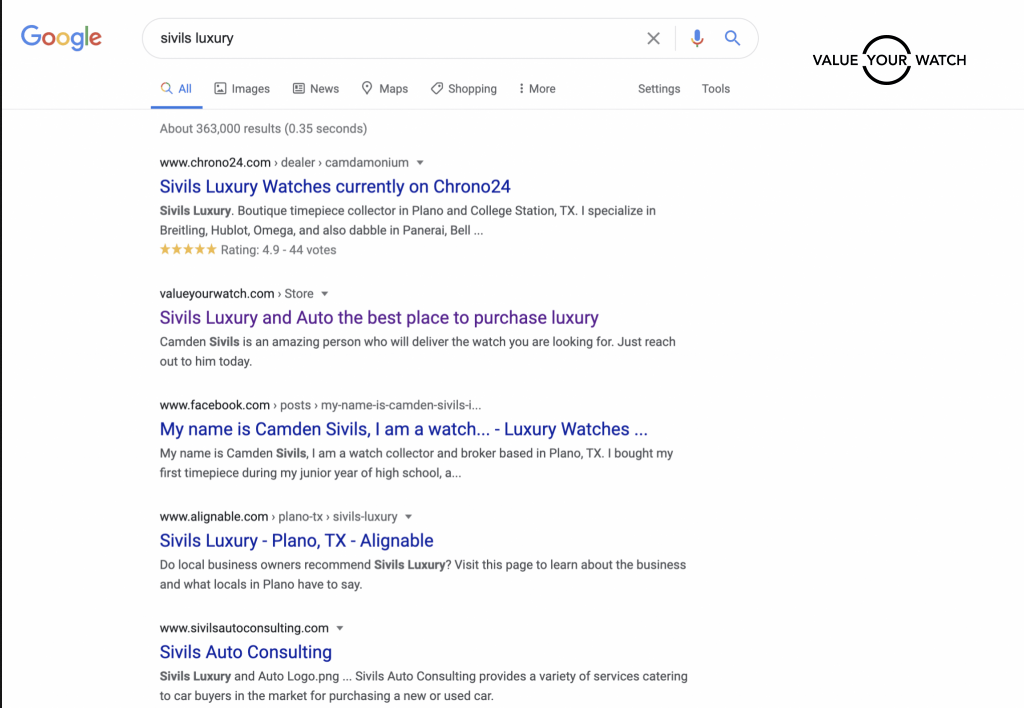 If you remember the SEO set up of your online store, you can allow people to search your store name online. For example, if you store name is the same as it is on eBay or any other marketplace, the store at Value Your Watch will show up close to the top of the search.