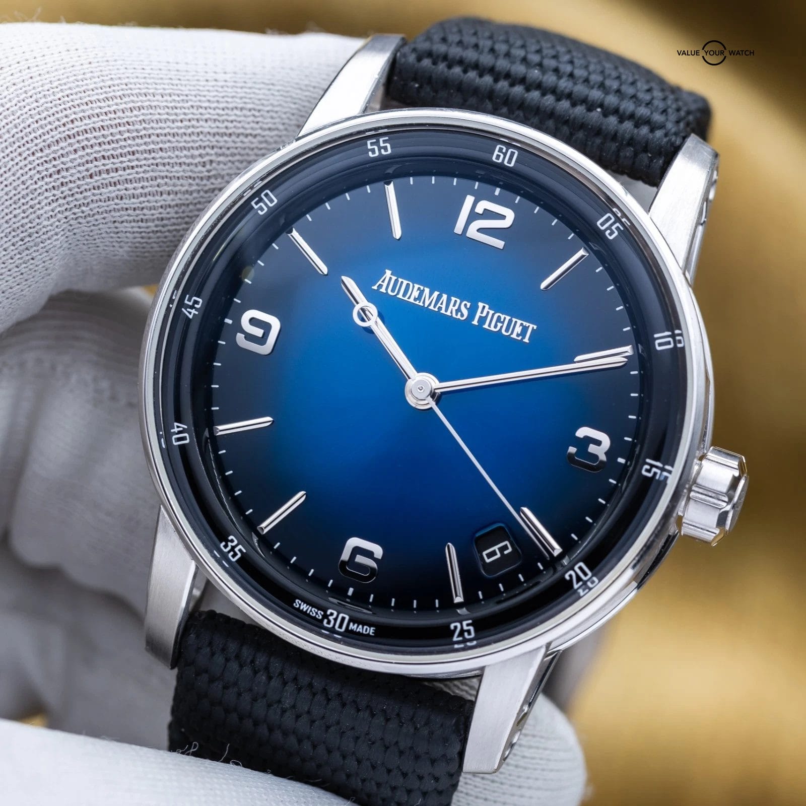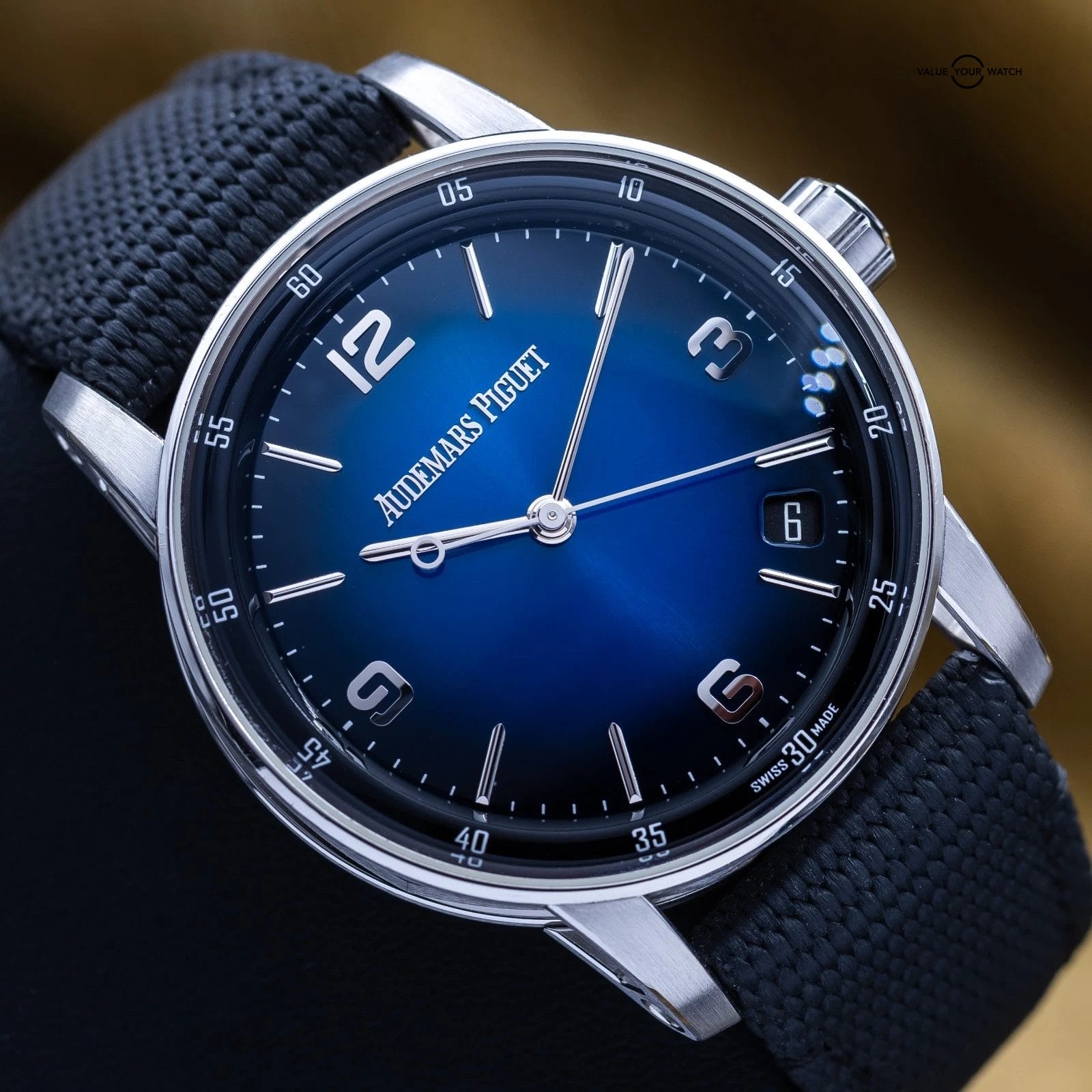 Specification: Audemars Piguet Code 11.59 41mm White Gold Blue Dial – AP 15210BC Complete Set