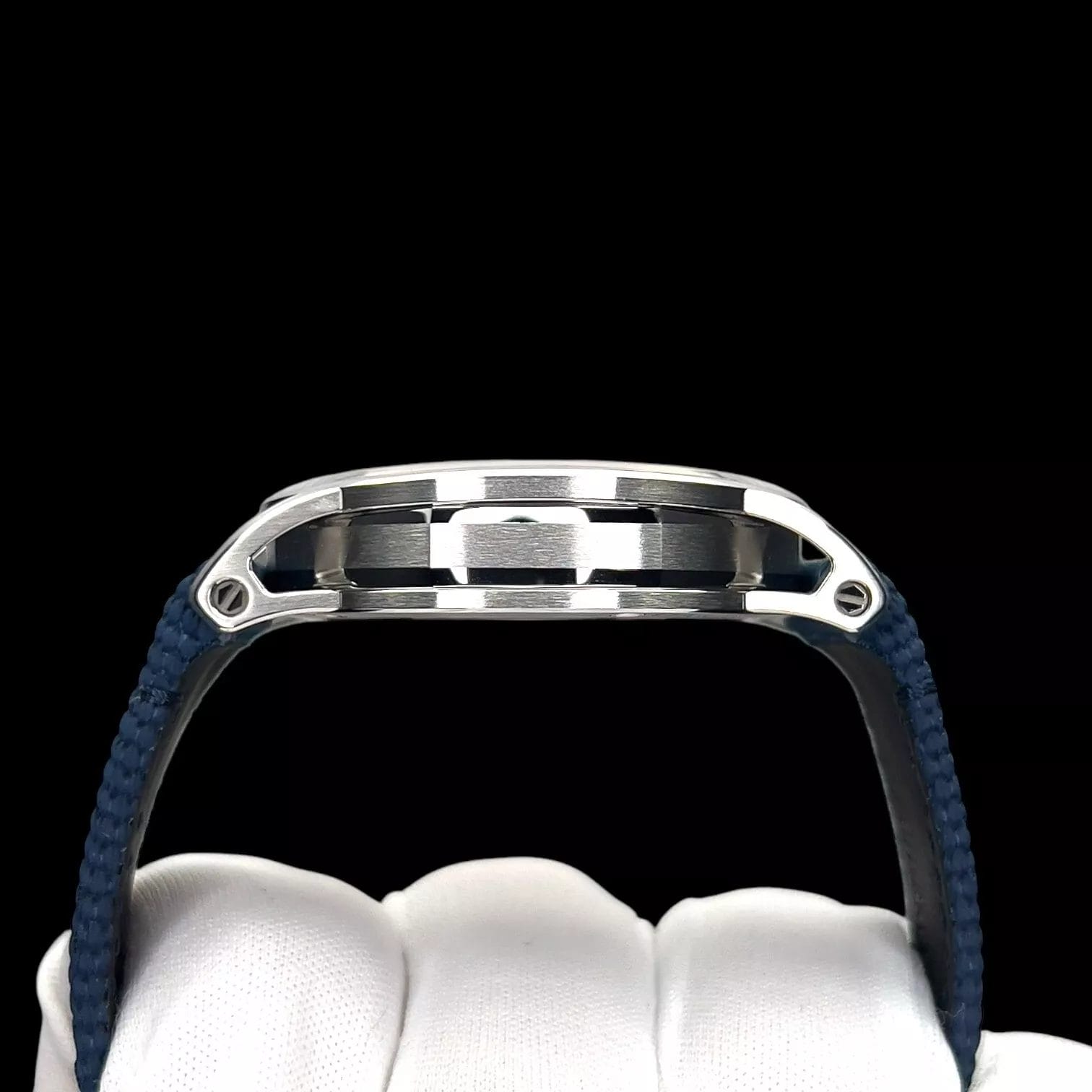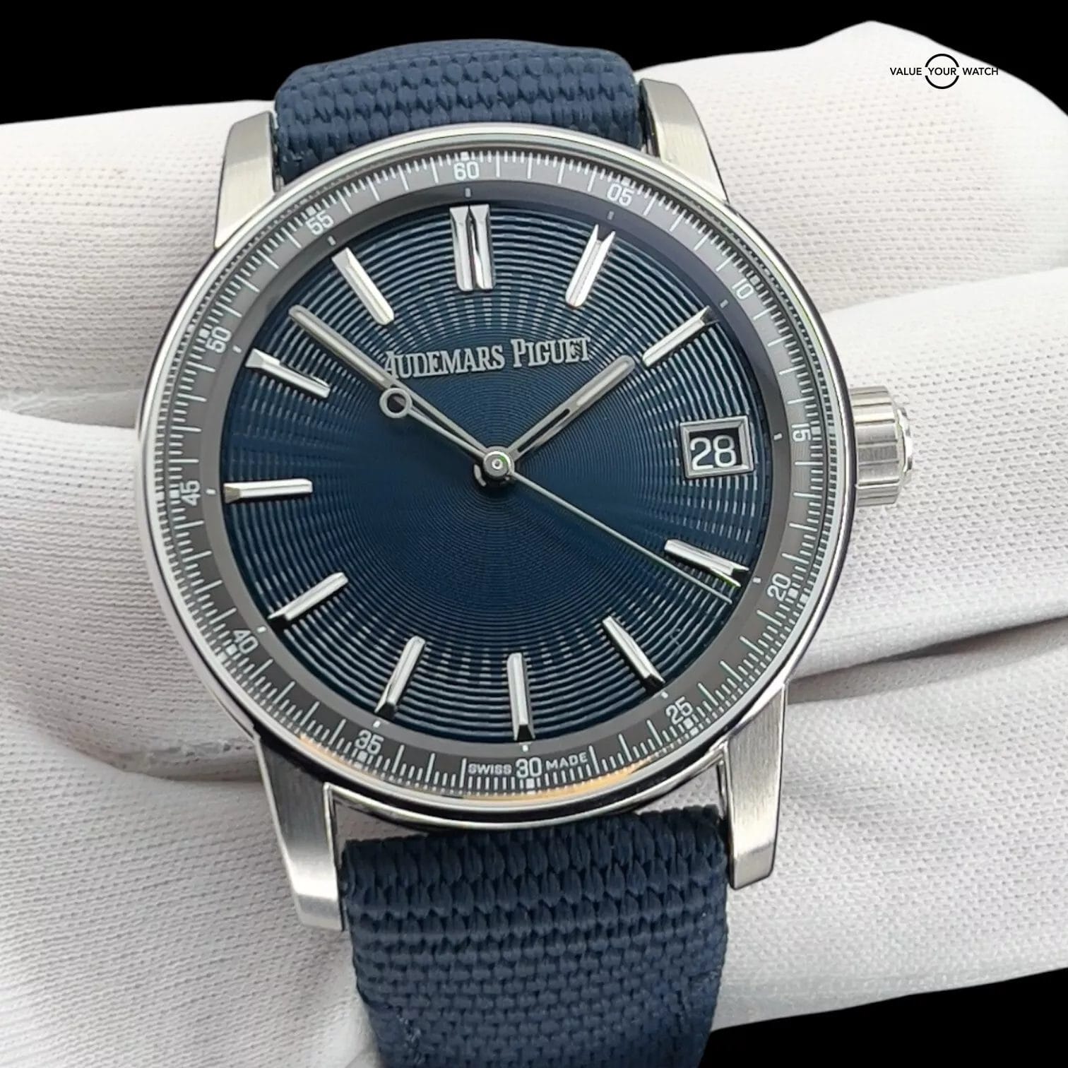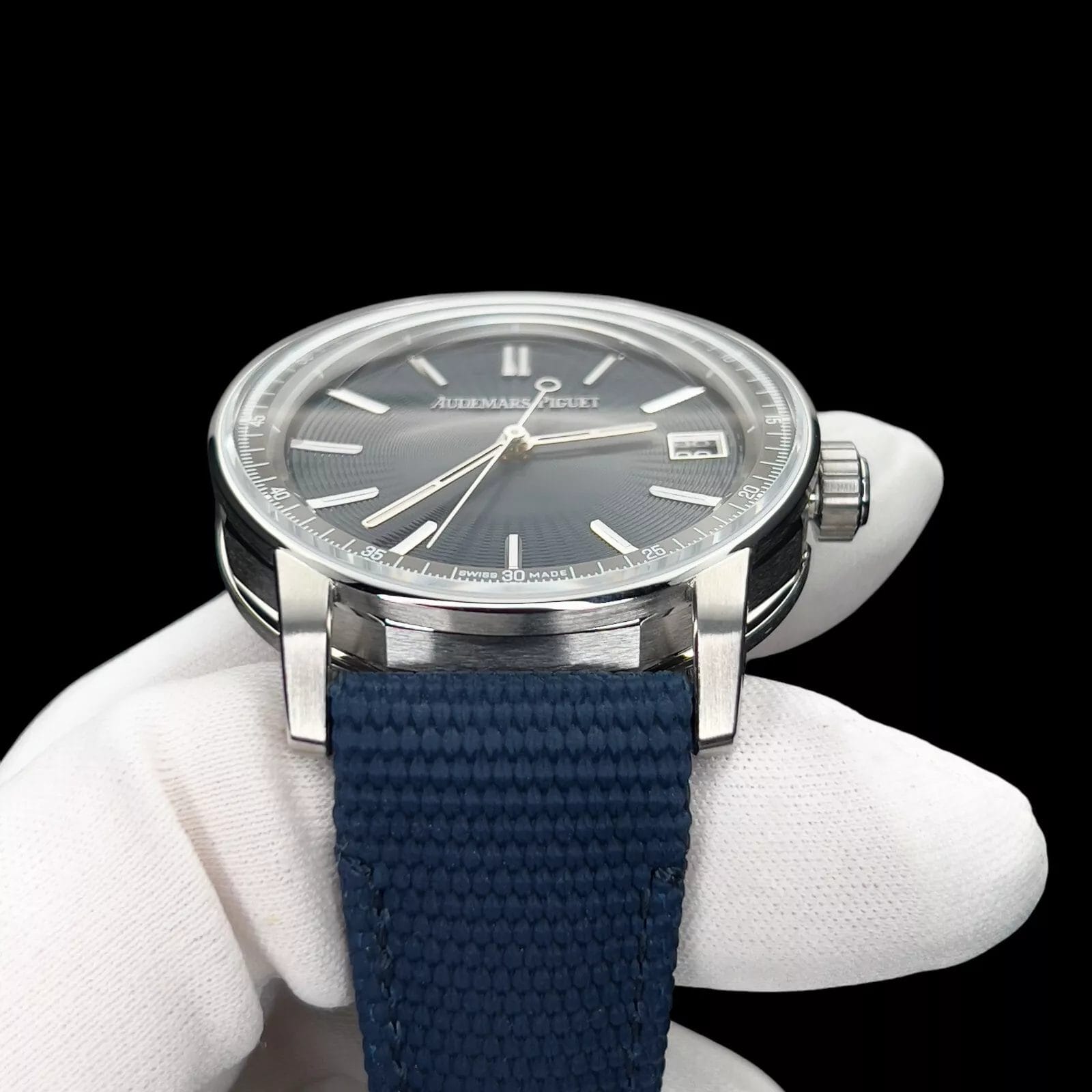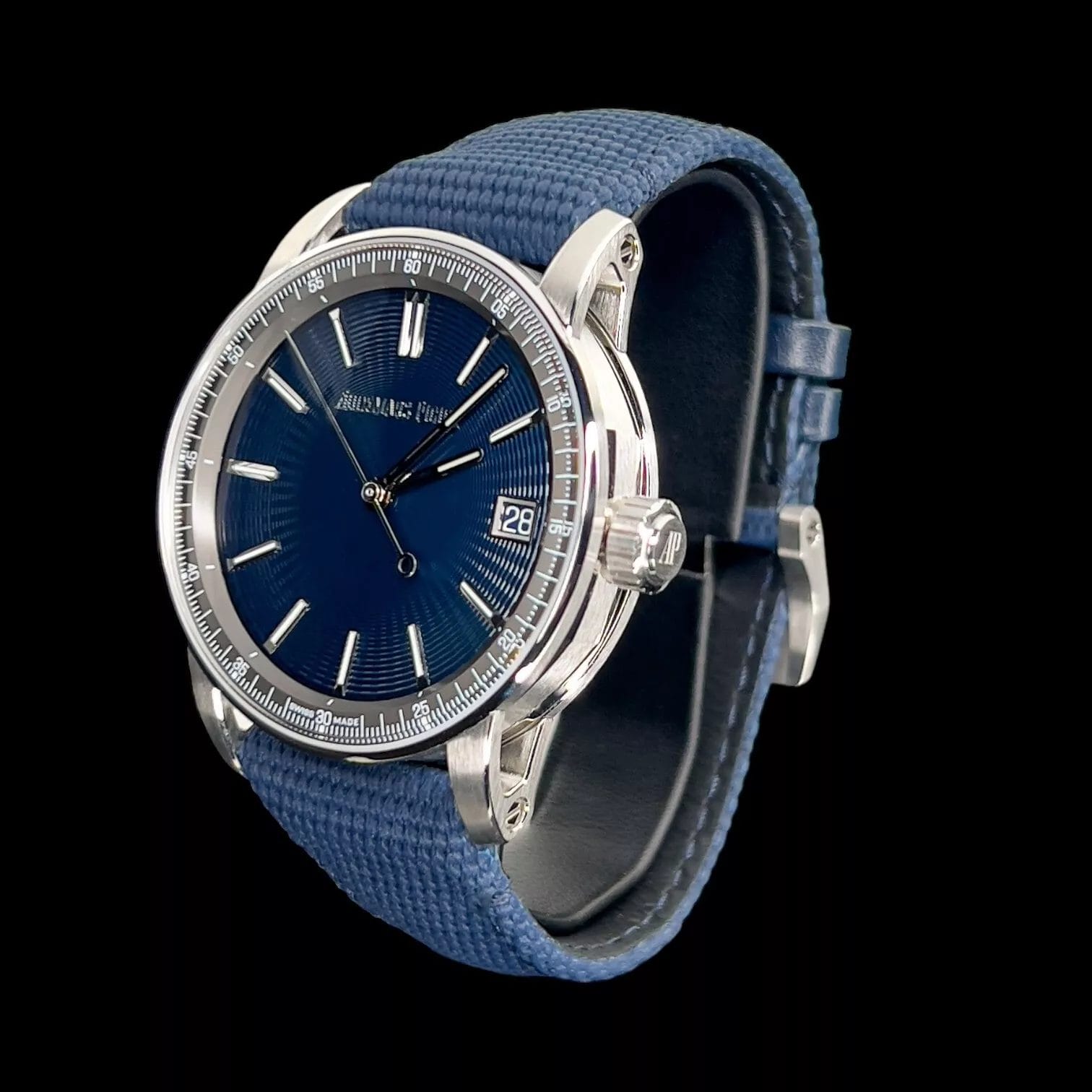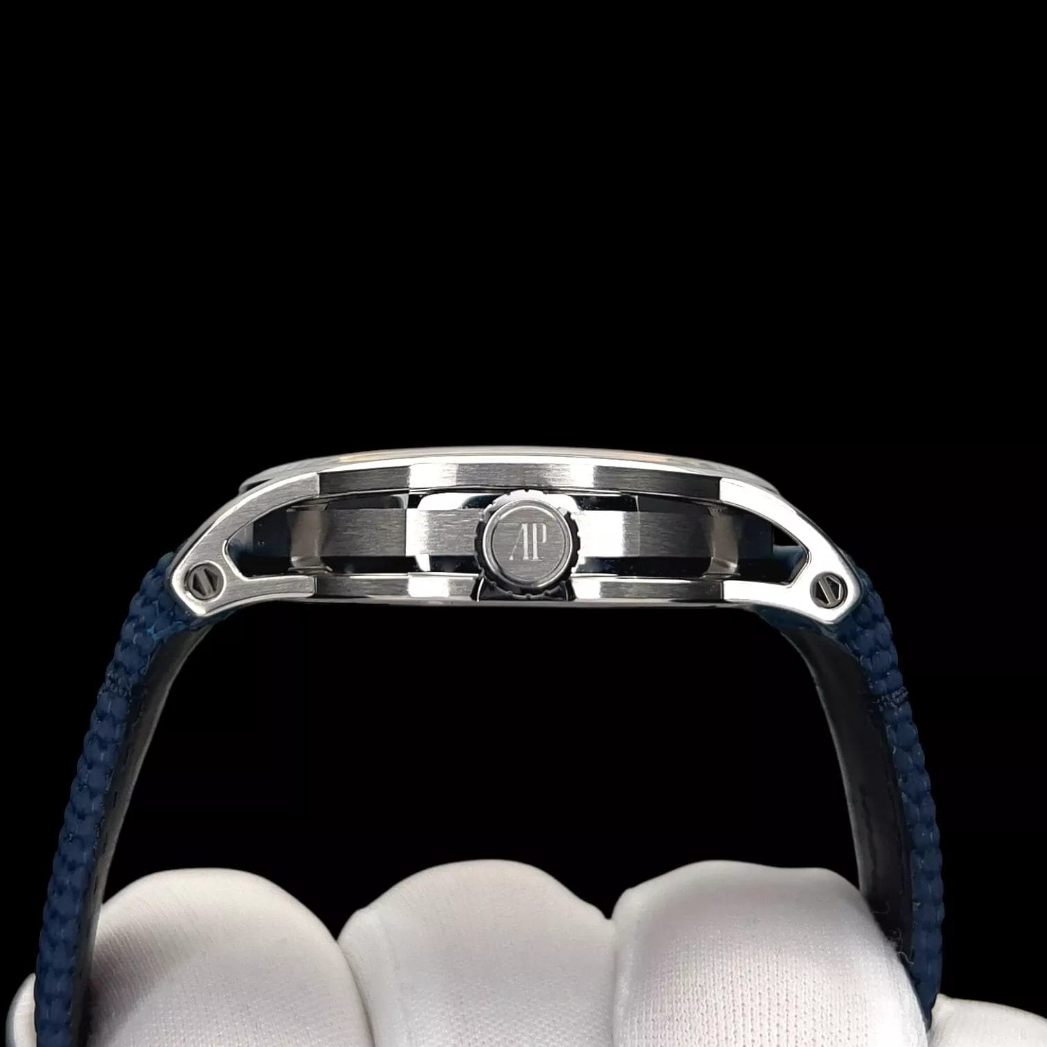 The Audemars Piguet Code 11.59 15210ST.OO.A348KB.01 is a luxurious timepiece that masterfully combines superb craftsmanship and design. It features a 41mm steel case paired with a matching blue bezel graduated up to a Base1000 scale that emanates elegance and sophistication. It showcases a unique blue “Bleu Nuit, Nuage 50” dial that houses luminous hour markers, hands, and has a date window between 4 and 5 o’clock for increased practicality. Look into the transparent case back that grants a glimpse into the intricate workings of this magnificent timepiece. This timepiece is completed with a canvas/nylon strap for a comfortable and stylish look that adds a touch of distinctive flair.