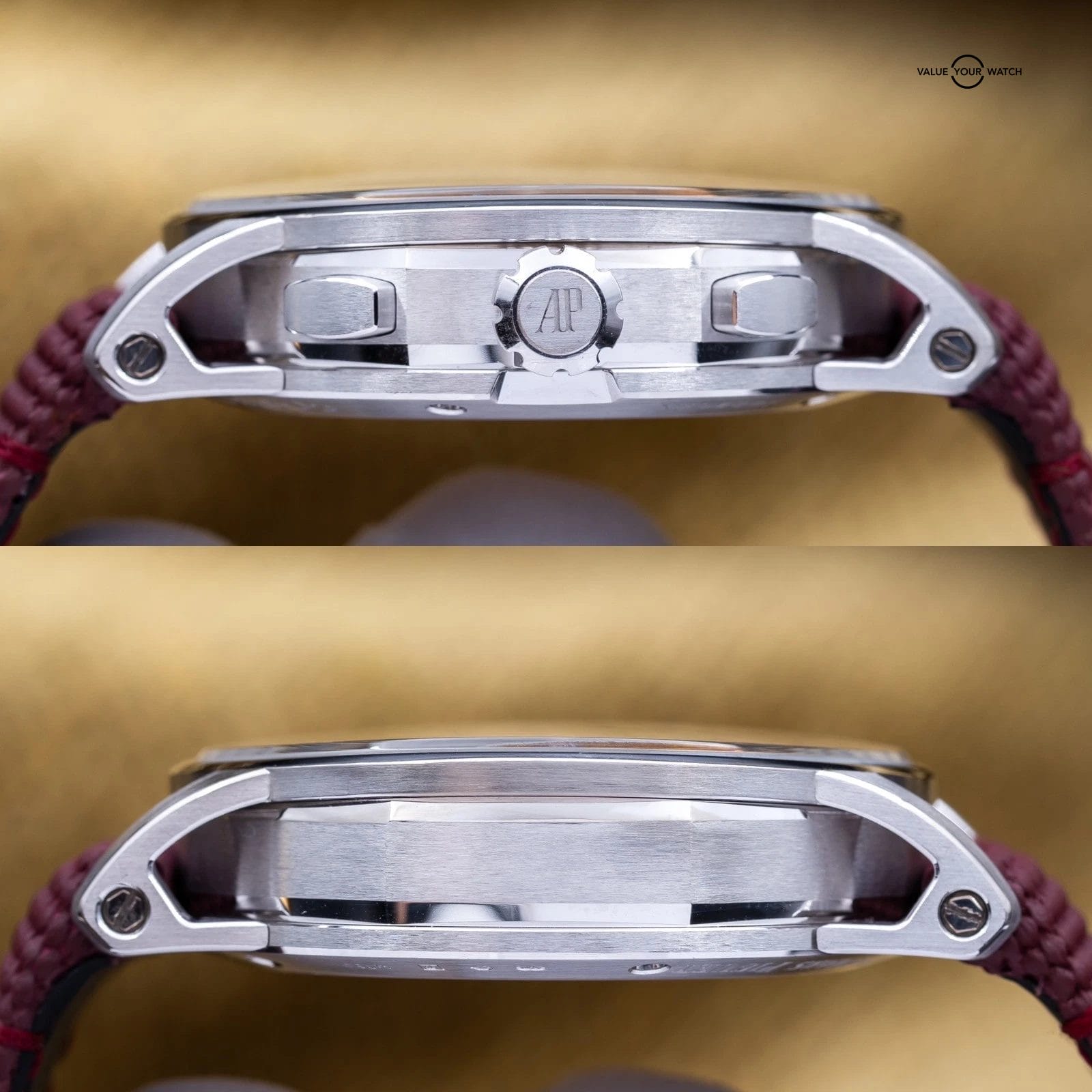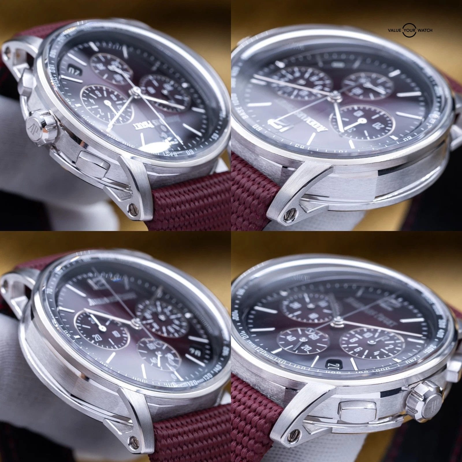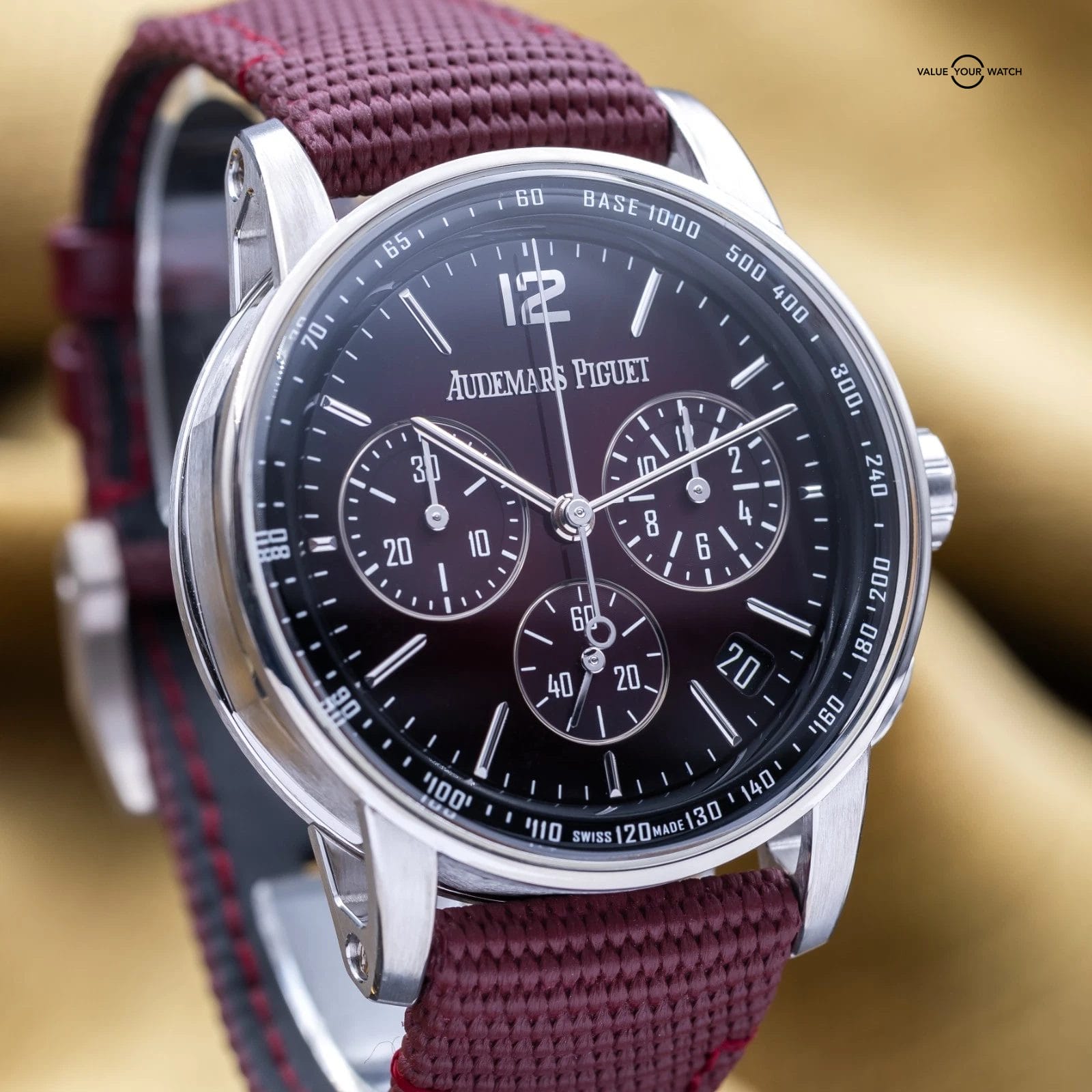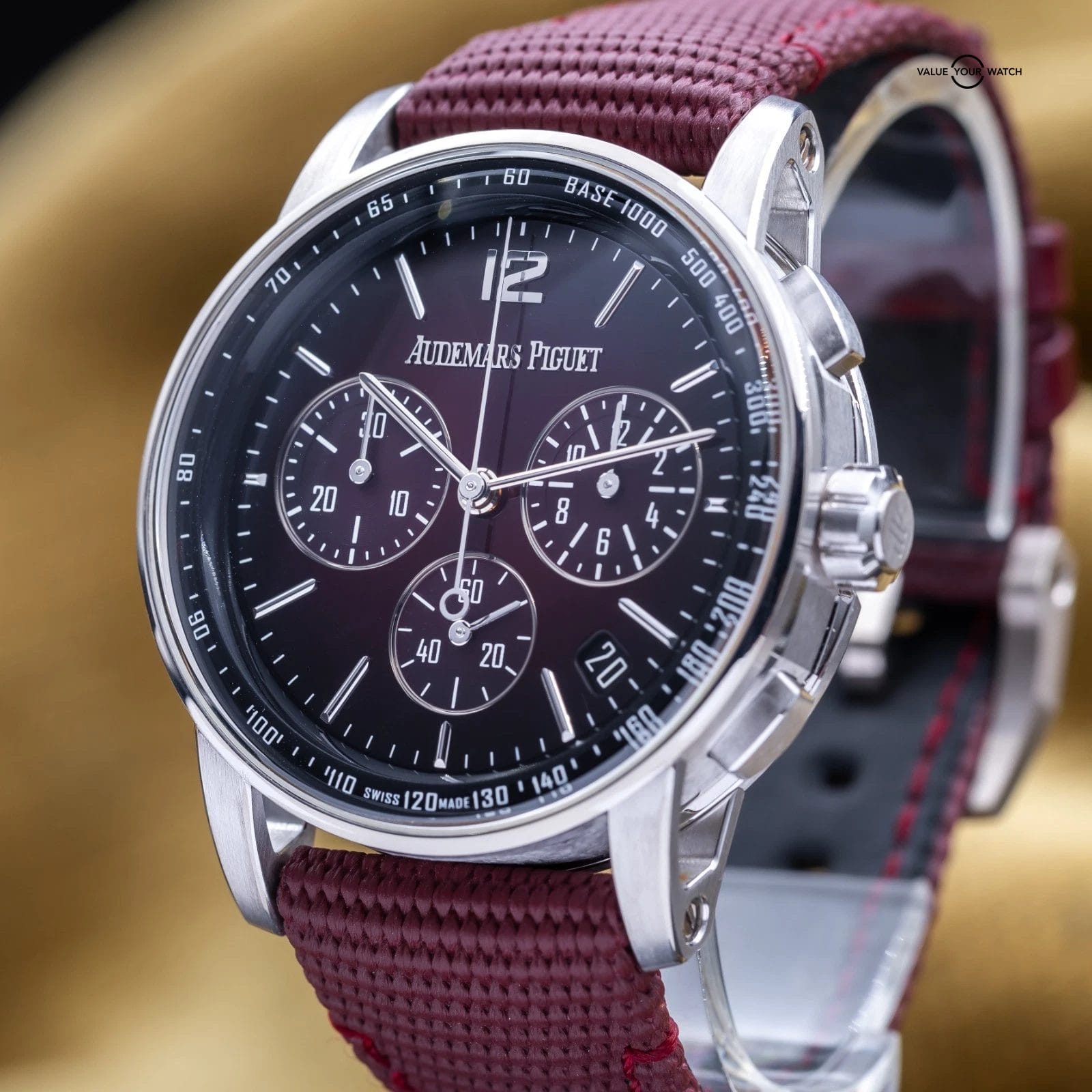 Up for sale is this badass white gold Code 11.59 chronograph with the stunning burgundy red dial. The case design with the concave crystal and innovative lugs are out of this world cool. It houses the calibre 4401 Flyback Chronograph movement, a more complicated version of the standard chronograph that allows on-the-fly resetting while it’s running. You can see the intricacies of this complicated movement through the open case back. AP has hit a home run with the new Code 11.59’s. Don’t miss your chance to get this one for a fraction of MSRP!