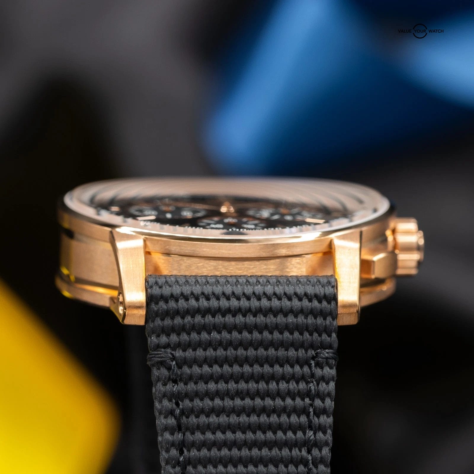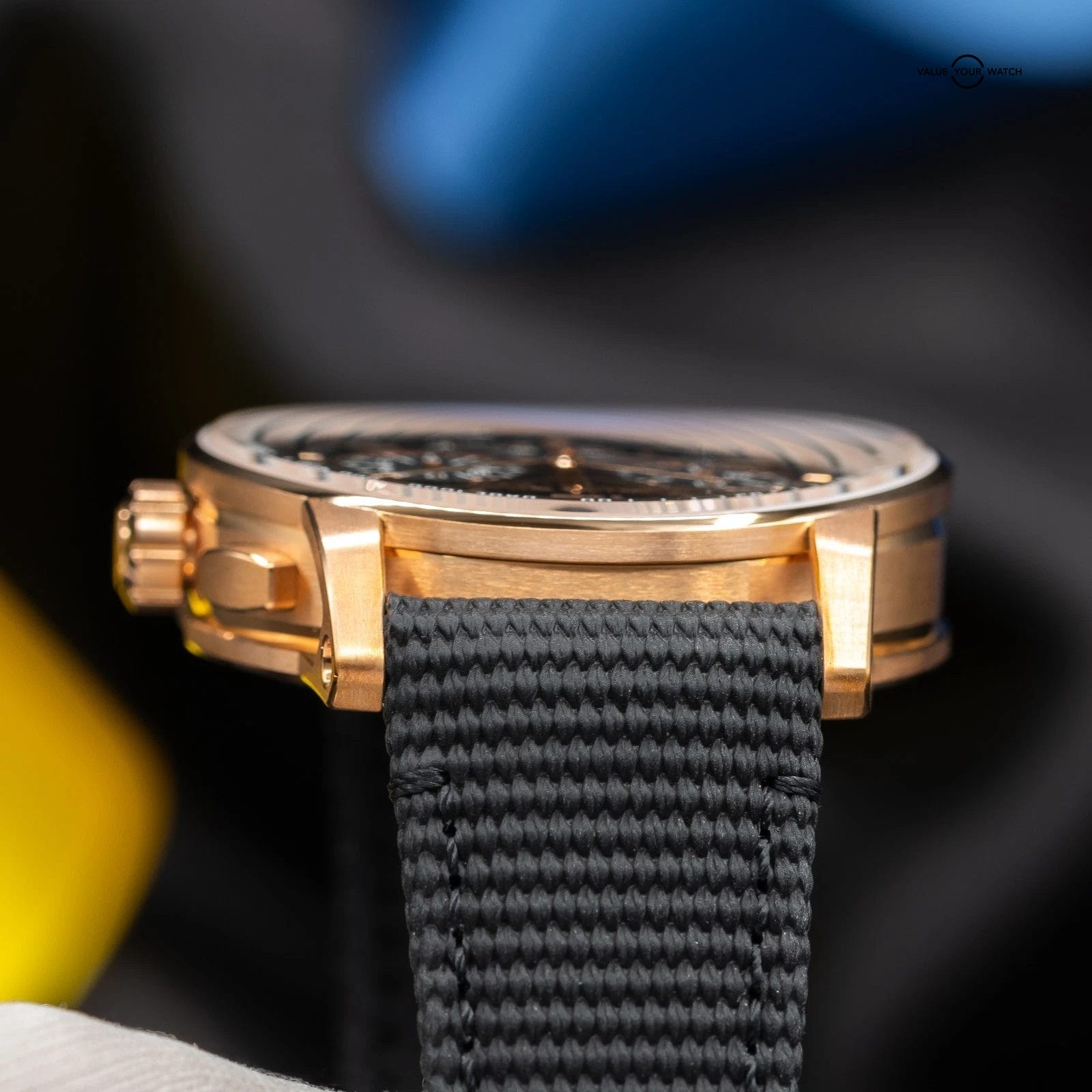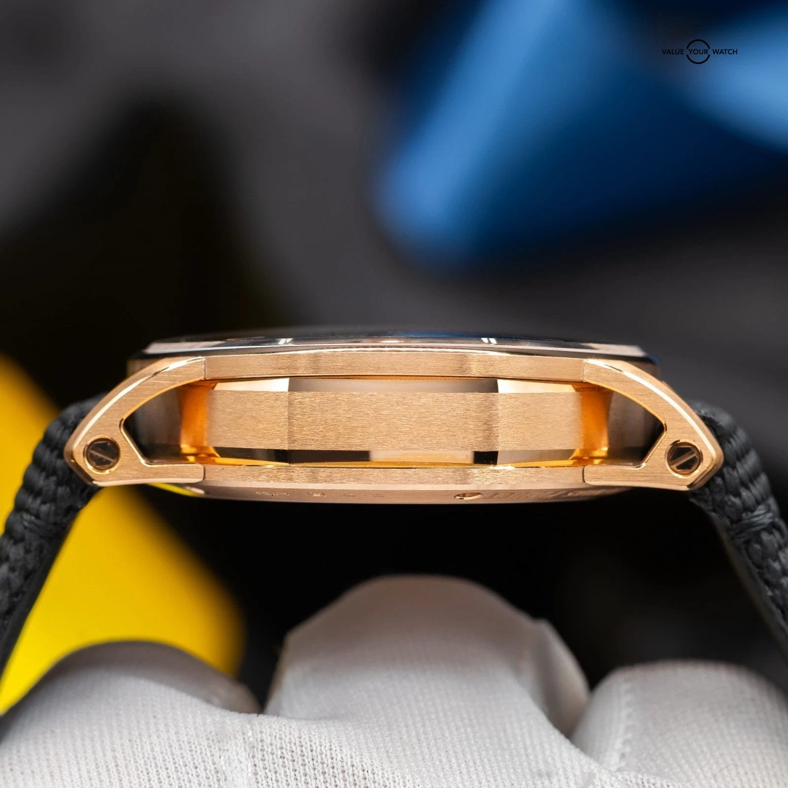 Bold, impressive, and unmistakably refined, the Code 11.59 Selfwinding Chronograph 26393OR.OO.A002KB.01 is a commanding expression of modern haute horlogerie. Crafted in 18-carat rose gold, the case radiates warmth while framing a striking black lacquered dial finished to a near-perfect mirror sheen. The depth of the lacquer surface reflects light with remarkable intensity, enhancing the rose gold applied indexes and singular numeral at 12 o’clock. Viewed from the side, the Code 11.59’s architectural case profile—curved lugs, octagonal mid-case, and seamless finishing—delivers a presence unlike anything else on the market. Paired with a black rubber-coated strap, the color combination creates wrist presence that is both powerful and elegantly composed.