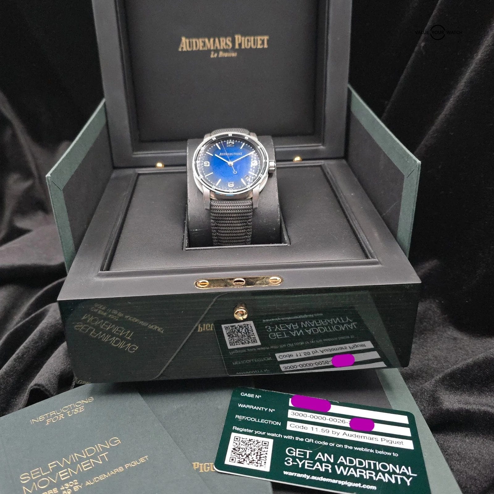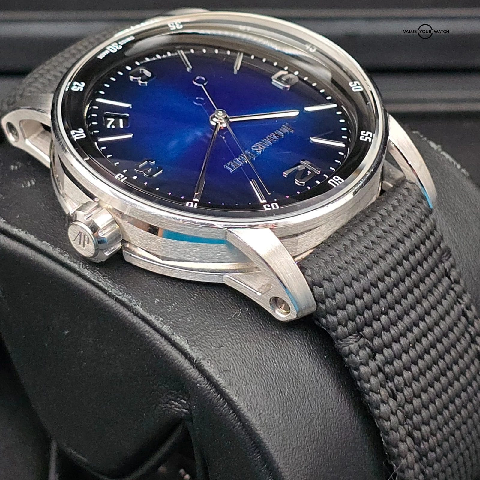 Up for sale here is the AP Code 11.59 Selfwinding, with the best dial- the smoked blue sunburst! Ref. 15210BC