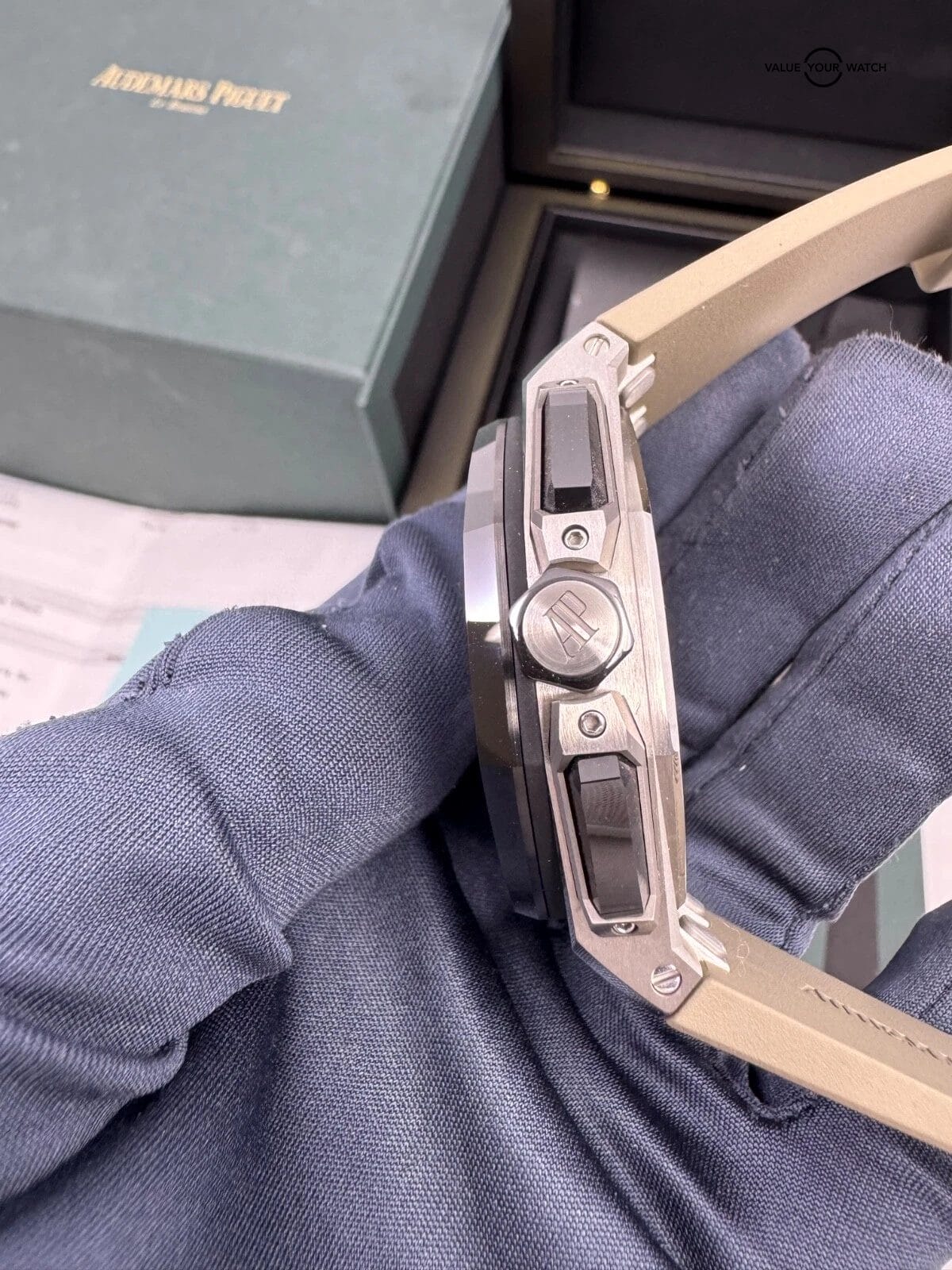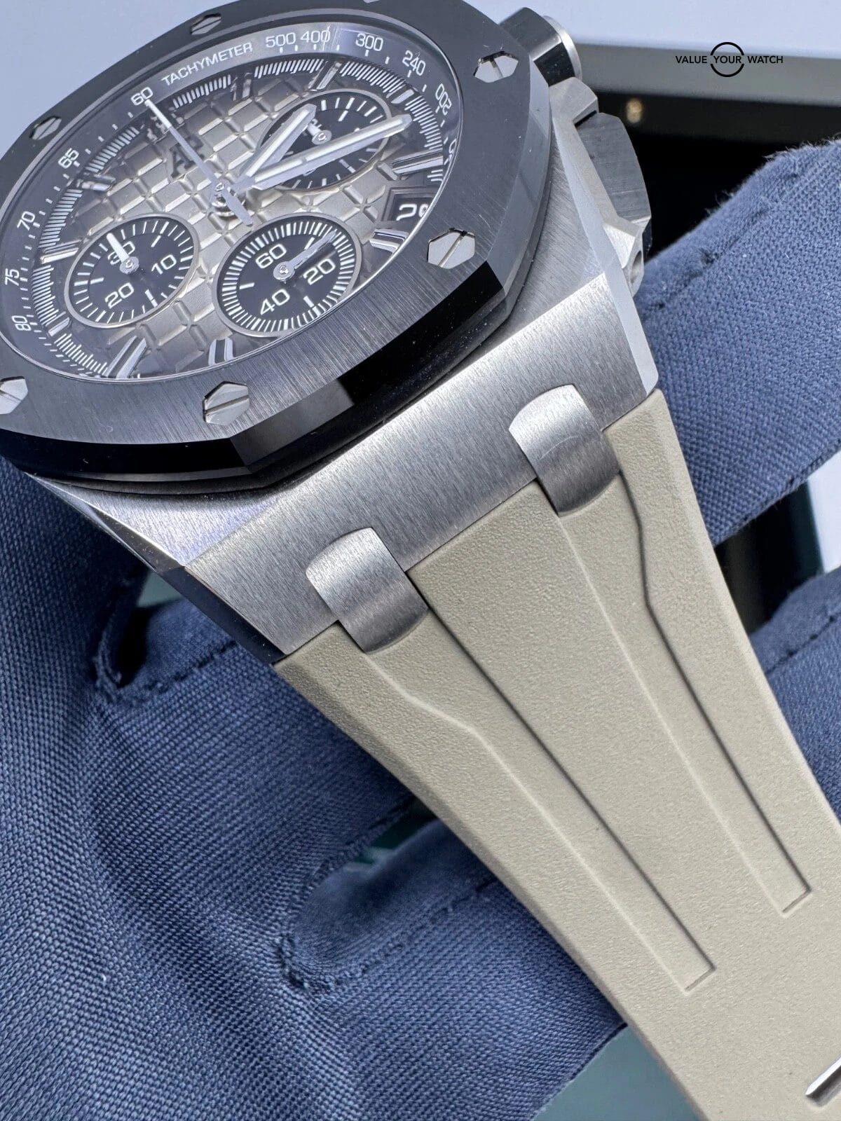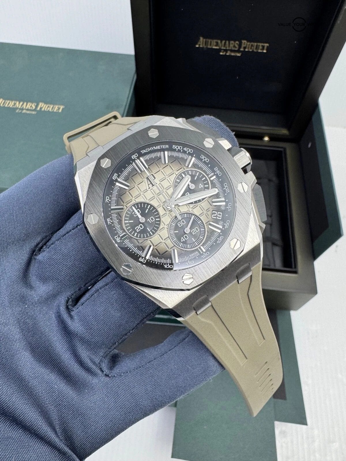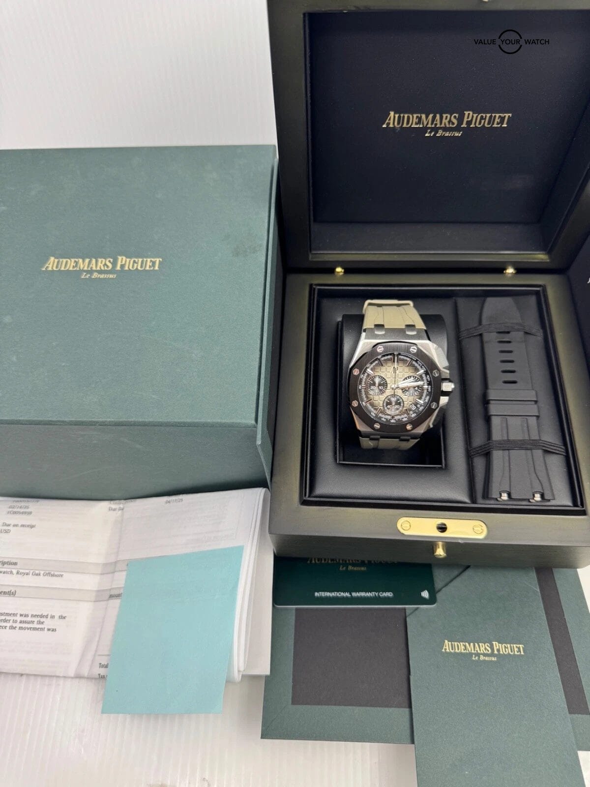 Specification: 2025 FACTORY SERVICED 2023 Taupe Smoke Dial Ceramic Bezel 43mm Royal OakOffshore