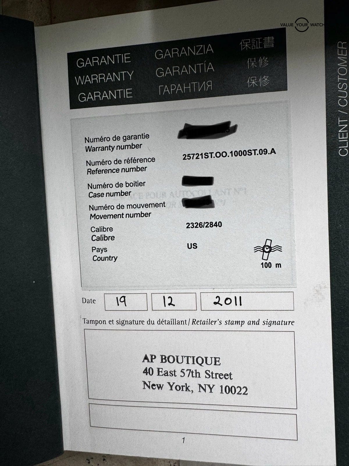 Audemars Piguet Royal Oak Offshore 25721ST.OO.1000ST.09.A Blue Box/Papers