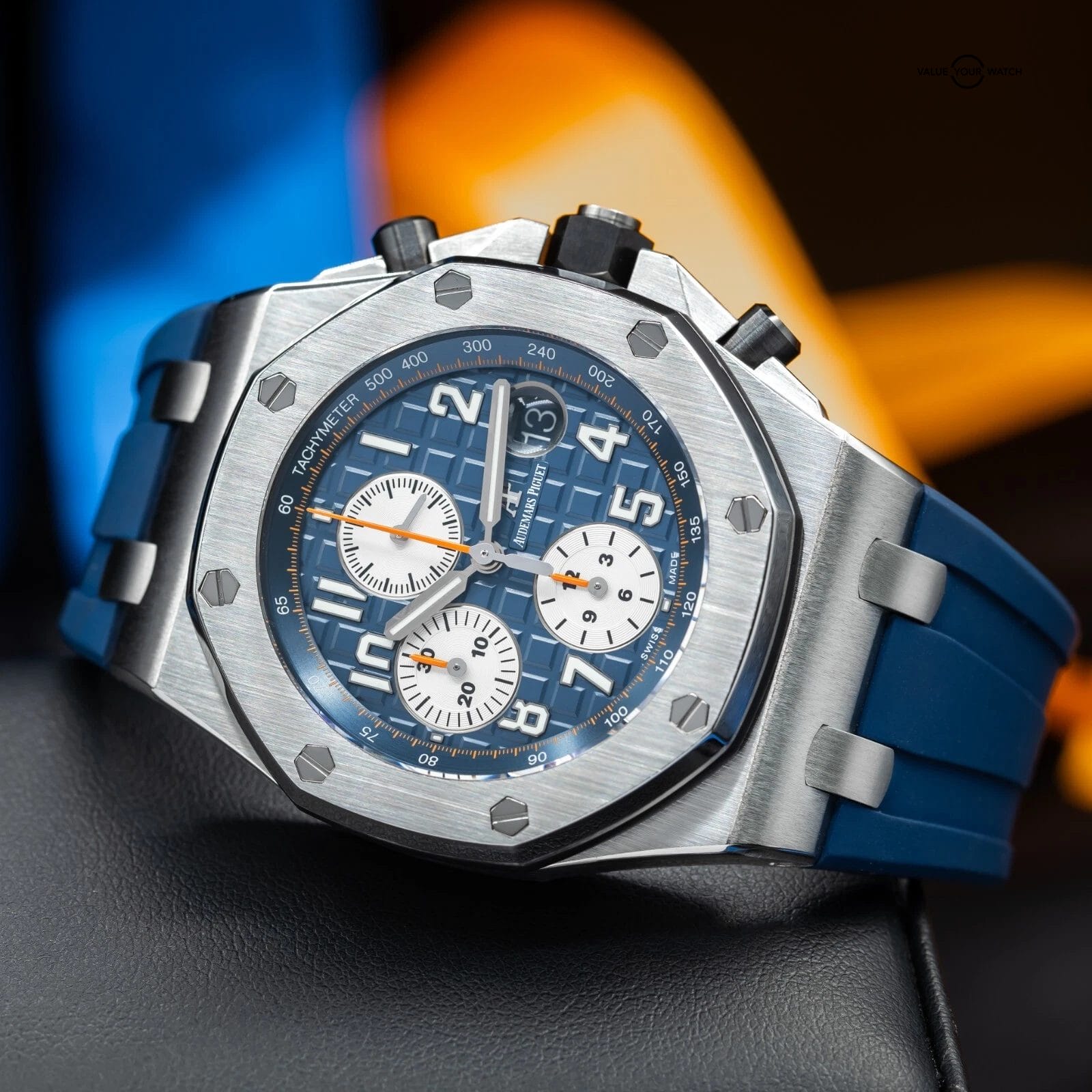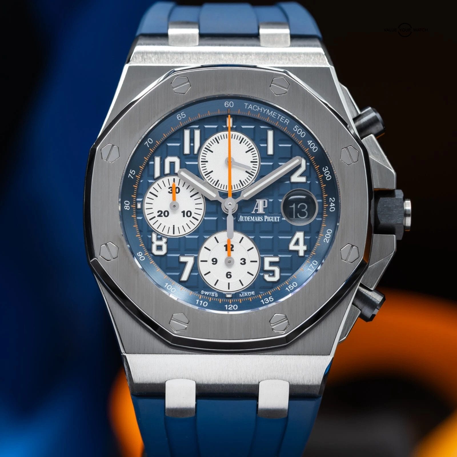 Specification: Audemars Piguet Royal Oak Offshore 42mm Chronograph Blue Dial Mens Watch 26470
