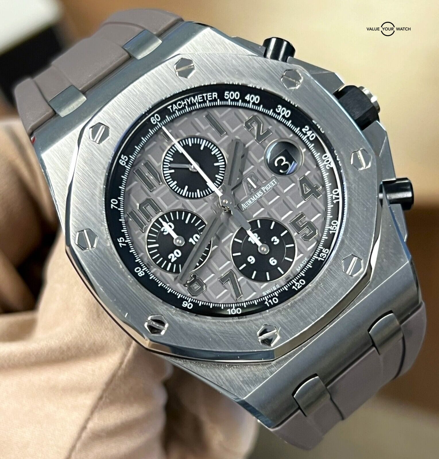 Research the current market value of the Audemars Piguet Royal Oak Offshore 26470ST and set a competitive yet realistic price. Overpricing can deter potential buyers, while underpricing may raise suspicions. Consider consulting with professional appraisers or seeking advice from online watch forums for pricing guidance.