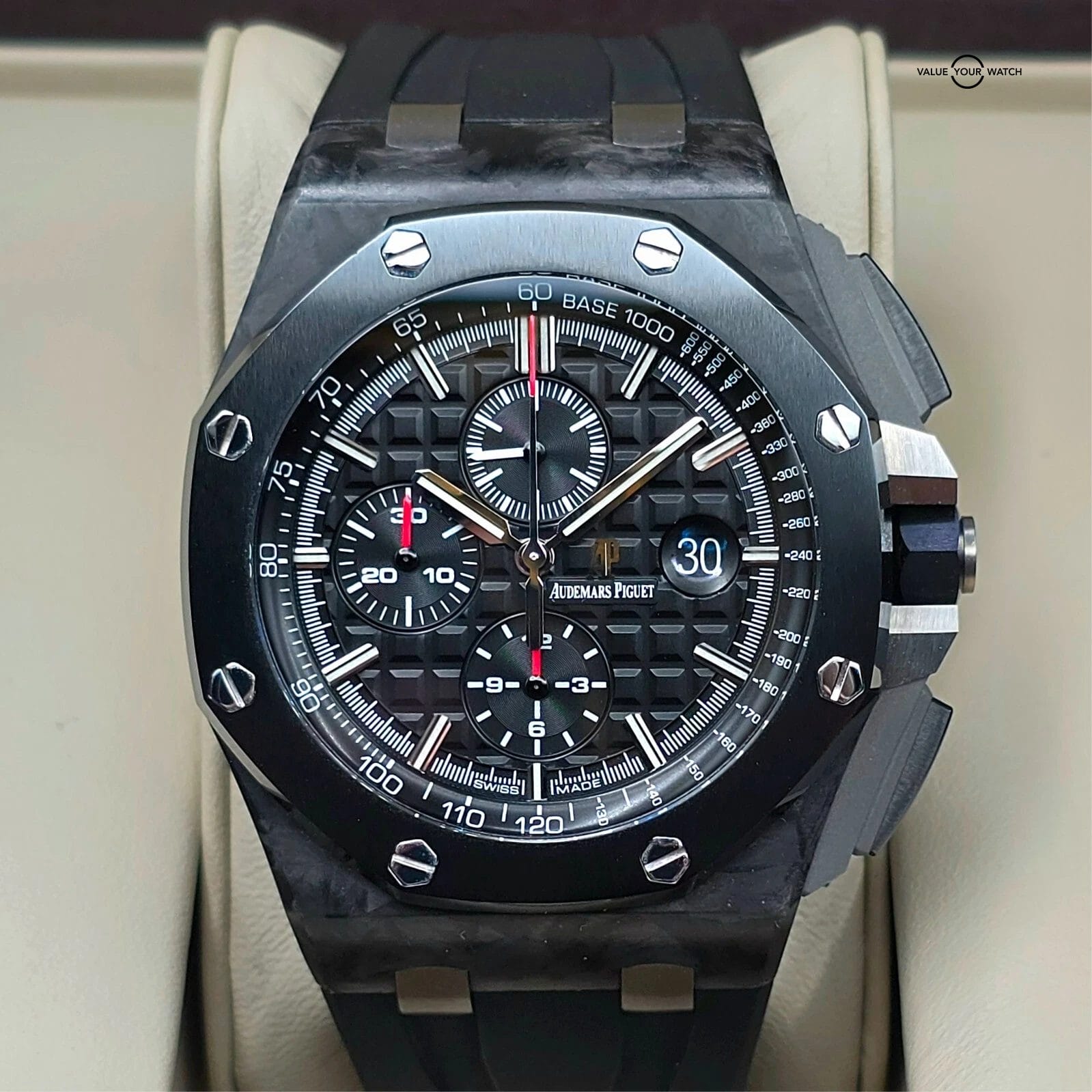 For sale here is an excellent example of the AP Royal Oak Offshore, cased in solid forged carbon- perfectly matches performance car parts! Ref. 26400AU
