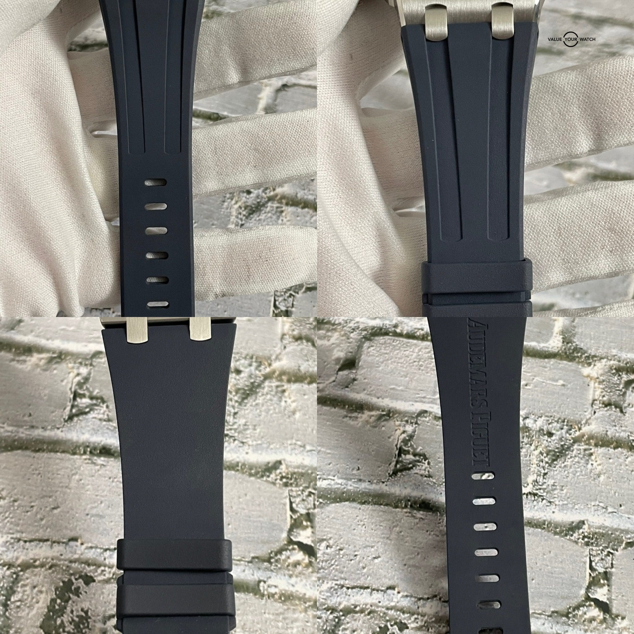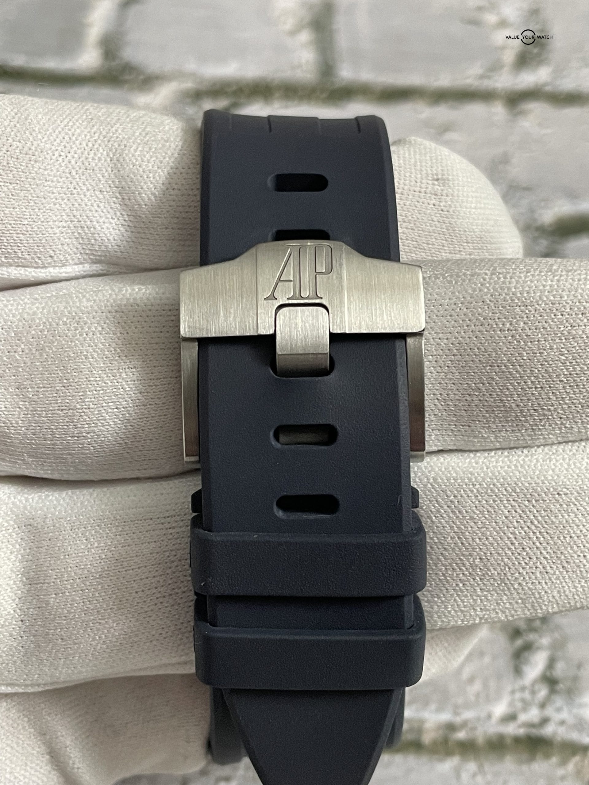 Included are the original inner and outer boxes and all manuals/booklets and warranty card dated from 2018 purchase. Watch is in complete working order and keeping great time. It is an ‘I’ serial number piece. The case, crystal and buckle are in incredible shape. Strap is brand new from 2022. Don’t miss this chance to get this incredible AP Royal Oak Offshore while you can!