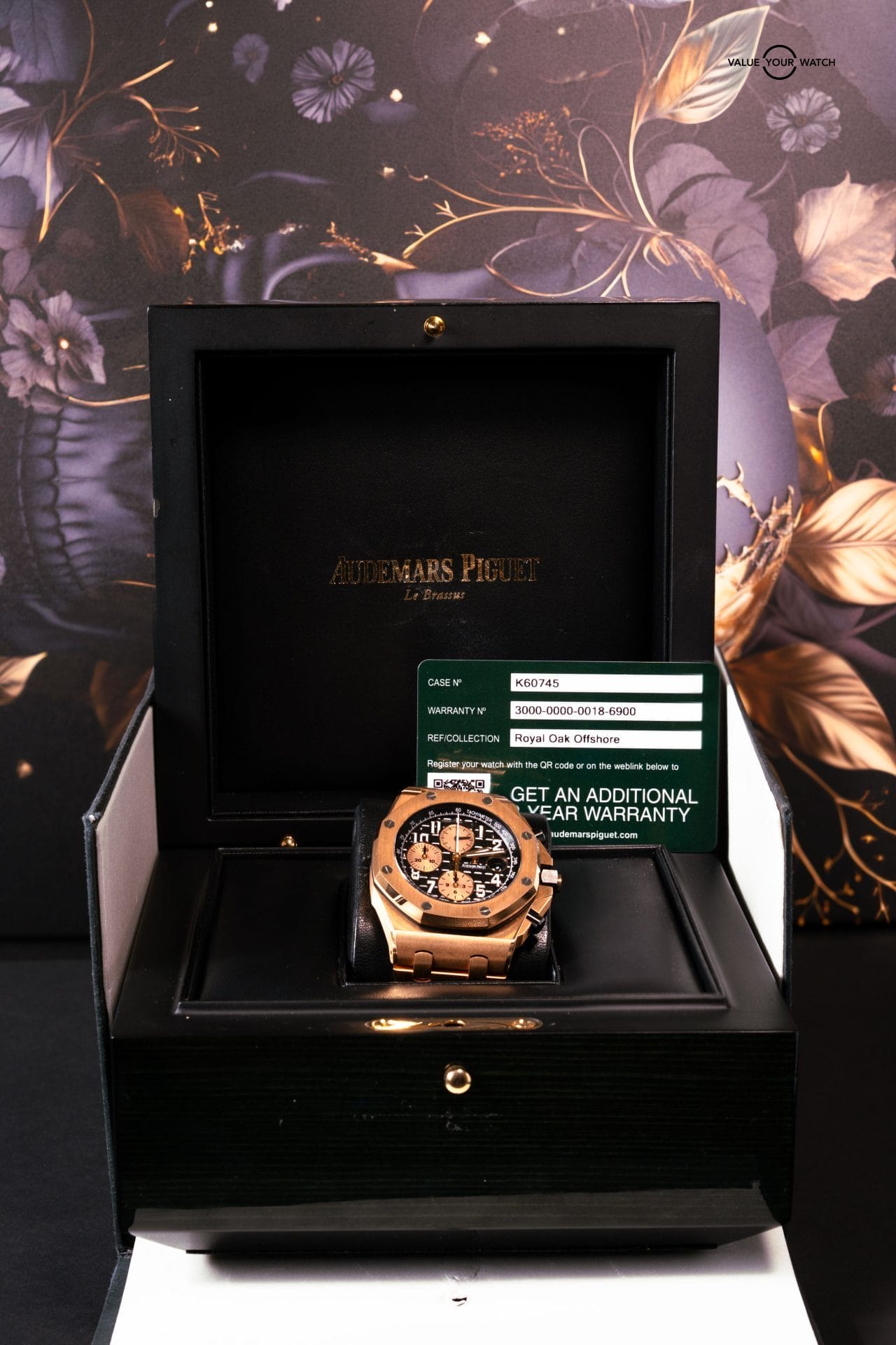 Introducing the Audemars Piguet Royal Oak Offshore Chronograph “Full Brick”, Reference 26470OR.OO.1000OR.03. A bold and luxurious execution of the iconic Offshore design, crafted entirely in solid rose gold. This 42mm statement piece delivers exceptional wrist presence, combining high-end materials with AP’s unmistakable design language.