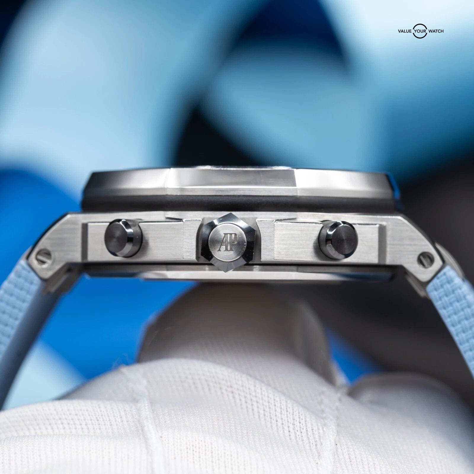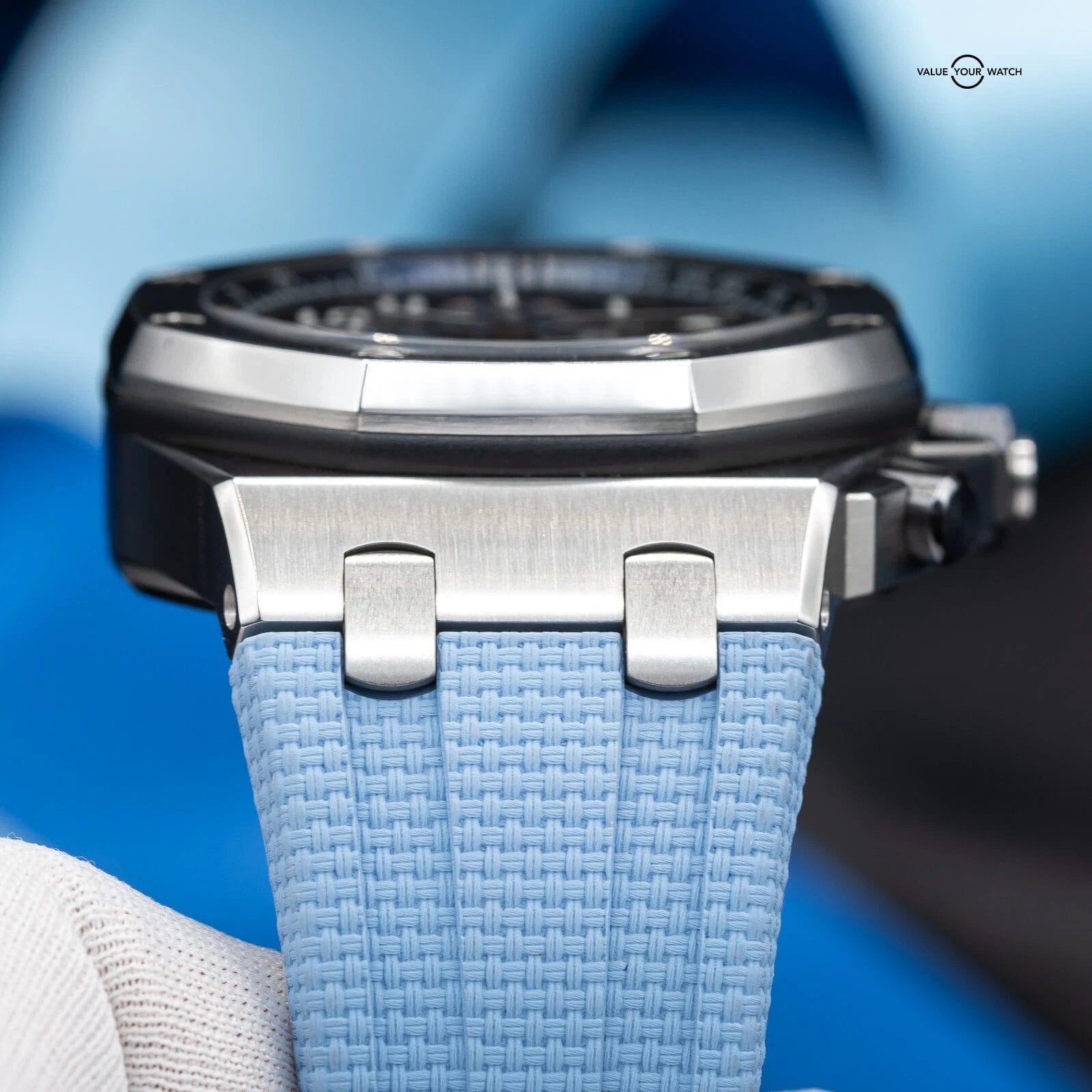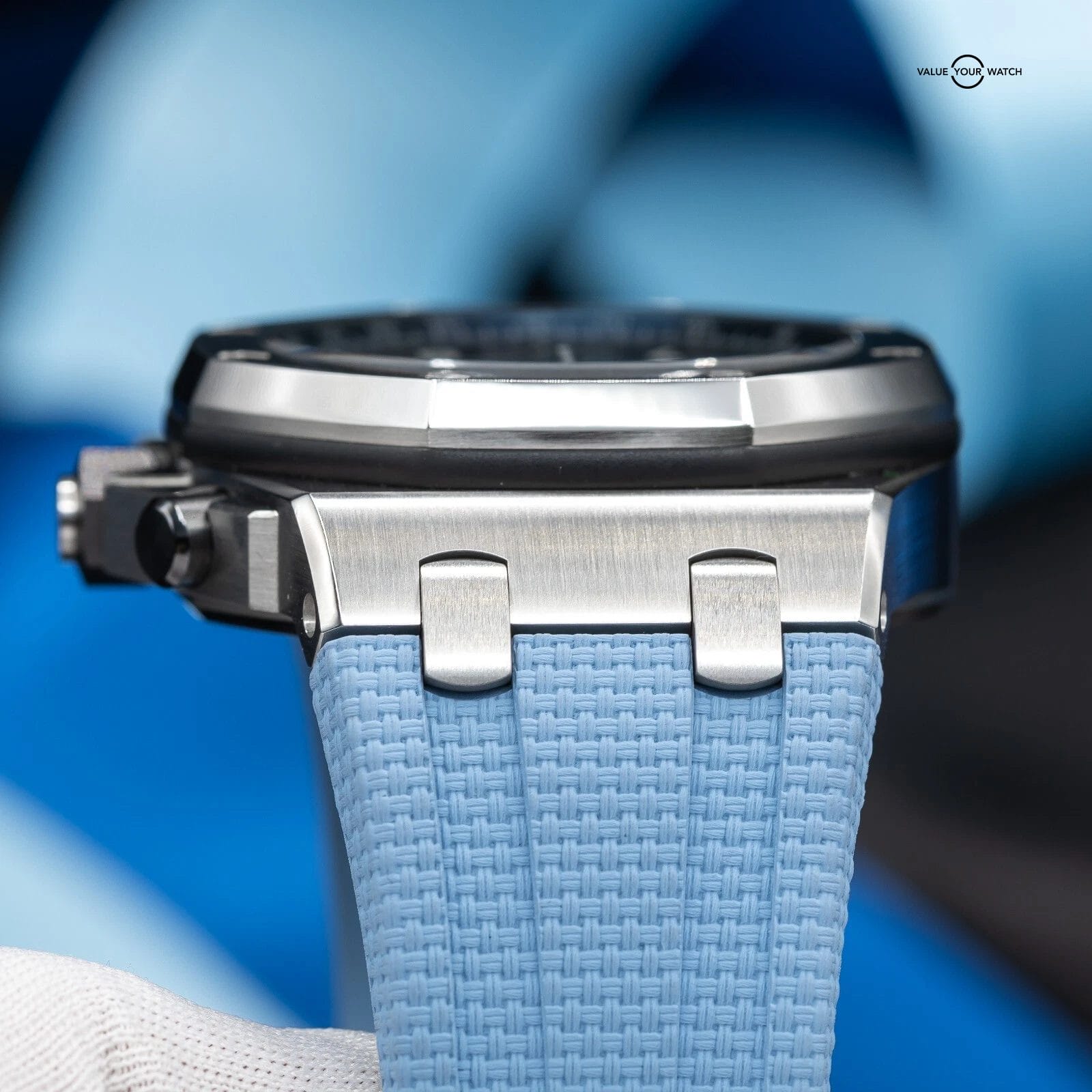 · Strap: Updated to the new Quick-change system with New AP Lt. Blue rubber strap installed