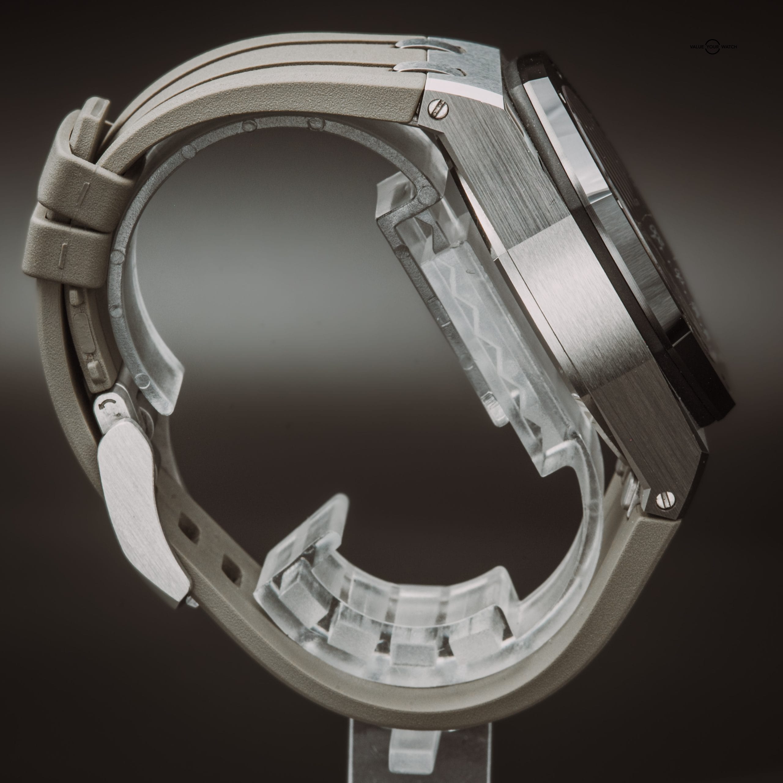 For sale is the striking AP Royal Oak Offshore “Smoked” (Taupe) dial with a black ceramic bezel, steel case, and rubber strap in mint condition with little to no signs of wear.