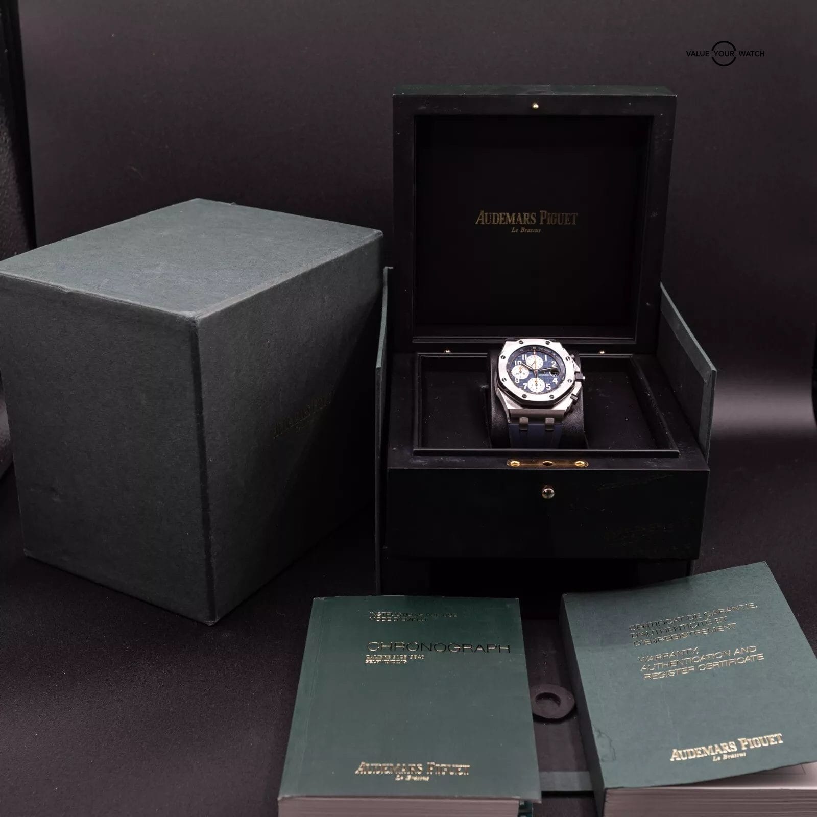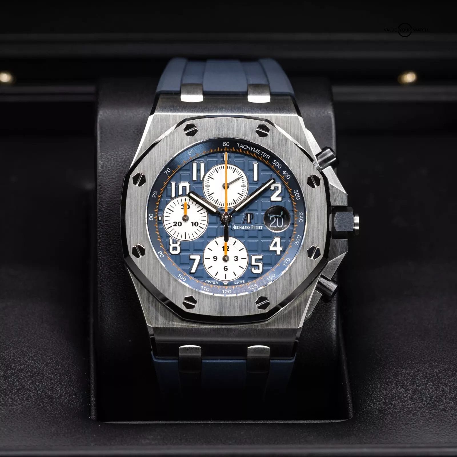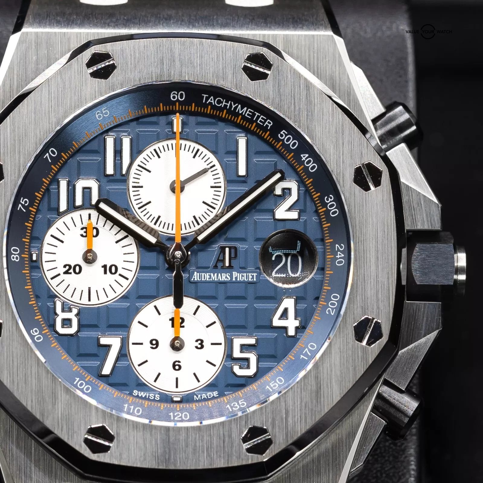 Up for sale here is an excellent example of one of the better AP Offshore variants. The blue is a very nice hue, and with the “reverse panda” look of the silver sub dials, the overall theme of the watch is incredibly well put together. Ref. 26470ST.