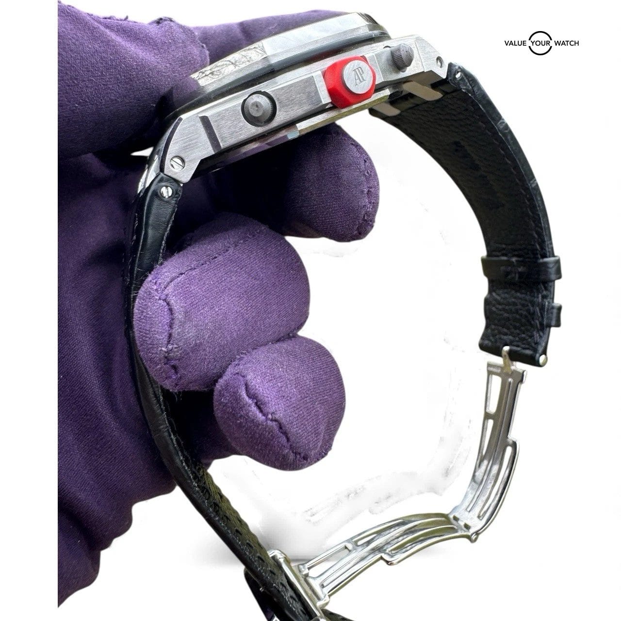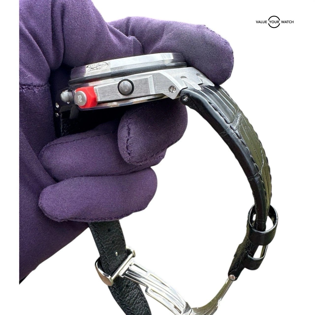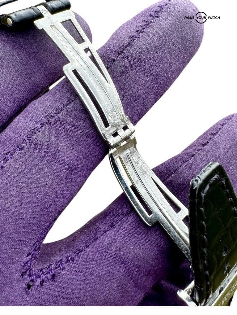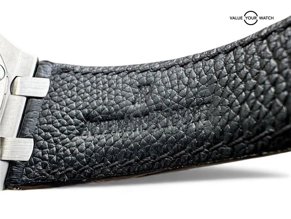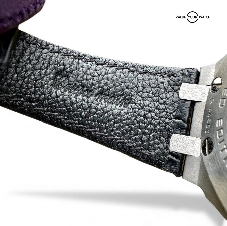 The Audemars Piguet Royal Oak Offshore “Rhone-Fusterie” (26108ST.OO.D066CR.01) features a 42mm steel case with the signature octagonal bezel that defines the Royal Oak series. The vibrant red “Méga Tapisserie” dial is complemented by luminous Arabic numerals and hands for enhanced visibility. It is equipped with three chronograph subdials, alongside a date window at 3 o’clock. The piece is finished with an elegant leather strap. Don’t miss the opportunity to own this limited edition AP and submit your bid!