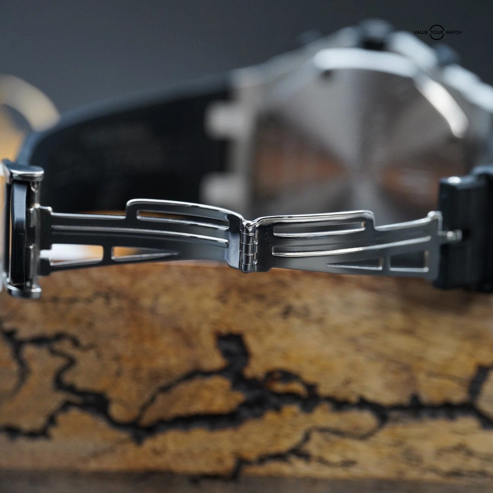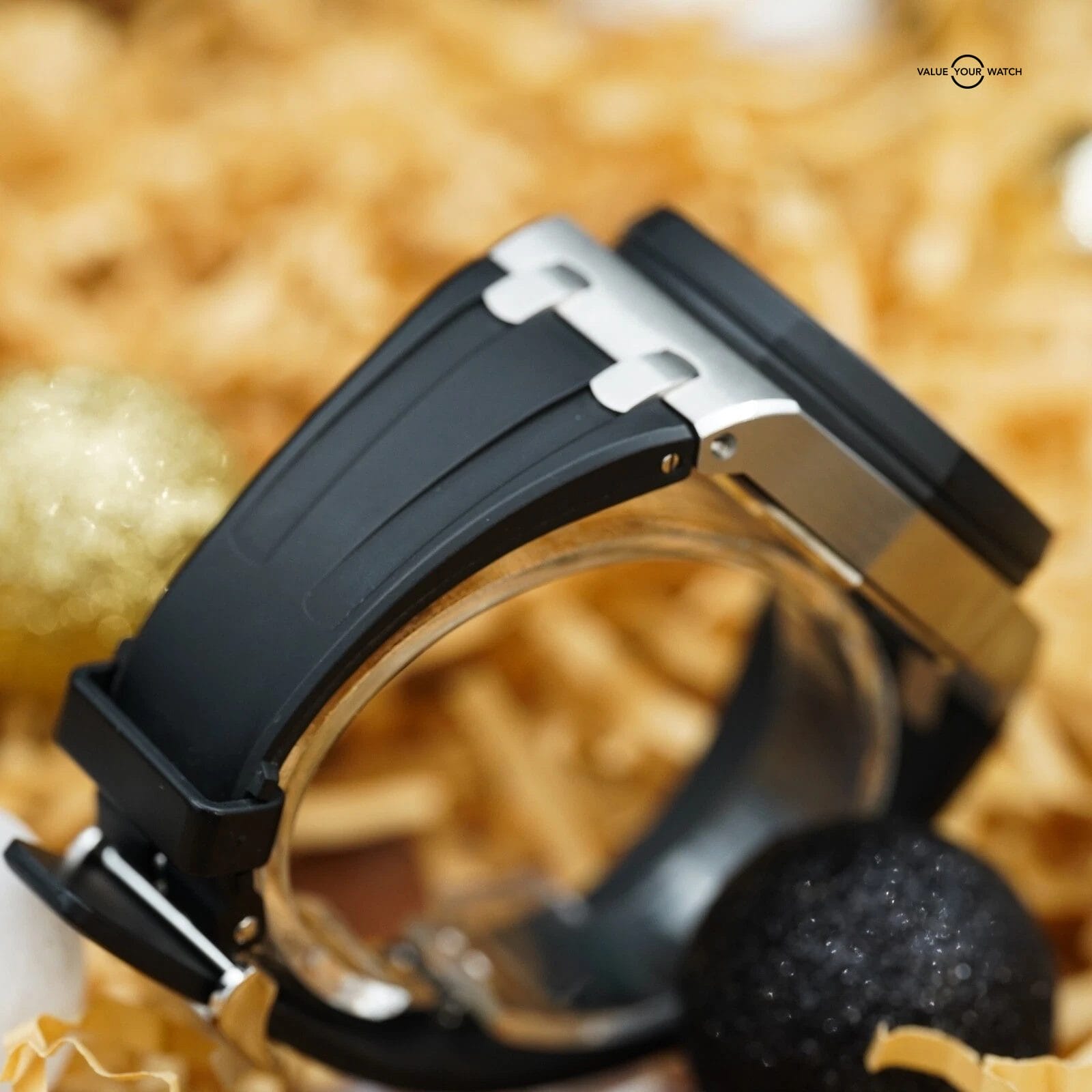 True MINT condition. As discerning watch collectors and curators, we rarely use the “M” word as it is over-used on far-from-excellent-condition watches. In this case, we’ve sold several AP Rubberclads and this is by far the cleanest one to date.