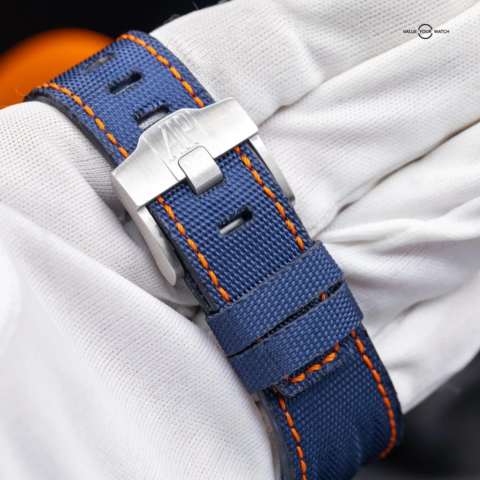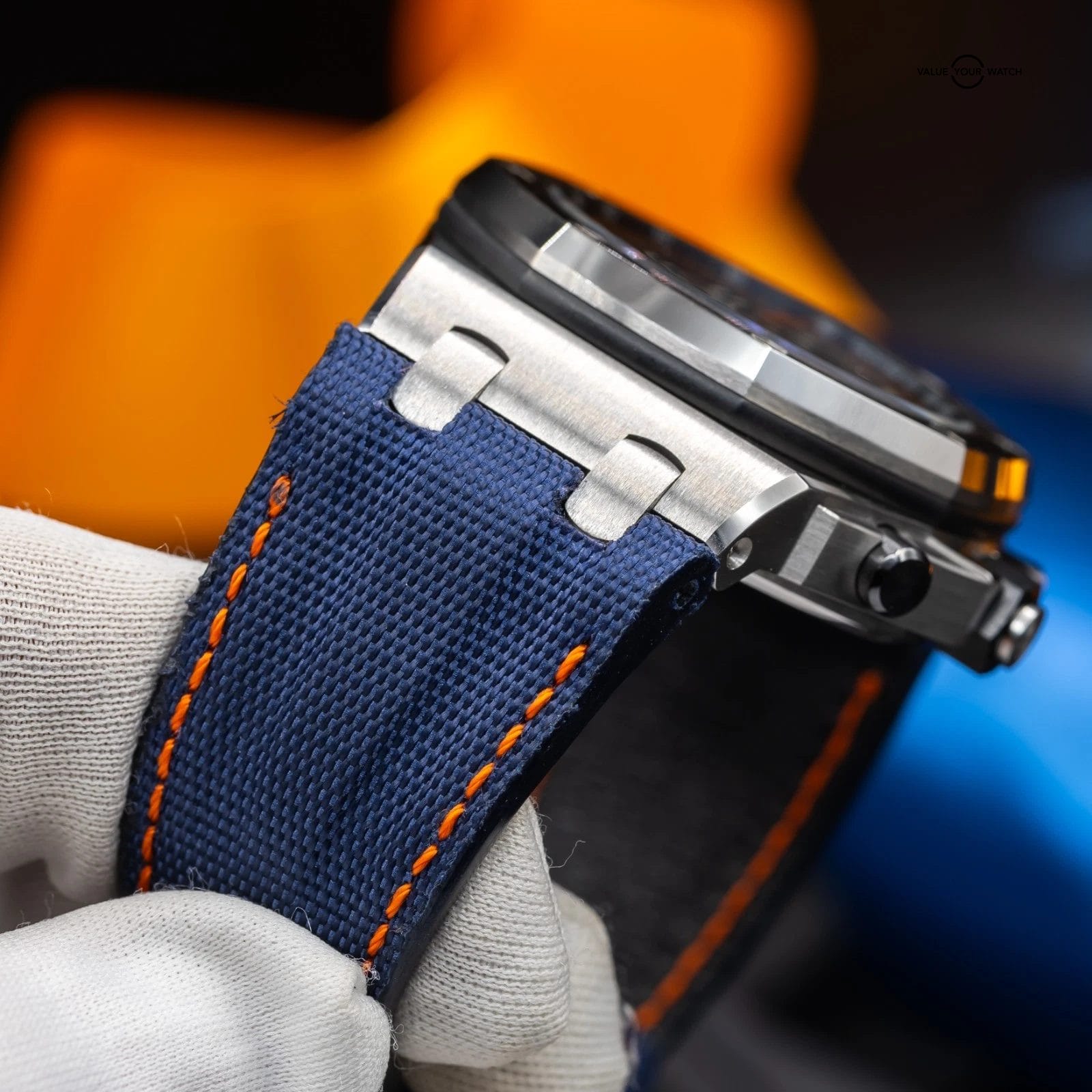 · Strap: Blue Canvas Strap with Orange Stitching, Additional Original AP strap also included