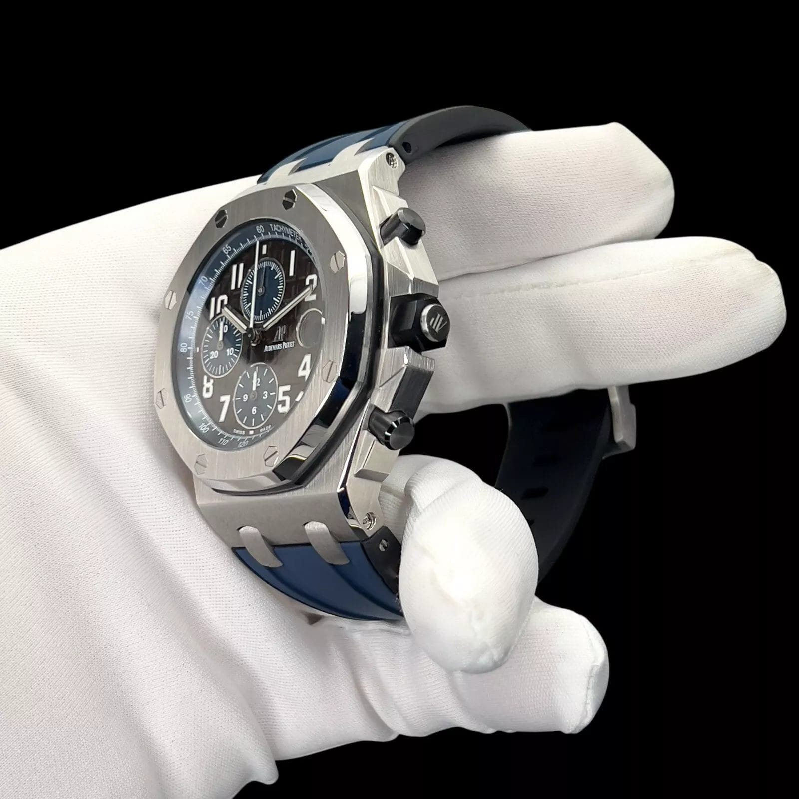 Watch is in excellent condition. Set includes a brand new Vagenari Rubber Strap (installed) as well as the original Audemars Piguet rubber strap in excellent condition. Serial numbers are obscured in photos for privacy reasons. All photos are taken by our in-house photographer of the actual item and is the best visual description of the condition we can provide. We do not use any stock photos. Please refer to the photos for condition. If you need additional photos or have any questions, please feel free to contact us.
