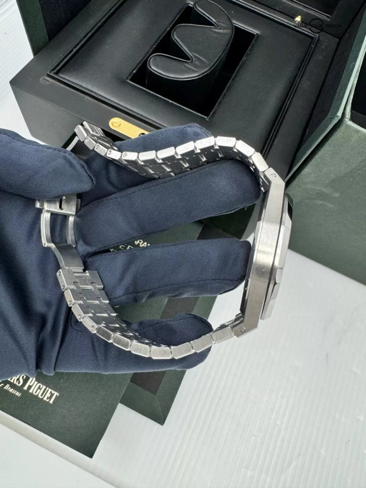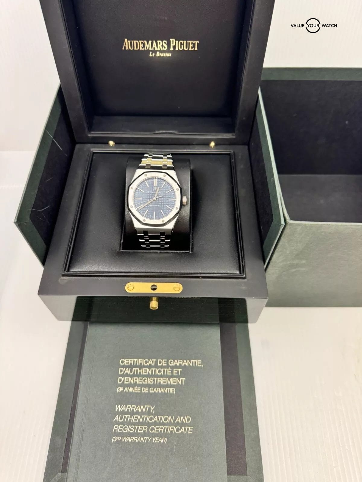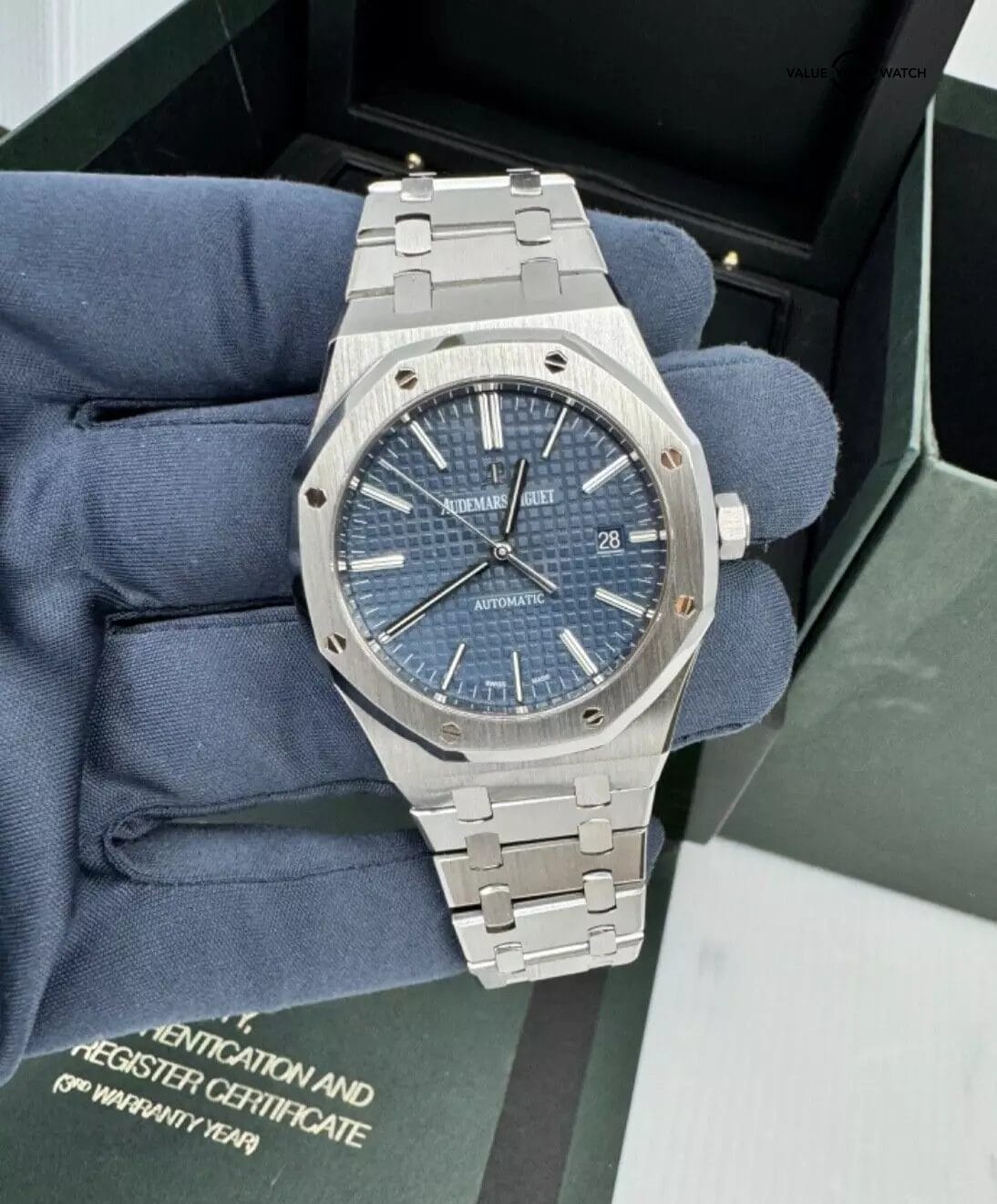 Beautiful example of a 15400st blue dial, which many collectors prefer over the other 41mm versions.Box and papers, tough to find in good condition complete at a good priceBoth instruction manual and original papers (warranty) included Trades ok