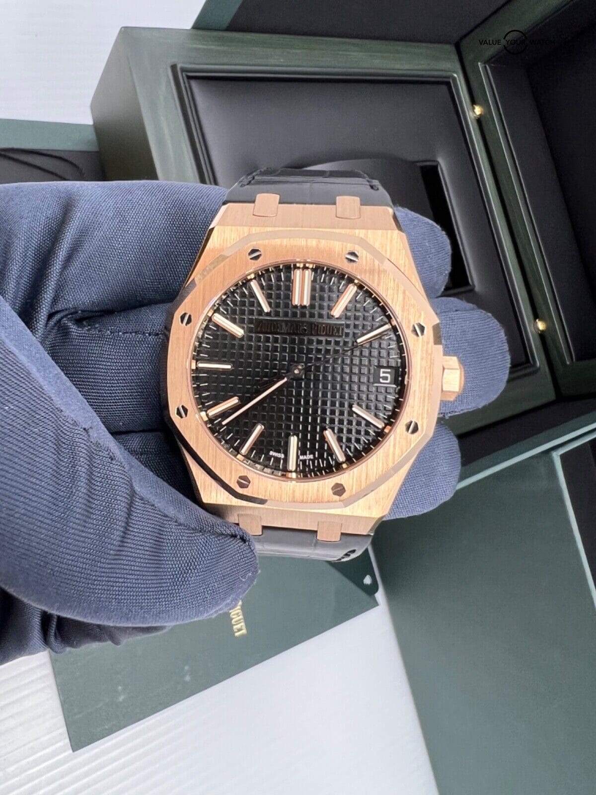 When buying the Audemars Piguet Royal Oak 18k Rose Gold Black Dial Leather Chronograph online, ensure the authenticity and condition of the watch. Look for the original box and papers, request additional images, and transact only with trustworthy sellers. Comparing prices on different platforms can help secure a fair deal.