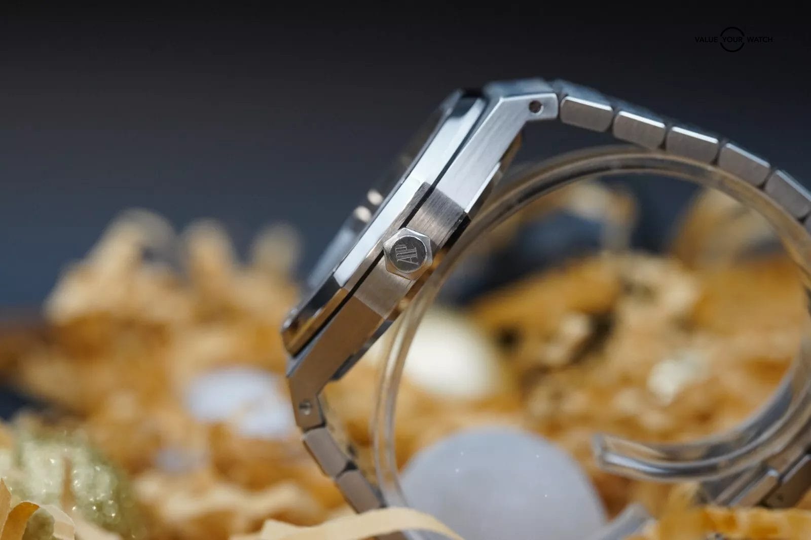 Between this royal oak and the chrono variation, white dials are what we are most often asked to source.
