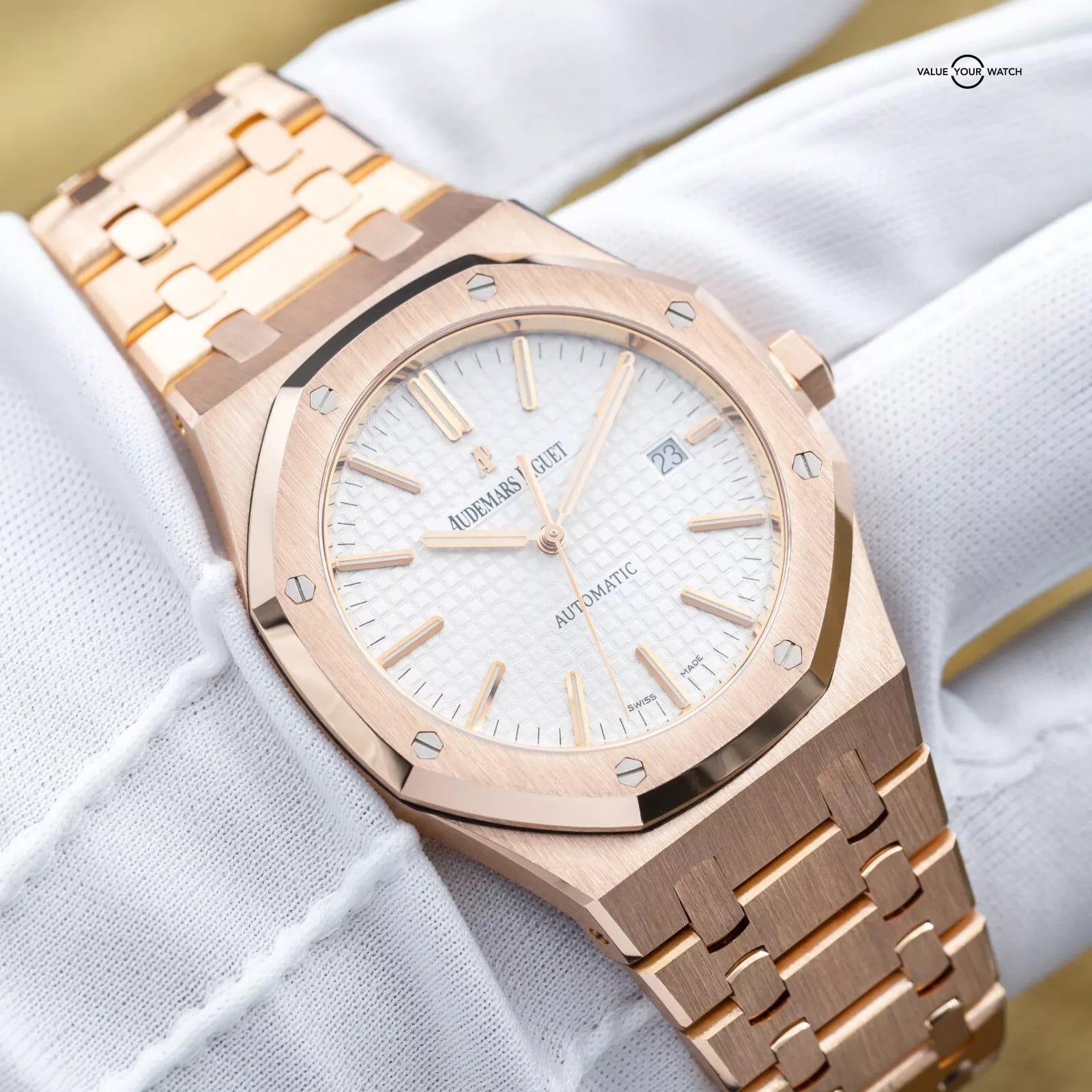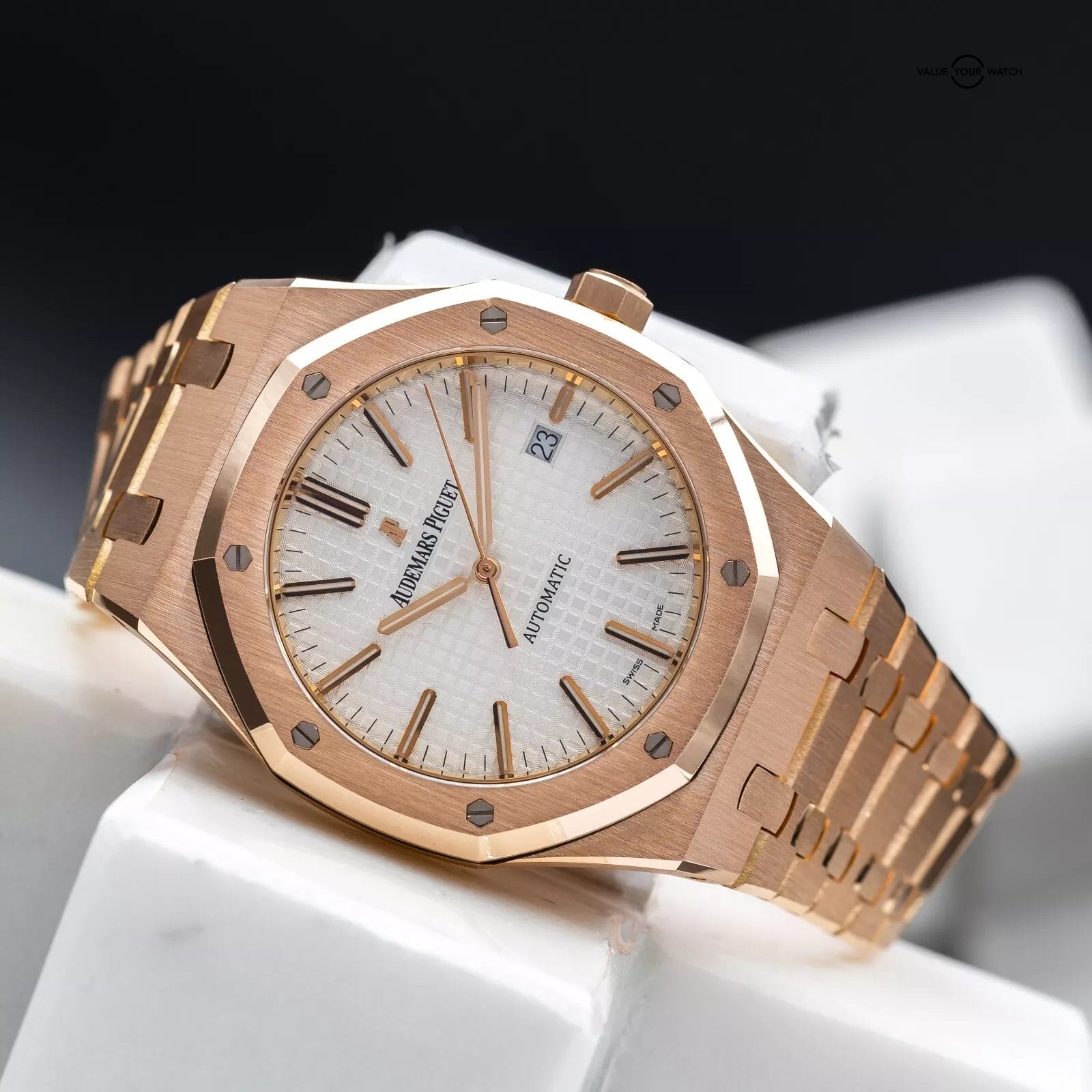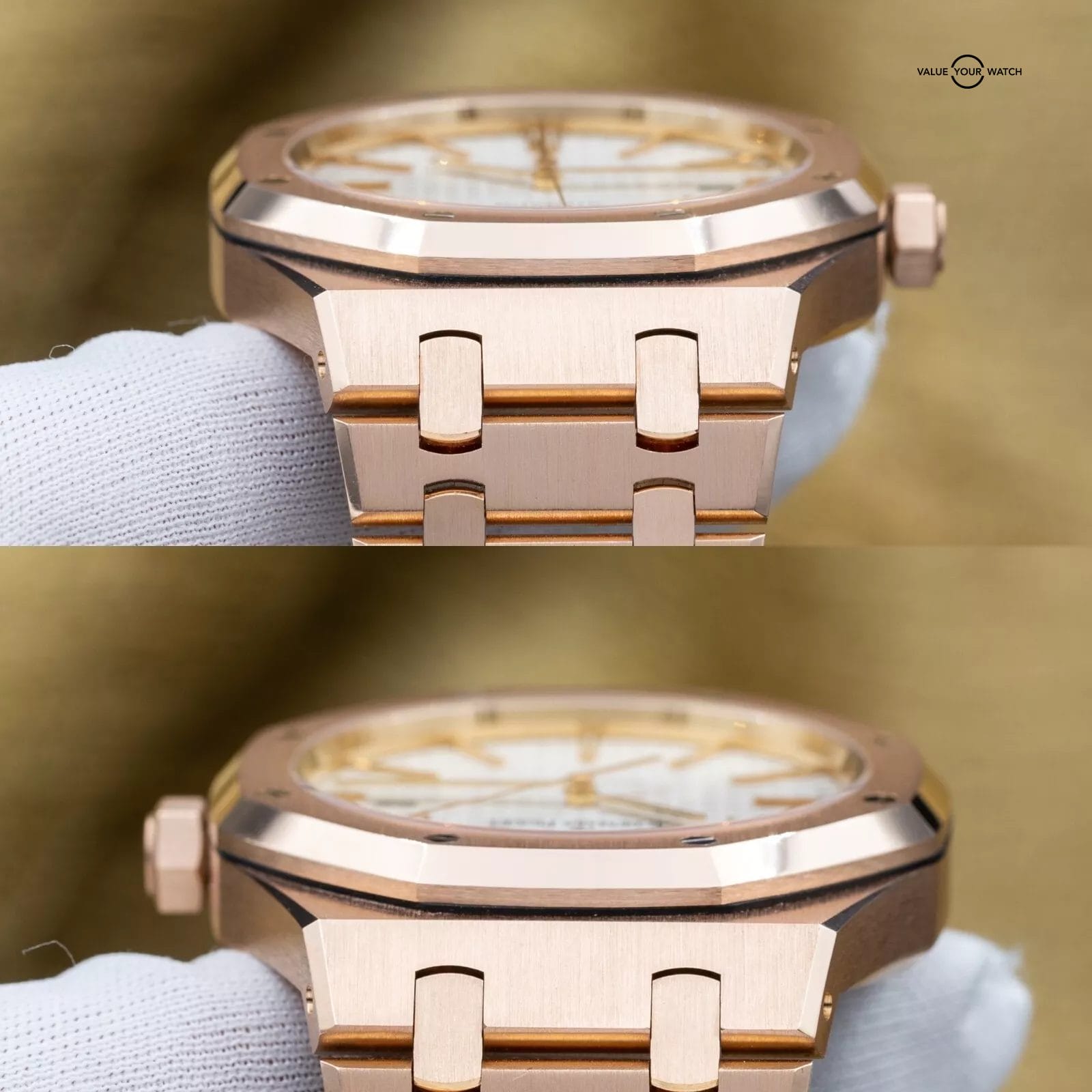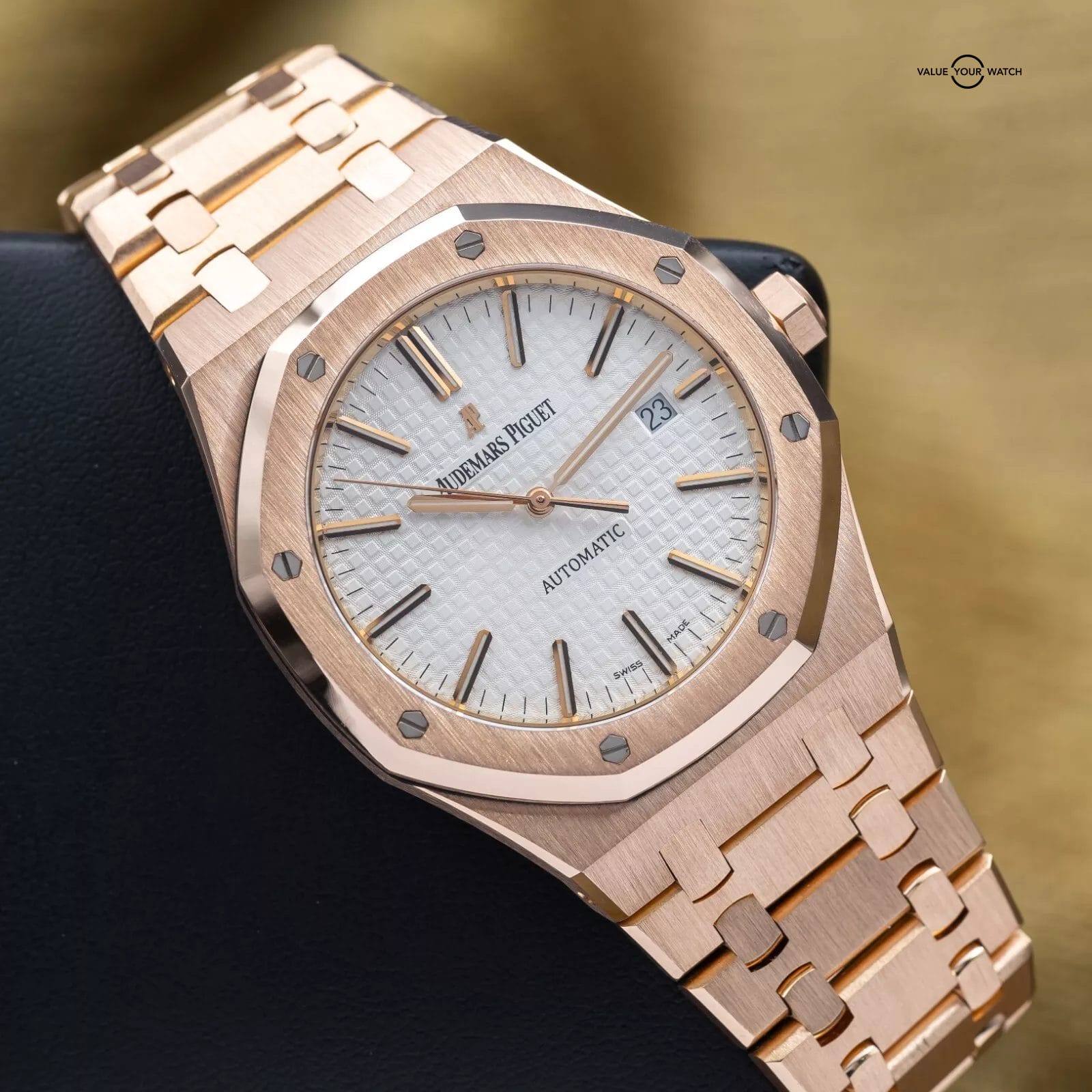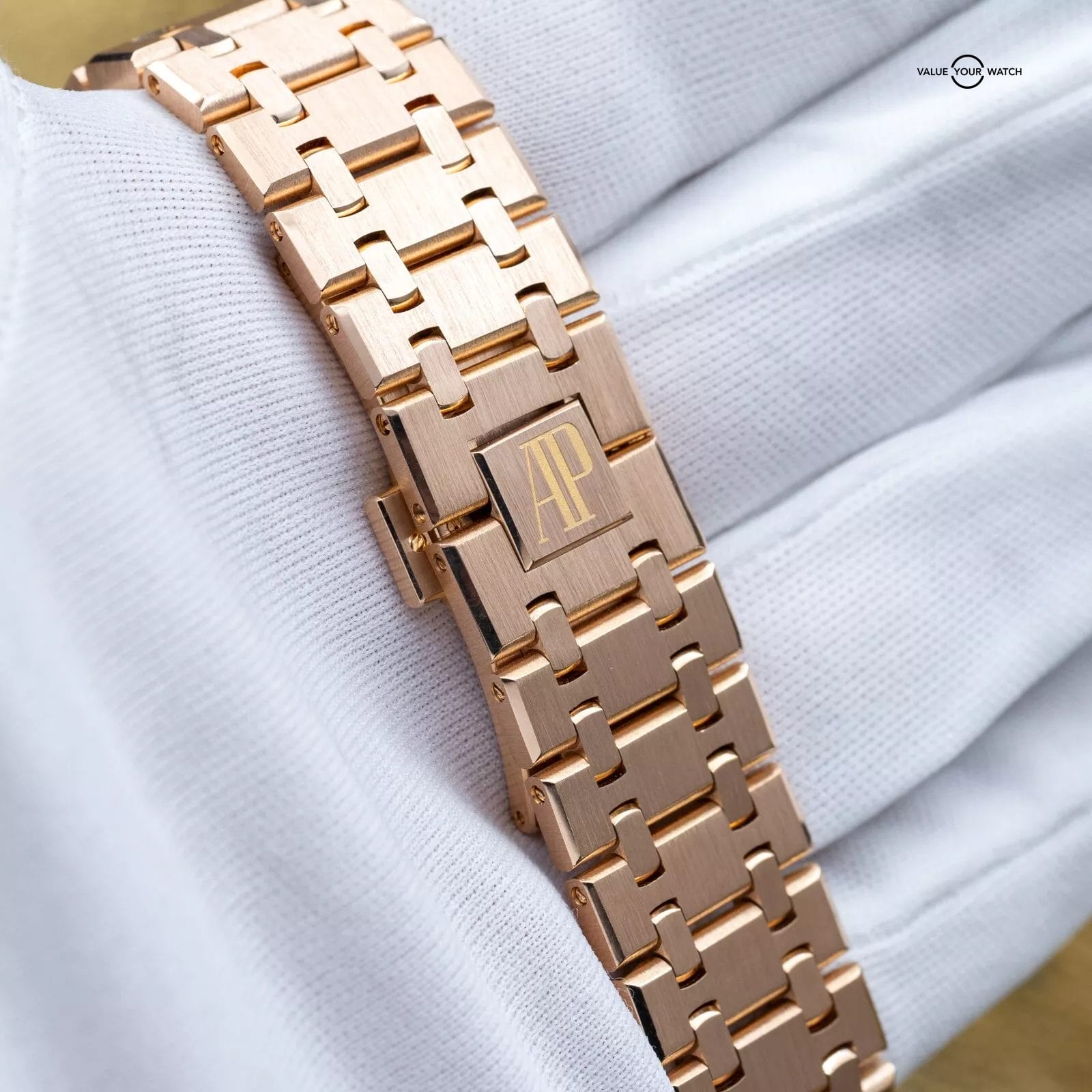 Grail alert! Up for sale or trade is the Royal Oak Offshore in exquisite rose gold. It’s housed in a insanely finished 18-carat gold case and matching bracelet finished to the highest quality AP knows how to do. This piece came with the bracelet, so it is not a converted watch…this is the real deal with the correct reference! The white dial against the rose is so good in the flesh. Pretty much the epitome of the best piece of jewelry a man can wear…just like Genta intended!