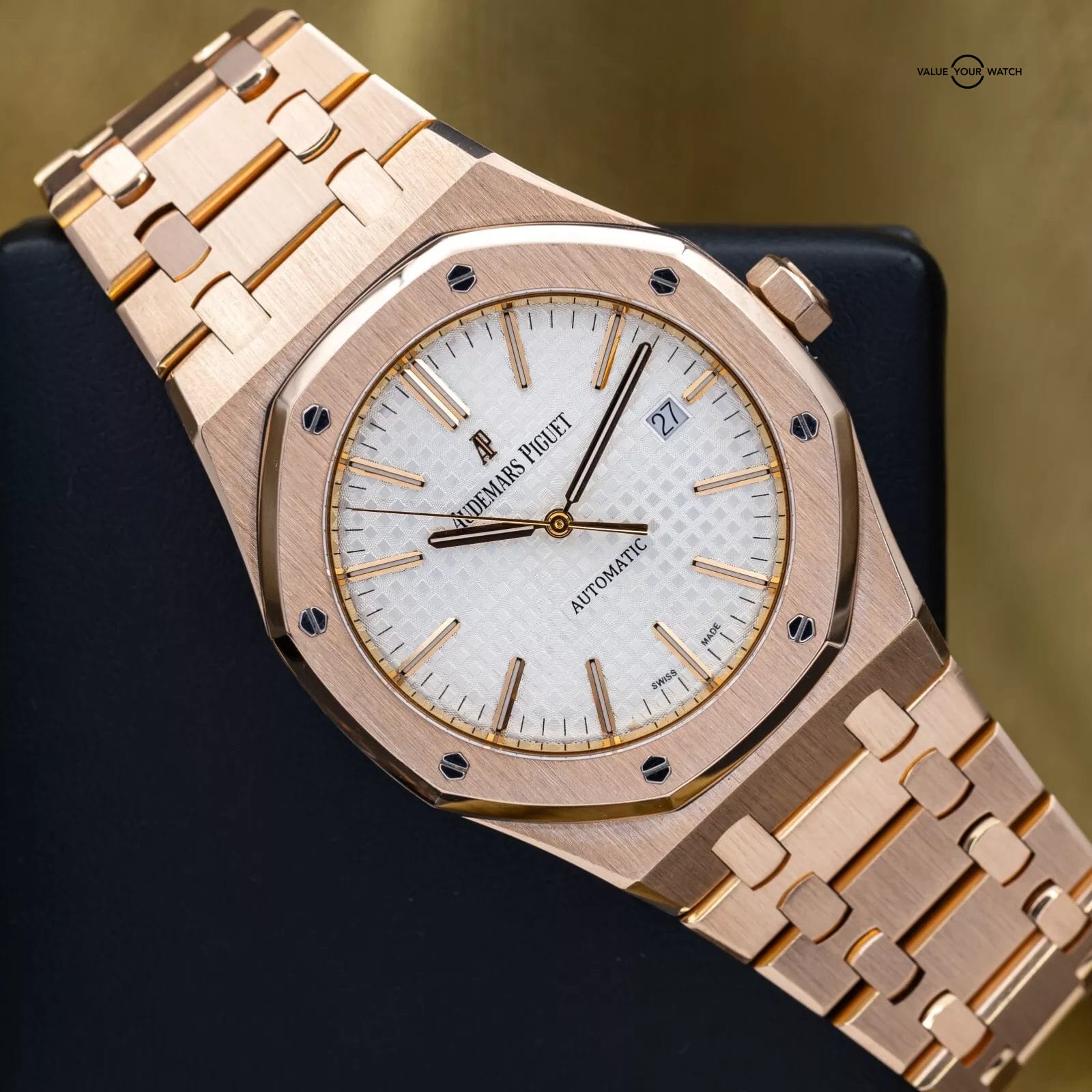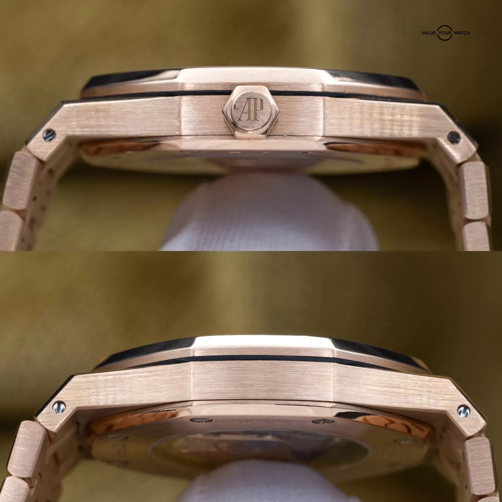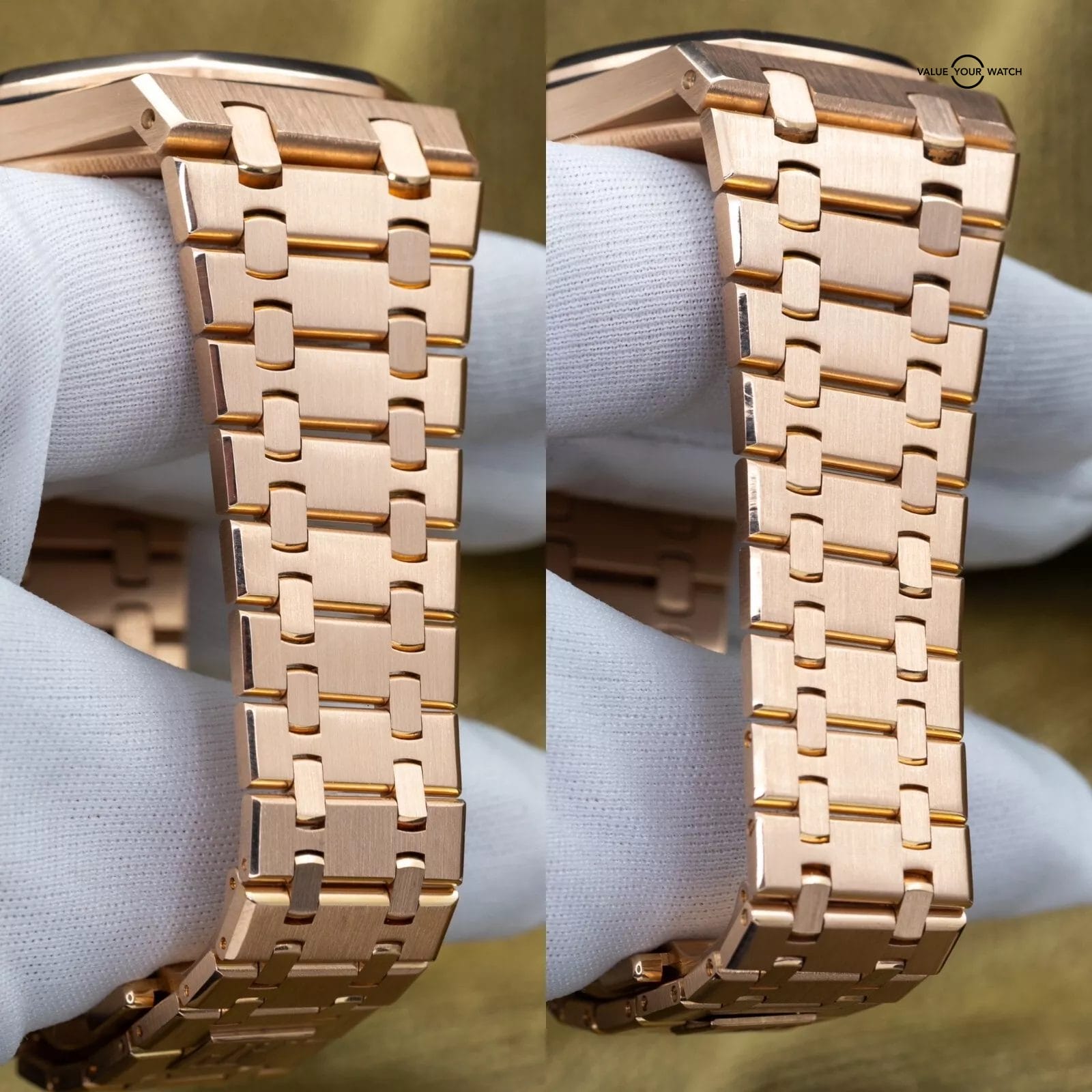 Grail alert! Up for sale or trade is the Royal Oak Offshore in exquisite rose gold. It’s housed in a insanely finished 18-carat gold case and matching bracelet finished to the highest quality AP knows how to do. This piece originally came direct from the Wempe AP dealer on 5th Ave in NYC. Also came with the bracelet so it is not a converted watch…this is the real deal with the correct reference! The white dial against the rose is so good in the flesh. Pretty much the epitome of the best piece of jewelry a man can wear…just like Genta intended!