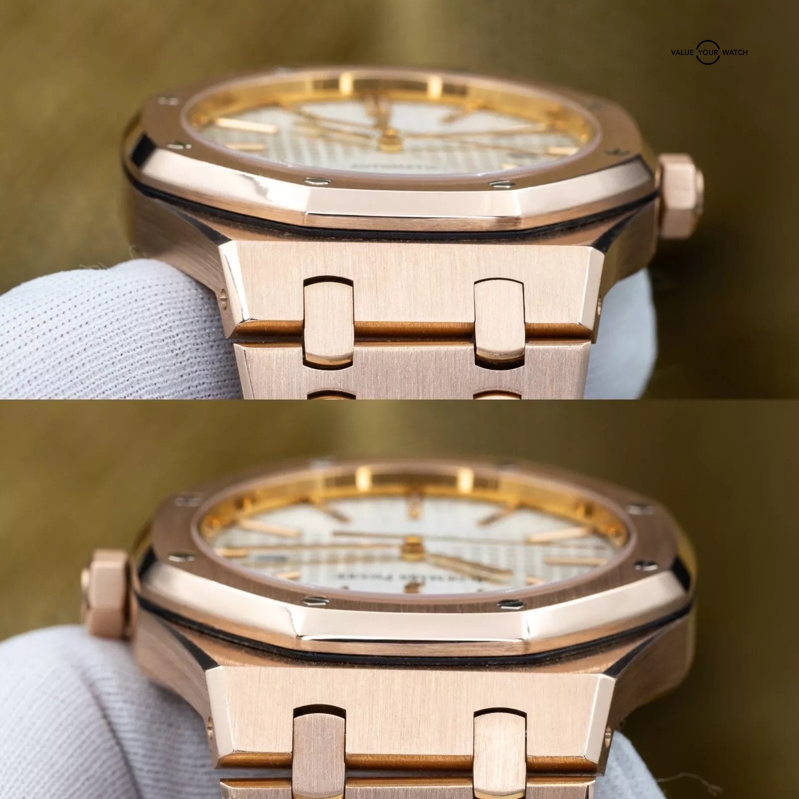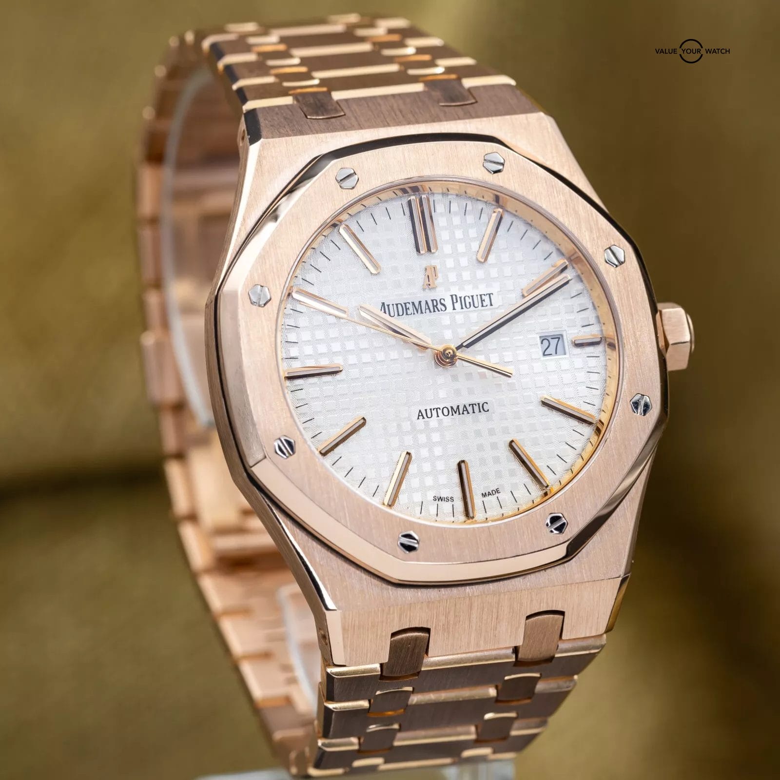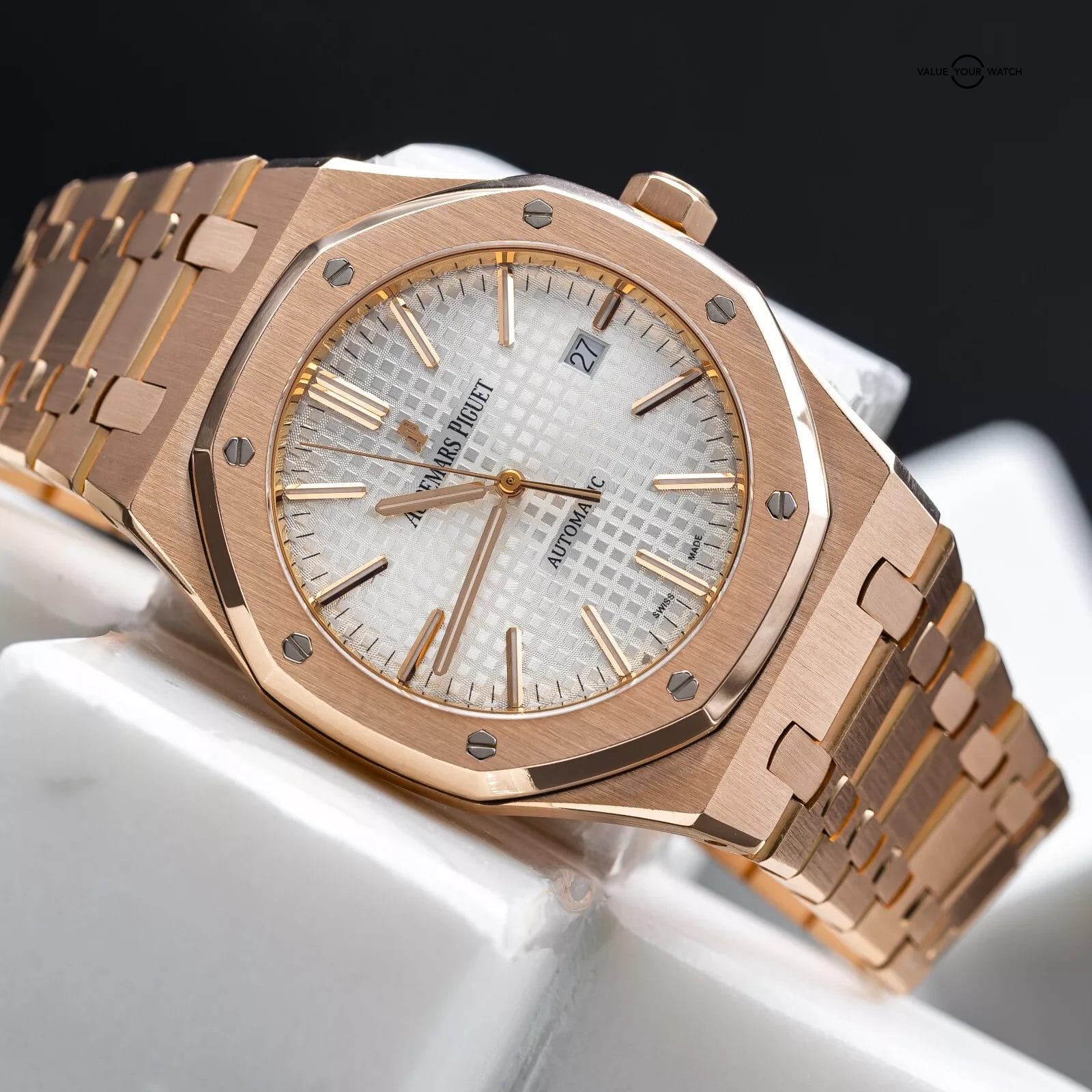Grail alert! Up for sale or trade is the Royal Oak Offshore in exquisite rose gold. It’s housed in a insanely finished 18-carat gold case and matching bracelet finished to the highest quality AP knows how to do. This piece originally came direct from the Wempe AP dealer on 5th Ave in NYC. Also came with the bracelet so it is not a converted watch…this is the real deal with the correct reference! The white dial against the rose is so good in the flesh. Pretty much the epitome of the best piece of jewelry a man can wear…just like Genta intended!