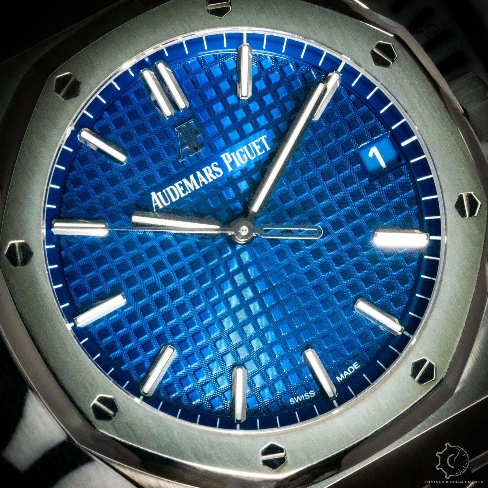 The Audemars Piguet Royal Oak 15503BC.OO.1220BC.01 is a bold and luxurious expression of one of the most iconic sport watches ever made. Crafted in white gold, the 41mm case gives the watch a substantial yet refined presence, while the vivid blue dial adds striking contrast and depth. The signature Royal Oak design elements, from the octagonal bezel to the integrated bracelet, create a look that is instantly recognizable and unmistakably sophisticated.
