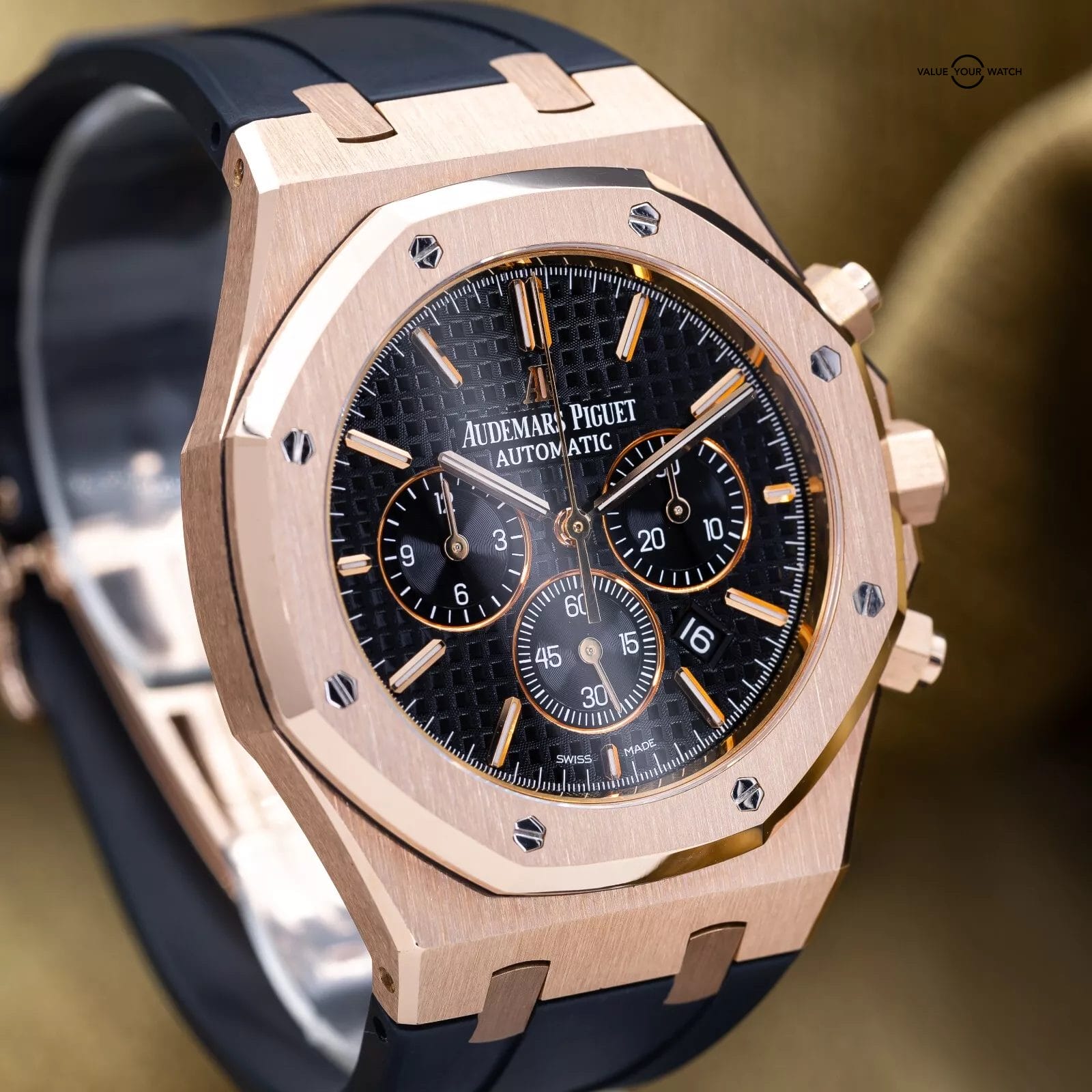 Grail alert! Up for sale or trade is the Royal Oak Offshore Chronograph in exquisite rose gold. It’s housed in a insanely finished 18-carat gold case that showcases Audemars Piguet’s signature octagonal bezel. The iconic “Tapisserie” pattern adds depth and texture, and the rose gold bracelet complements the case, creating a cohesive and sophisticated look. Each element of this timepiece, from its polished surfaces to its intricate details, reflects the brand’s commitment to excellence. This timepiece is ideal for those who desire a statement piece that seamlessly blends elegance with functionality in one of AP’s most sought-after configurations.