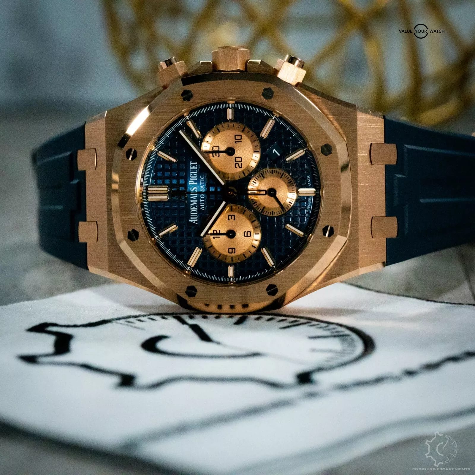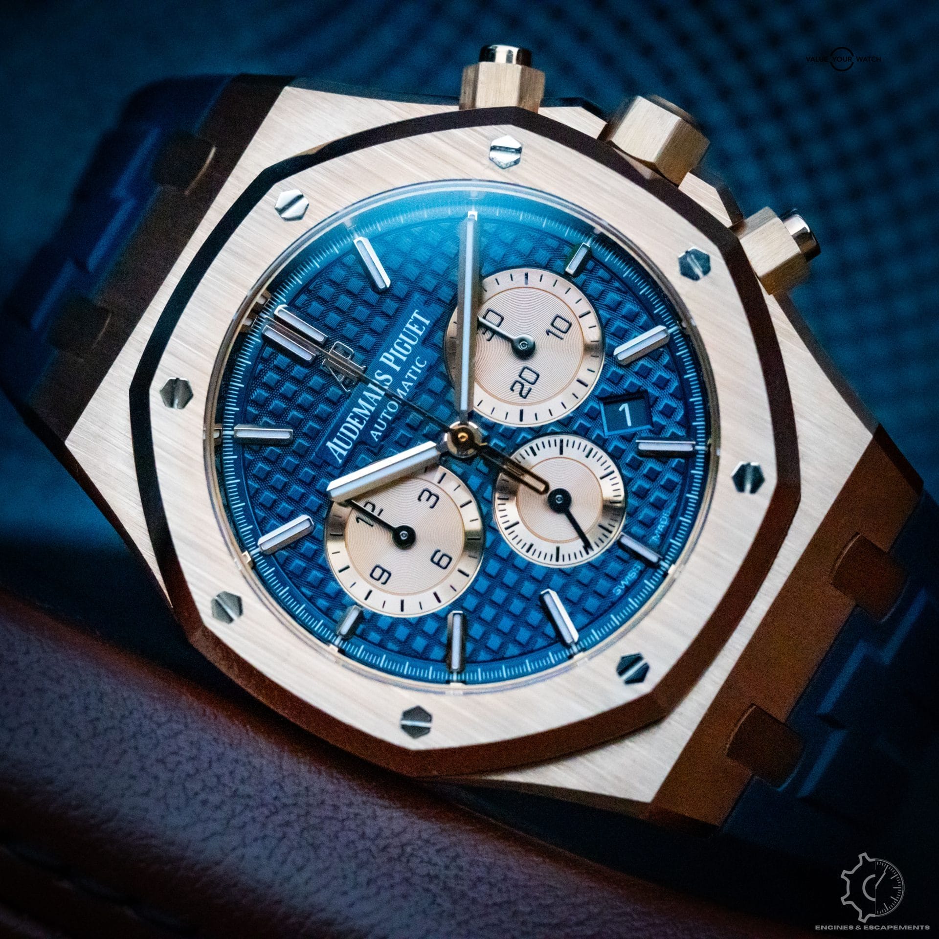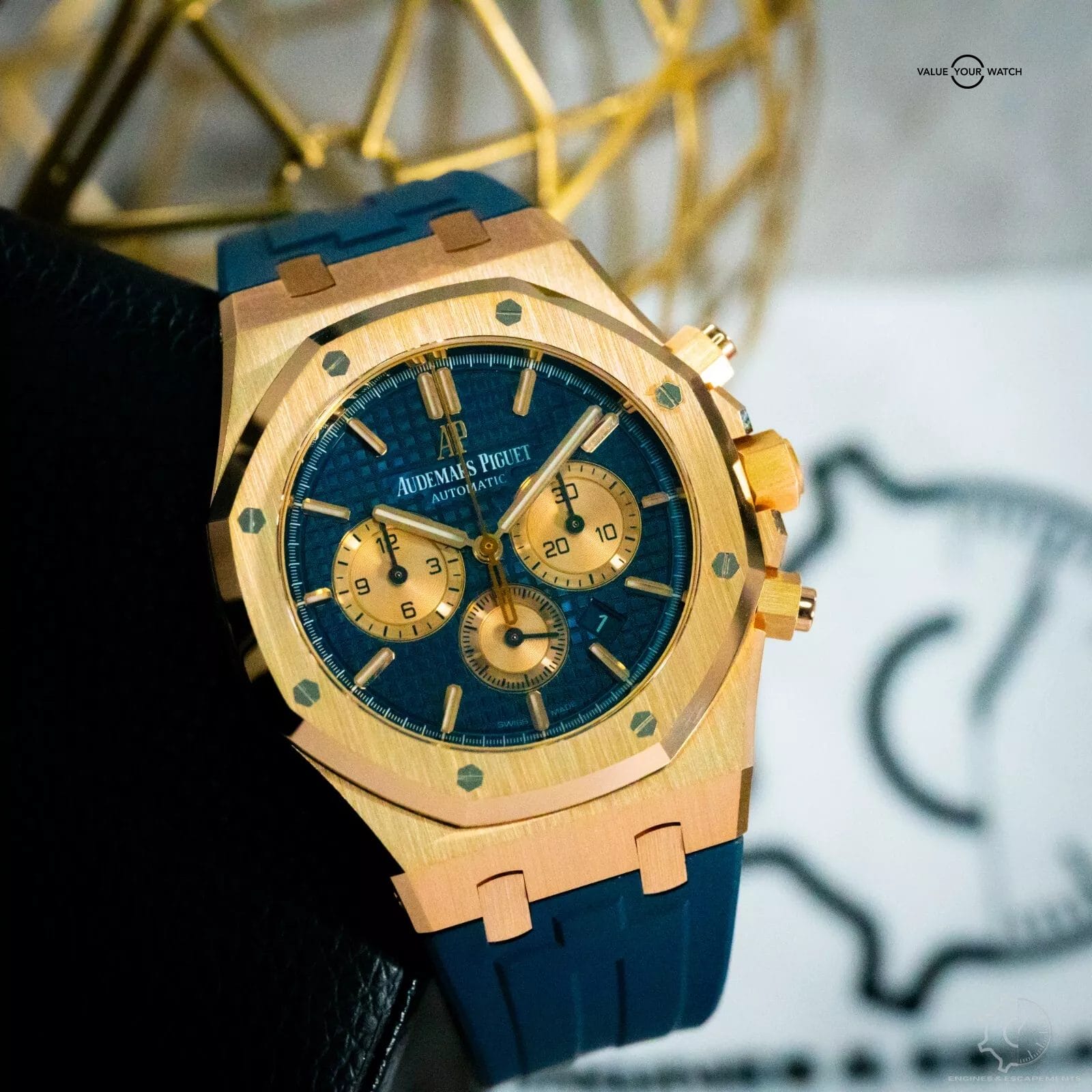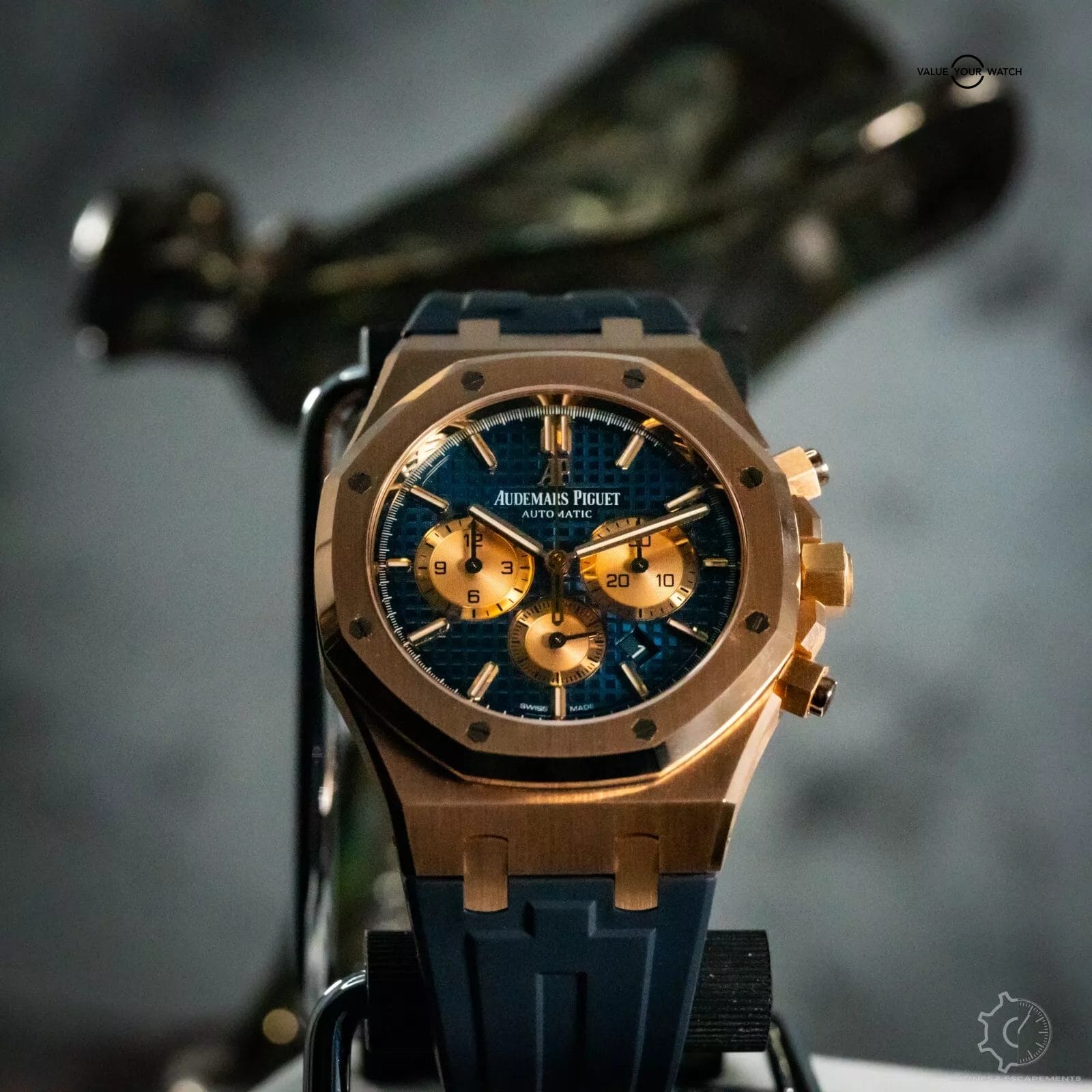 This exquisite timepiece comes with official papers from AP, OEM box, OEM blue leather AP strap, OEM rose gold tang buckle, & the pictured blue RubberB strap that makes this piece incredibly wearable.