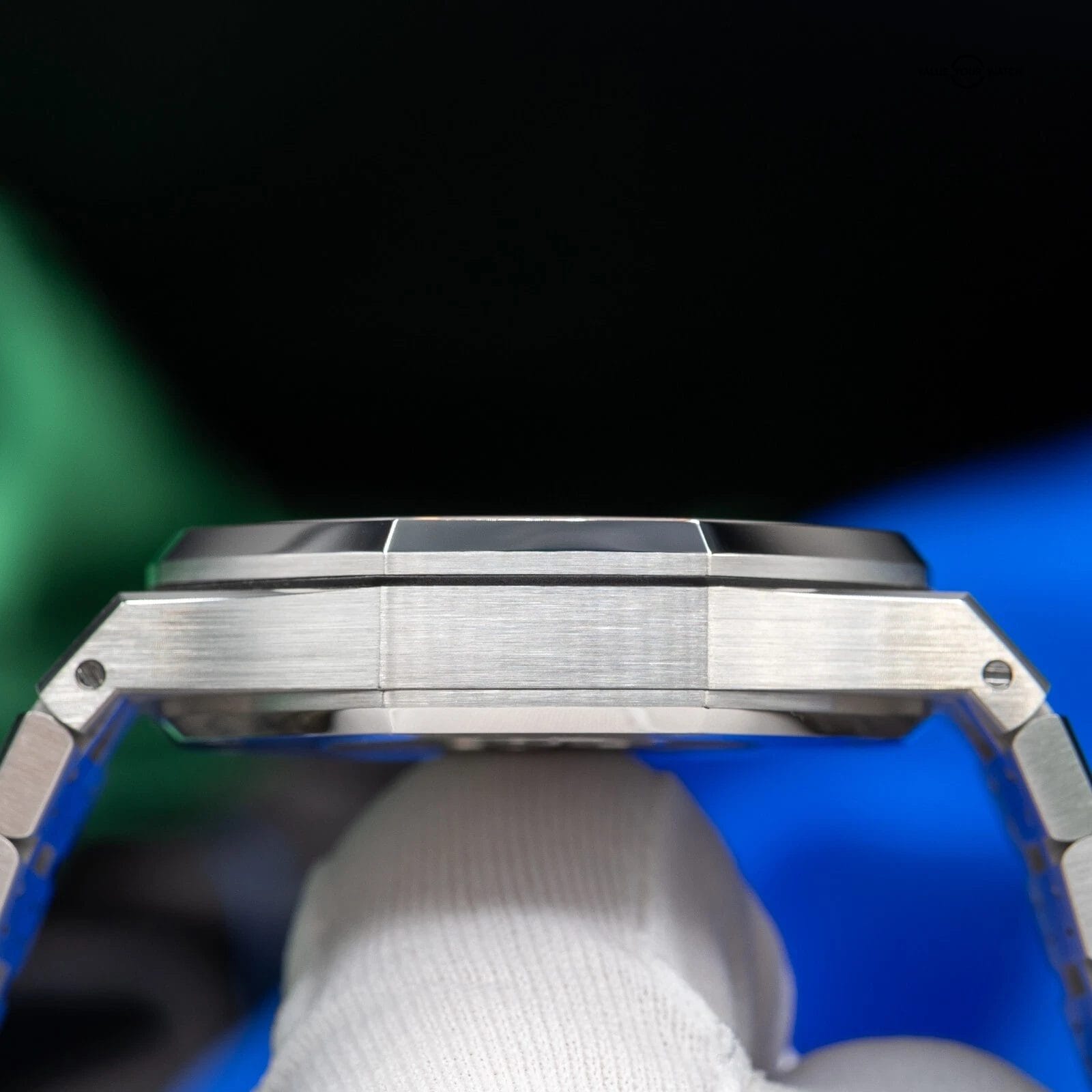 Bezel: Brushed Stainless Steel Octagonal Bezel with Polished Screws