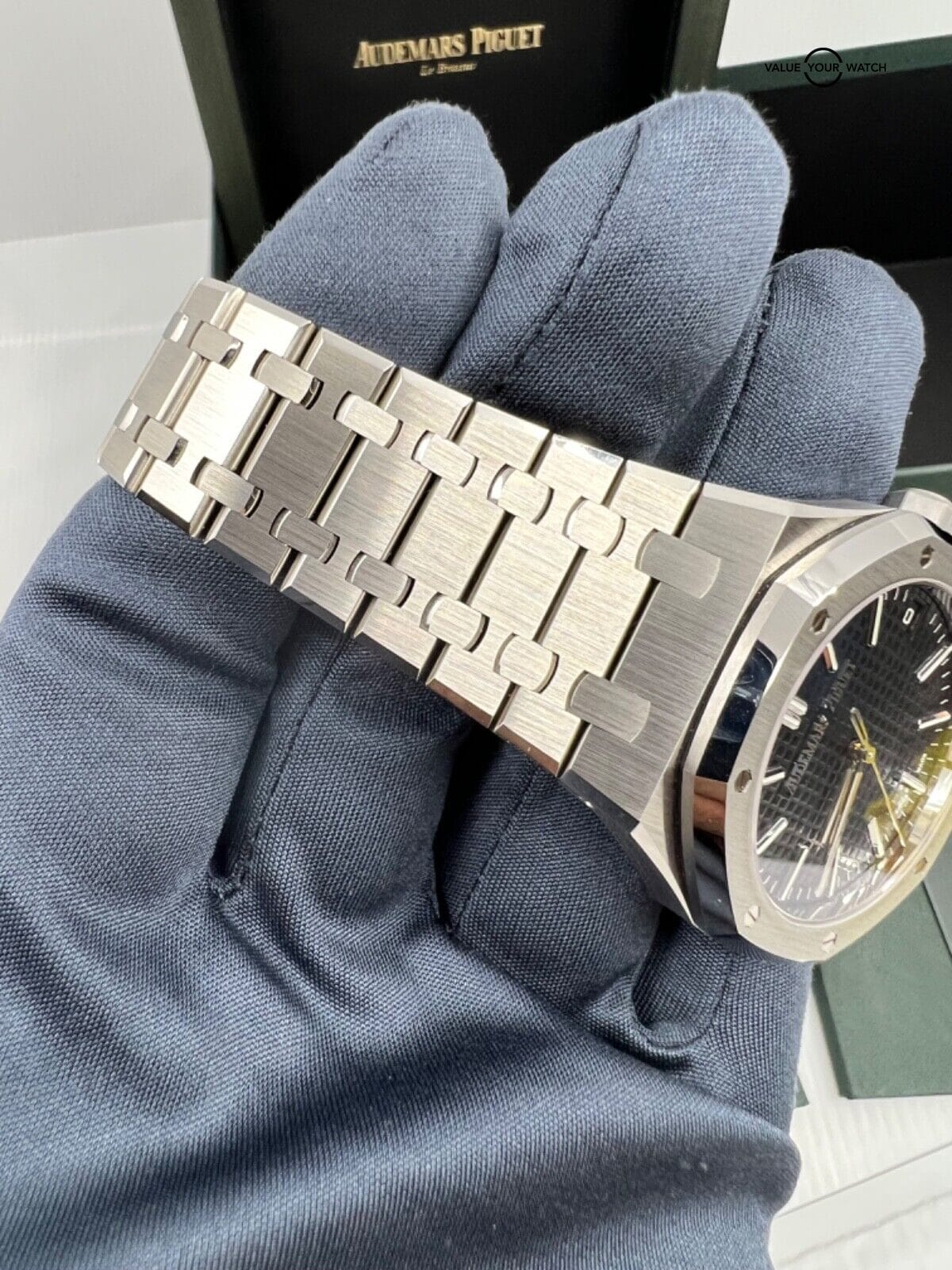 Here are the specifications of the New 50th Anniversary Audemars Piguet Royal Oak Blue Dial 41mm Complete Set: