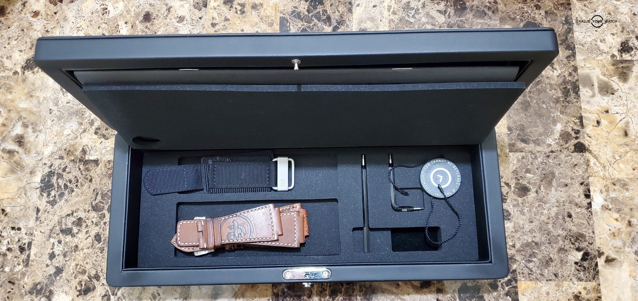 Includes Additional Black Fabric Nato Strap, 2 leather straps, & Changing Tools