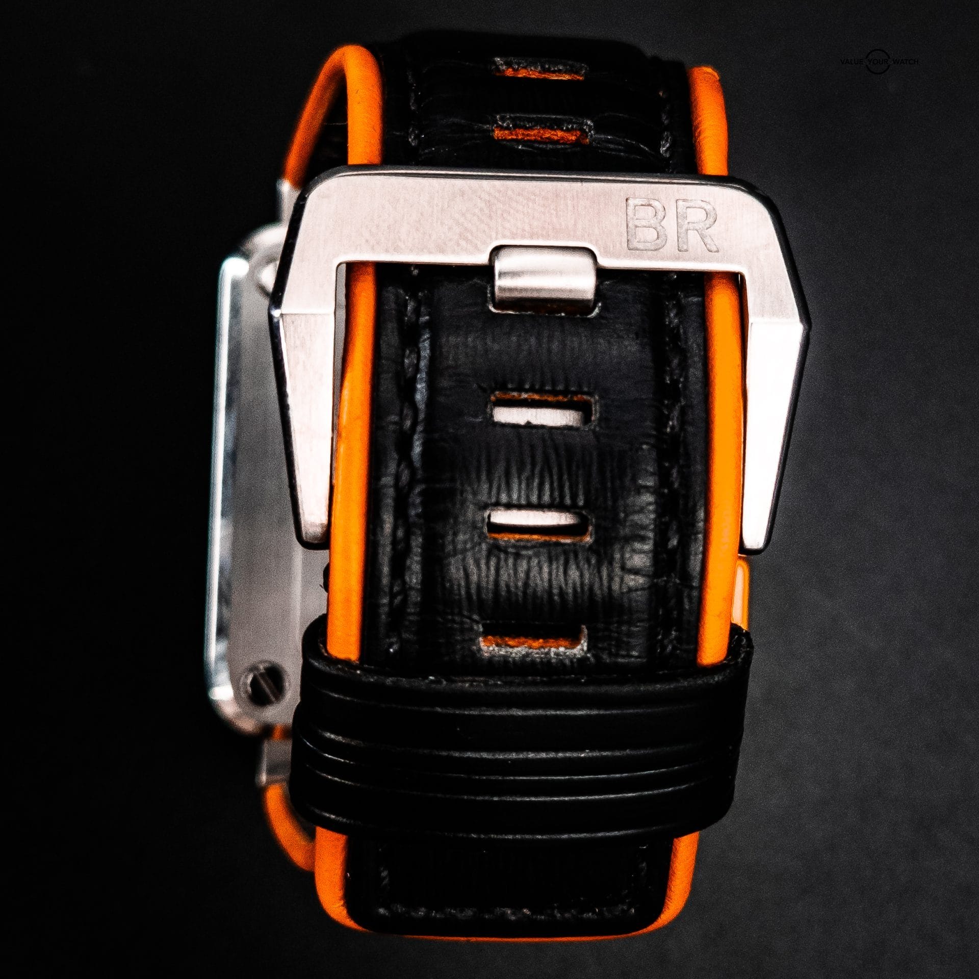 – Perforated Black Leather Strap with Orange Lining