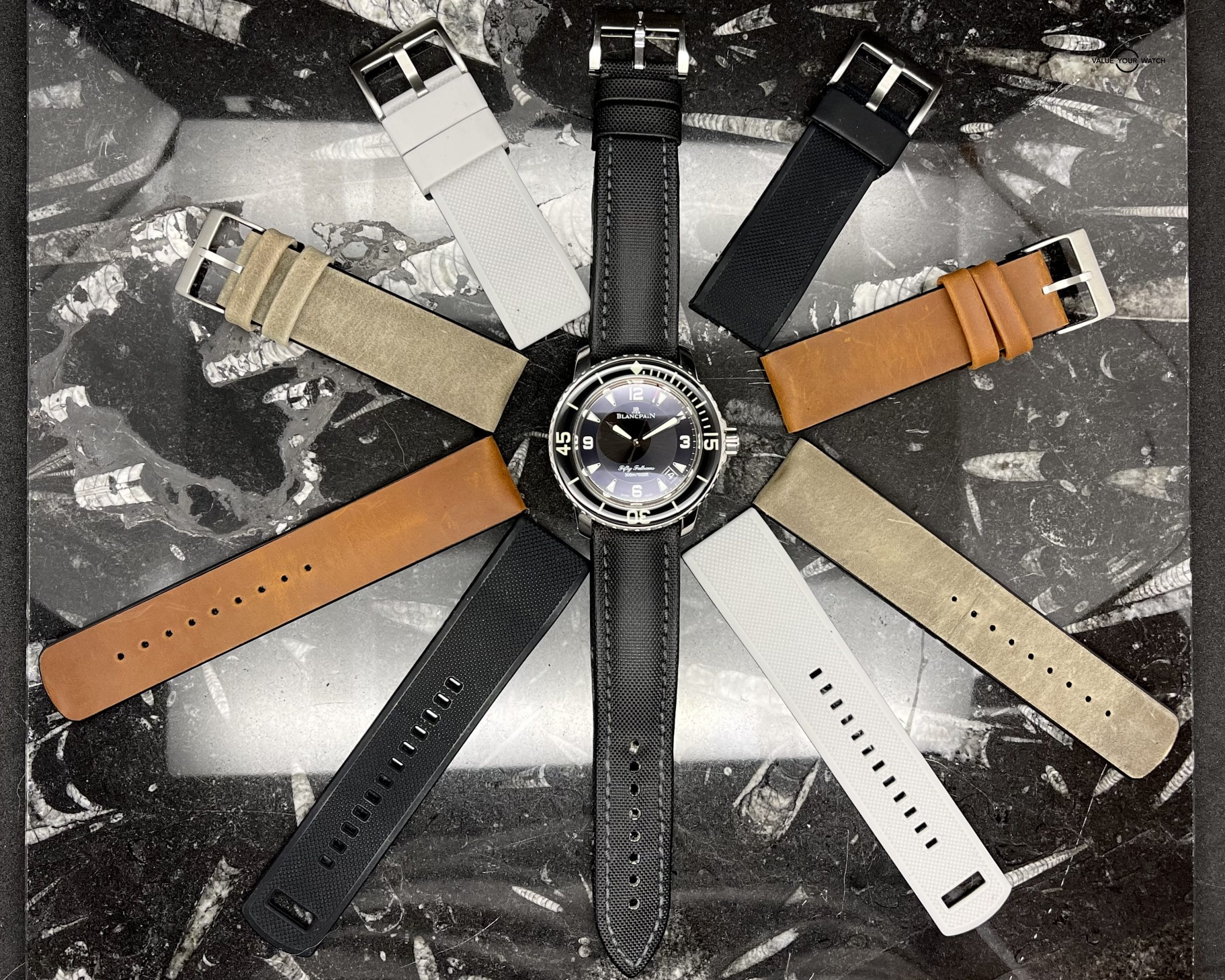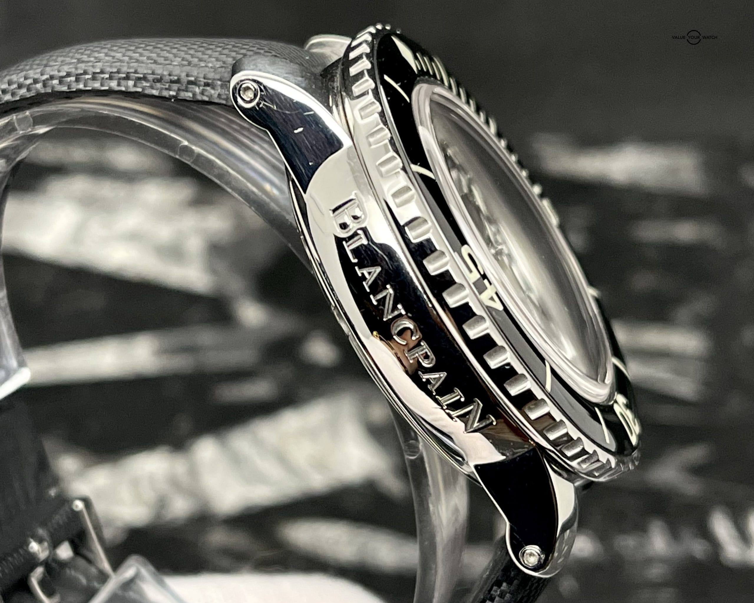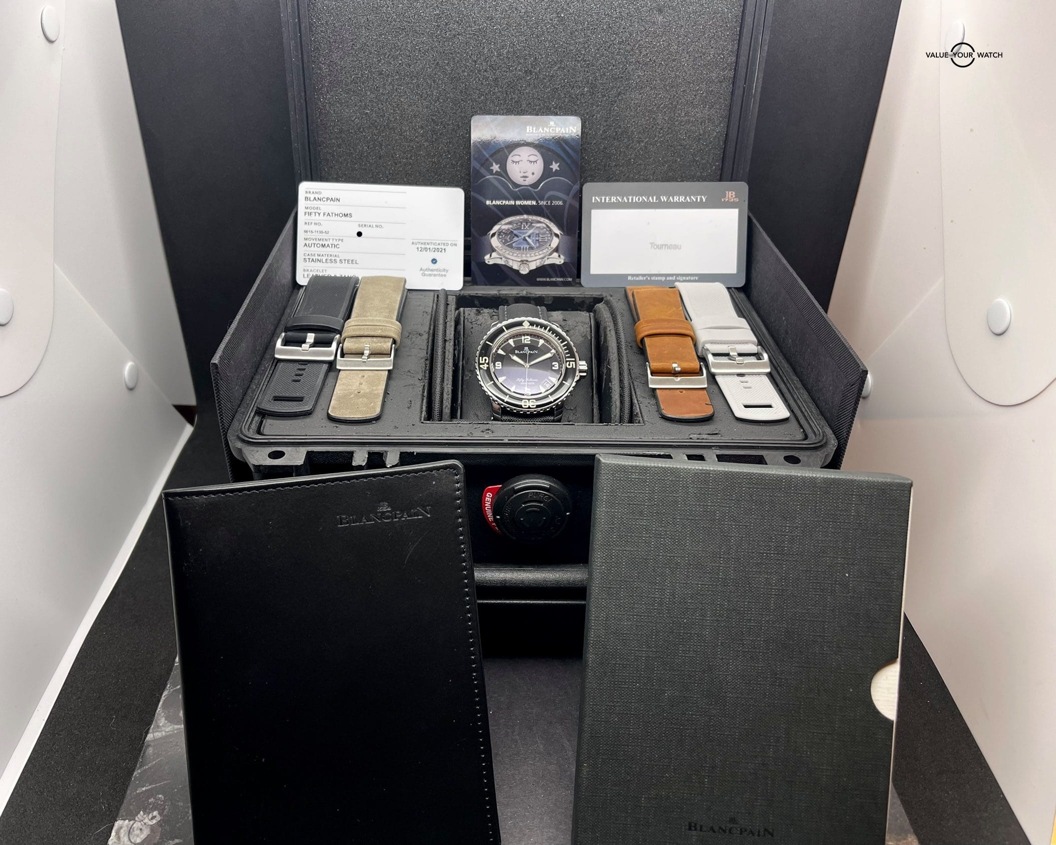 Up for sale is my striking Blancpain Fifty Fathoms with a domed sapphire crystal bezel allowing for complete luminescence, date indicator at 4:30, and 300m of water resistance. This particular model is one of the first 100 made! I love the history behind this watch as well as this brand. With this being the first civilian dive watch, also being issued to the French, US, Israeli, Spanish, and German Navy, on top of being from the oldest running watch manufacturer, there is a lot of history in this watch!