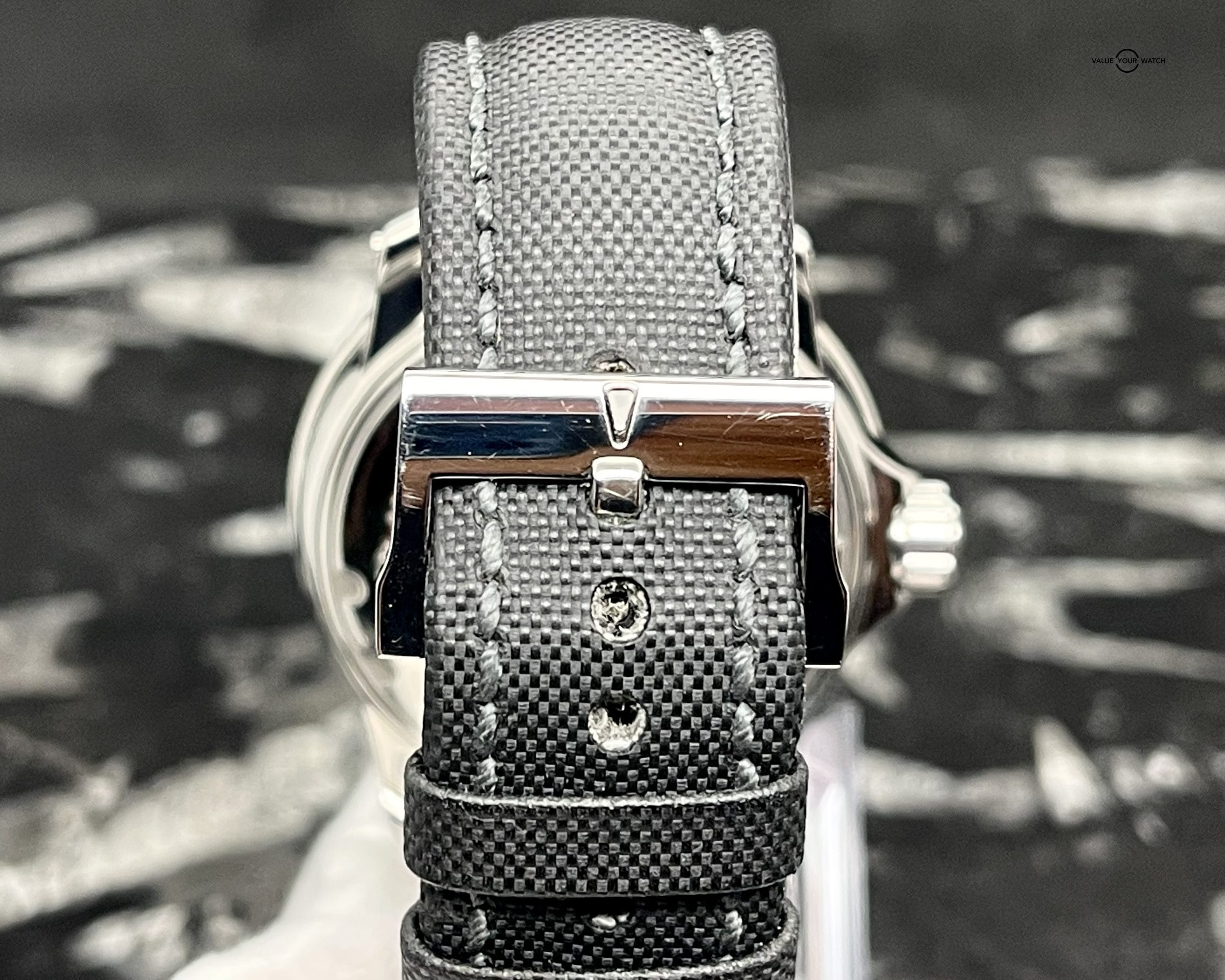 This watch comes with outer cardboard box, inner briefcase style plastic box, microfiber cloth, two additional leather straps, two additional rubber straps, service booklet, manual, filled warranty card, eBay authenticity guarantee card, strap change tools, and accuracy receipt. The original textile band is slightly separating from the rubber back but still fully functional, the 4 other bands it comes with are in mint condition, the case shows some slight scratching, the buckle has minor hairlines, and the sapphire and bezel are flawless. The original retail price of this watch was $14,500. Get this beautiful pre-owned time piece before it’s gone!