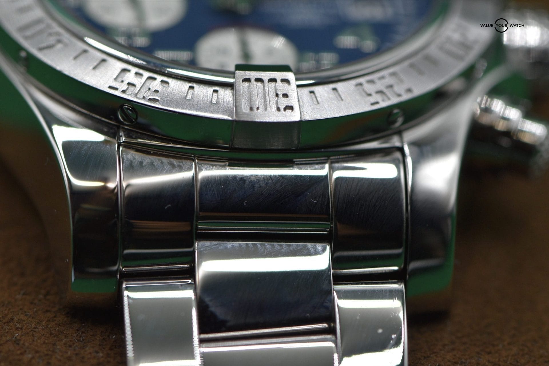 For sale Breitling A1338111 with box, digital card dated 2019, tag as well as manual. The watch was recently polished and runs great. Do not look any further for this great looking blue dial Breitling Avenger II