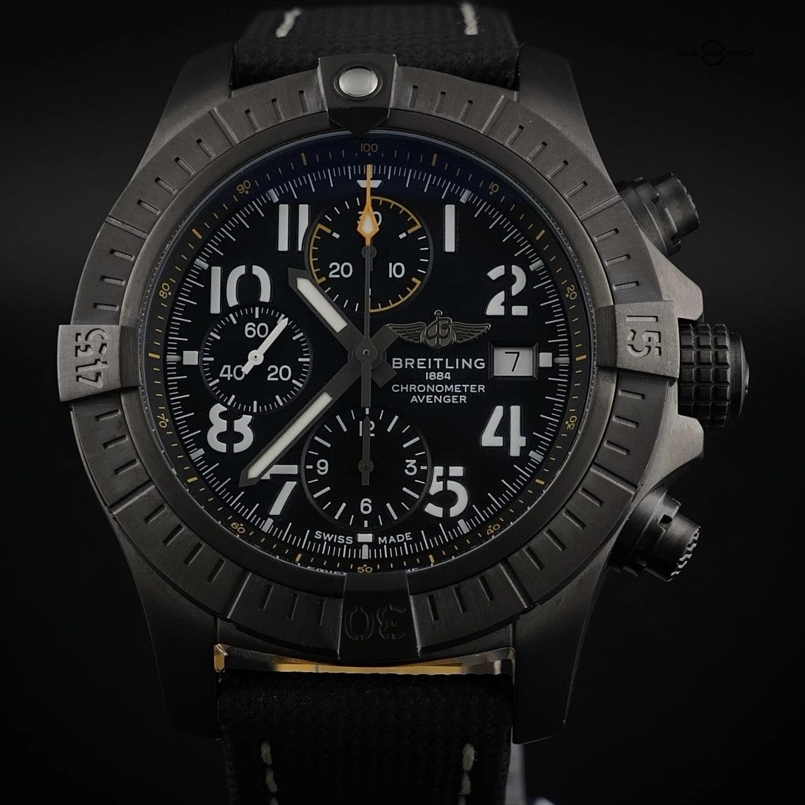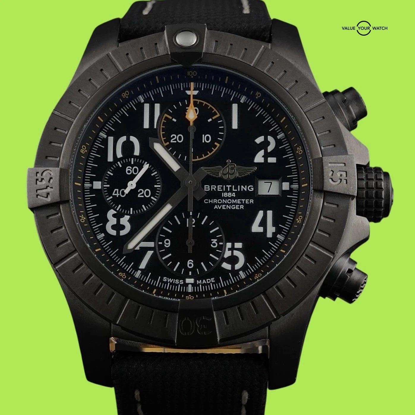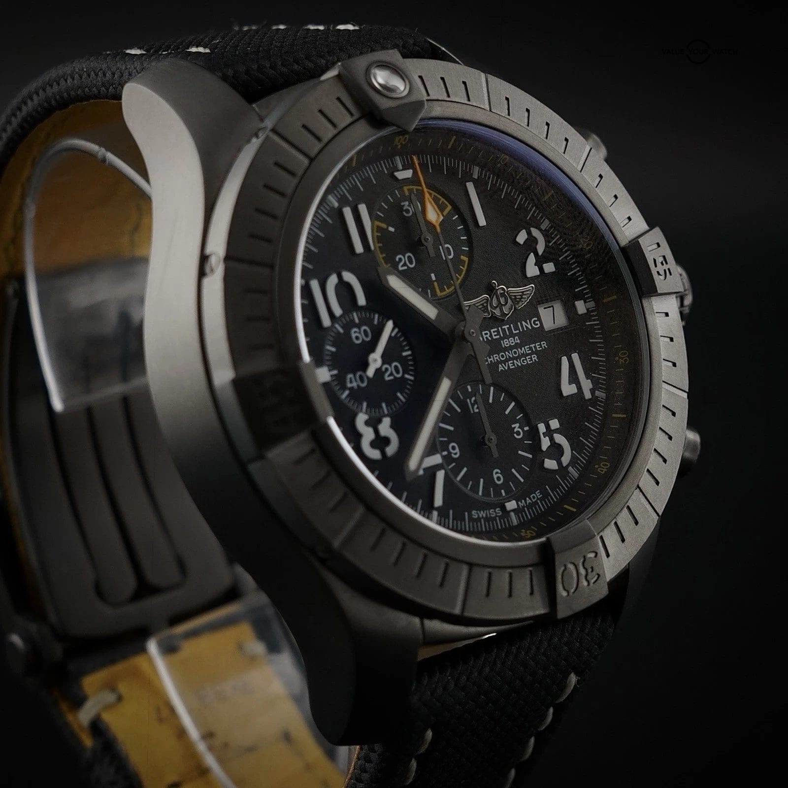 Specification: Breitling Avenger 45 Night Mission V13317 – Full Set, Extra Strap, Warranty