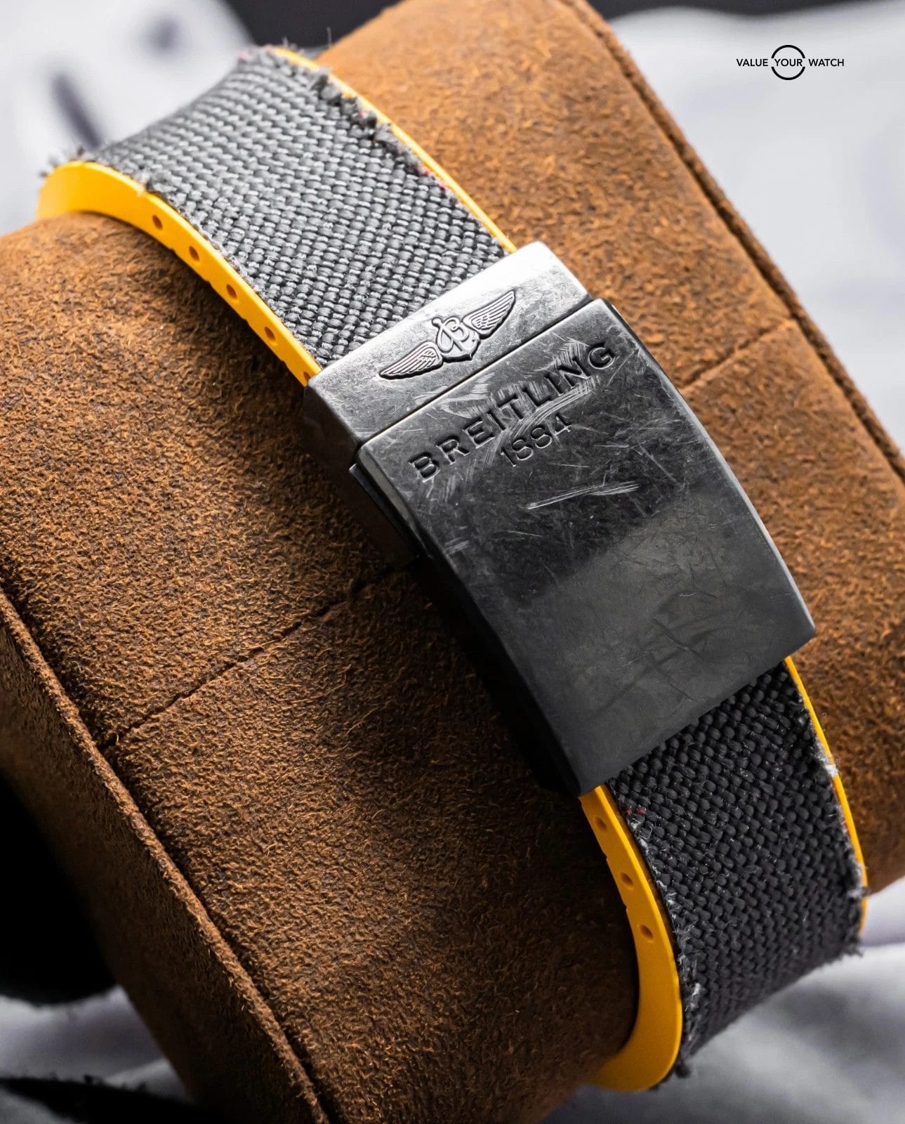 Band: Breitling Grey Military Canvas & Yellow Rubber Strap