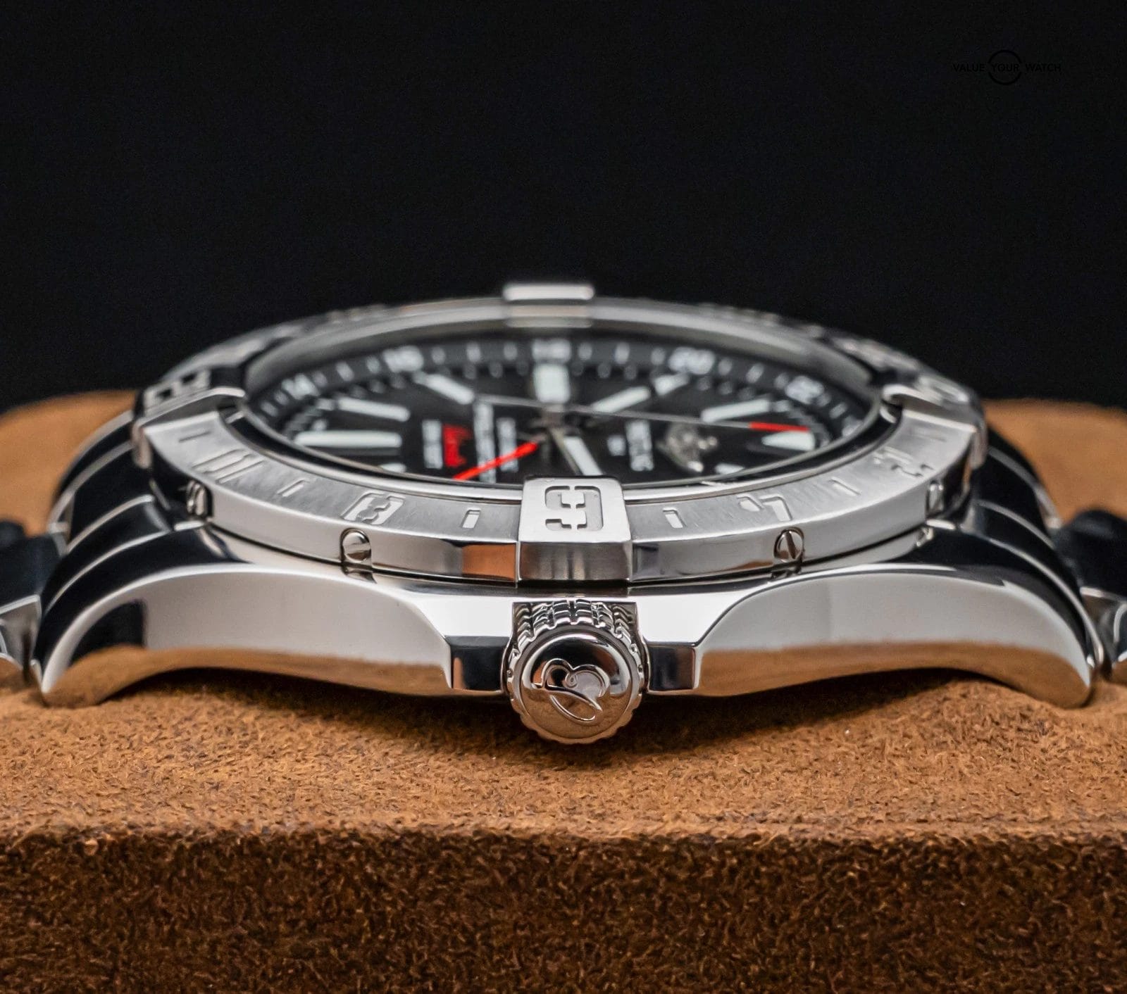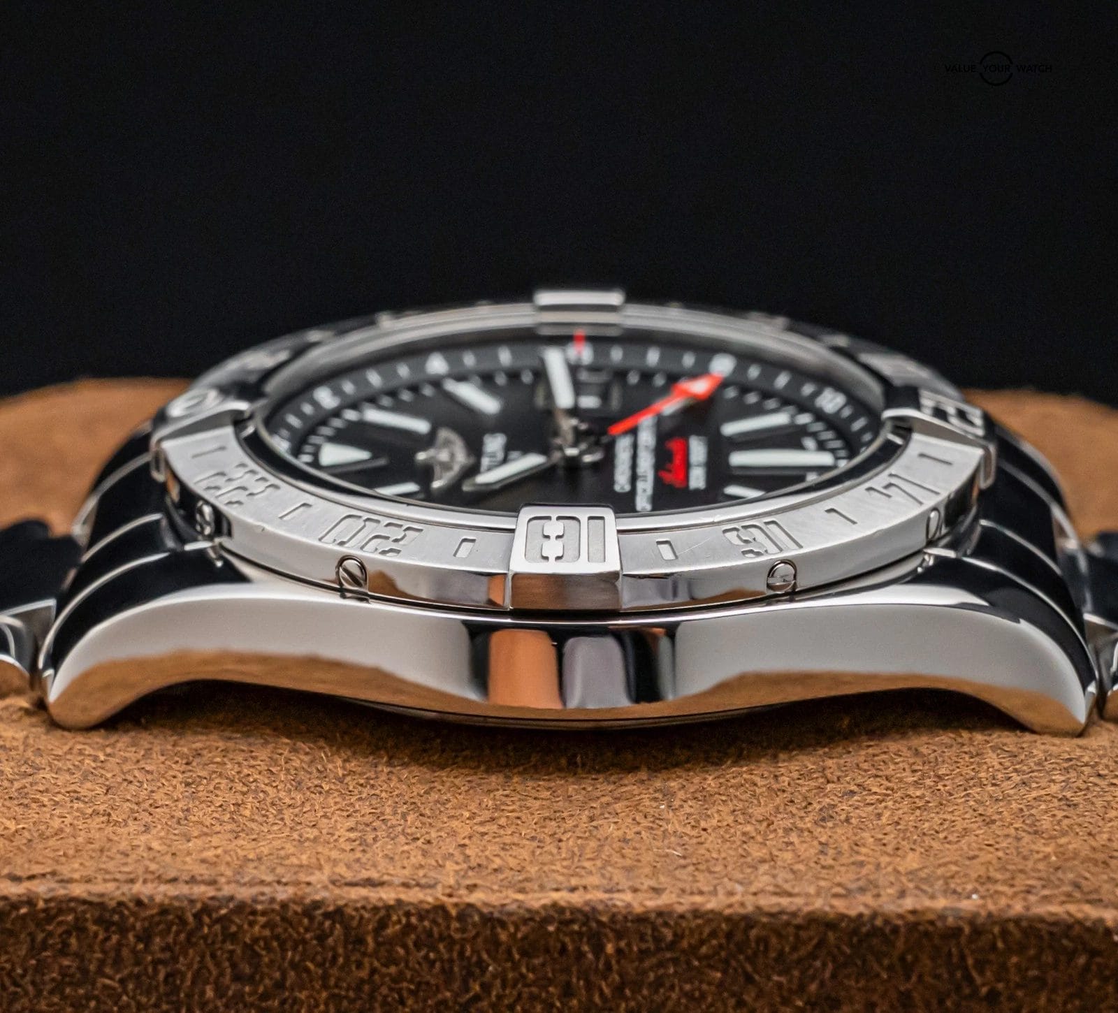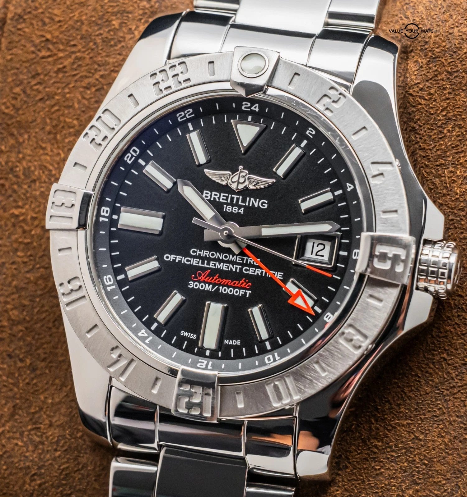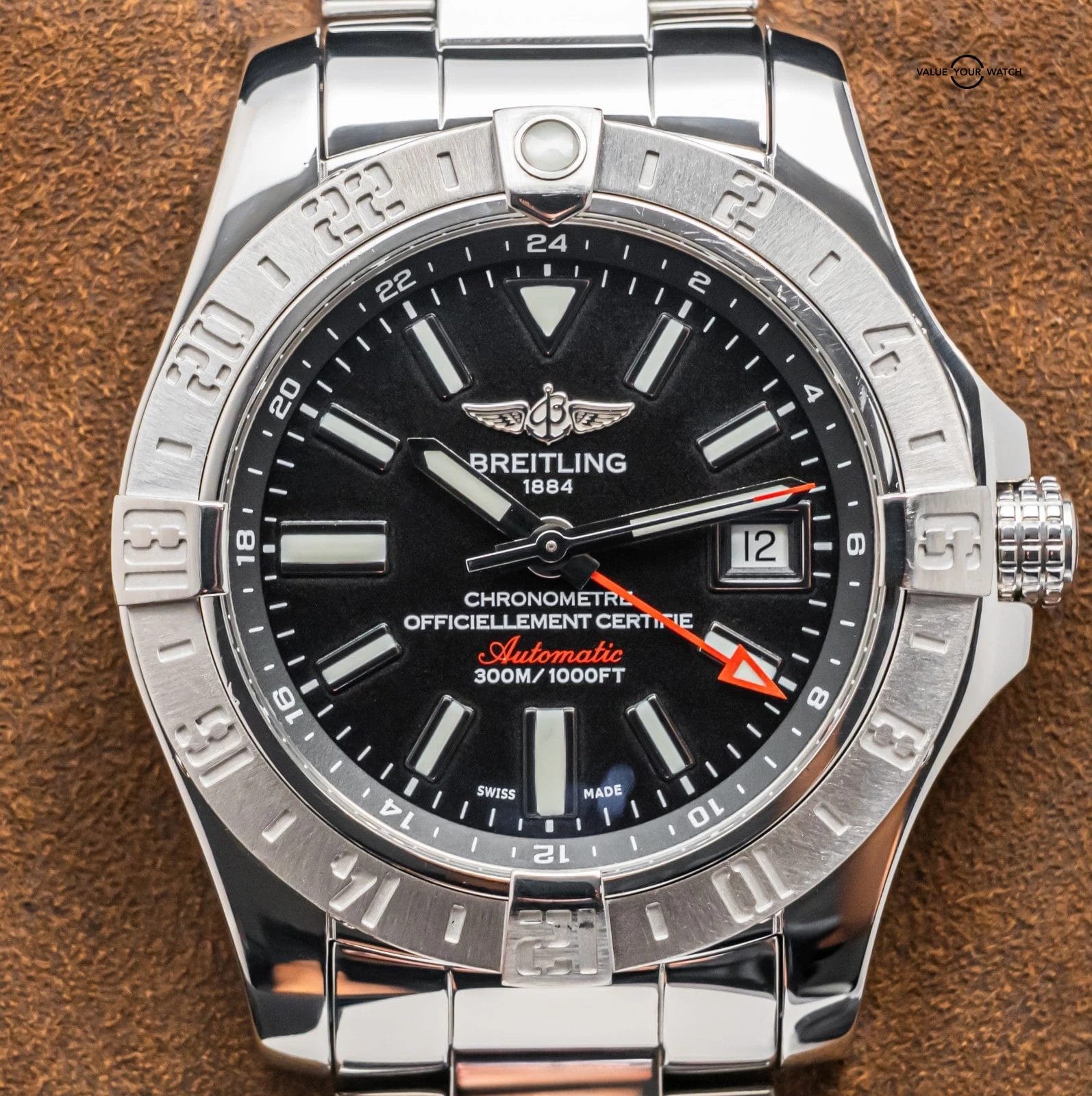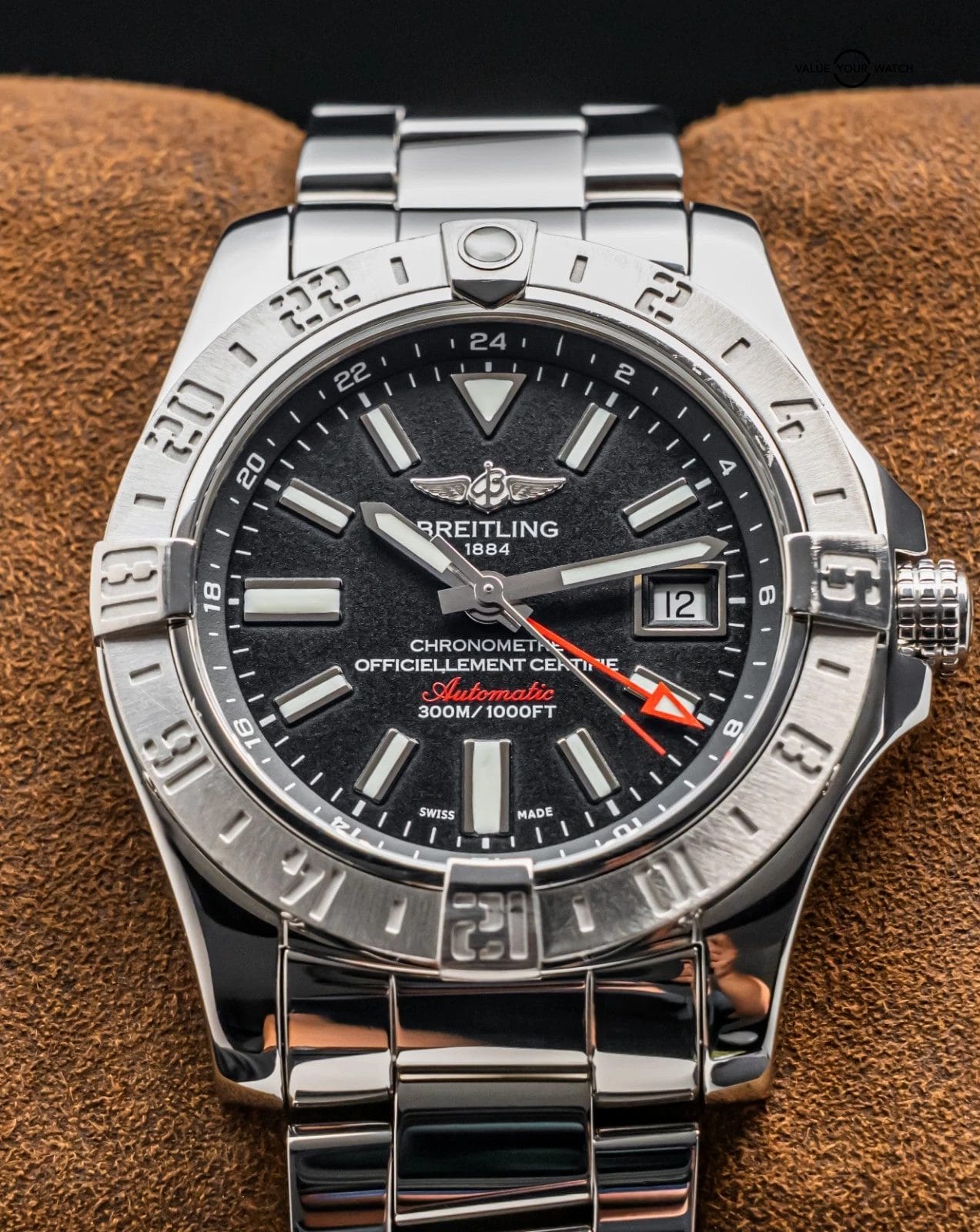 STUNNING Breitling Avenger II GMT 43 mm with Volcano Black Dial on Polished Stainless Steel Professional III Breitling Bracelet! Arrives as watch only and is a fantastic value on the secondary market. Super clean look and a very versatile all around piece, tons of bang for your buck with the Avenger II GMT!