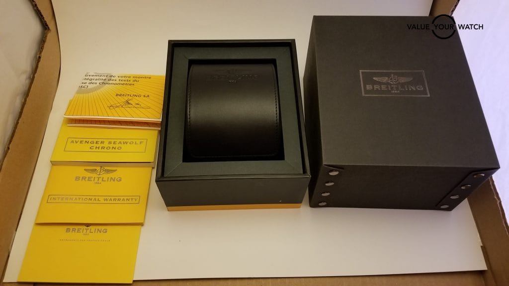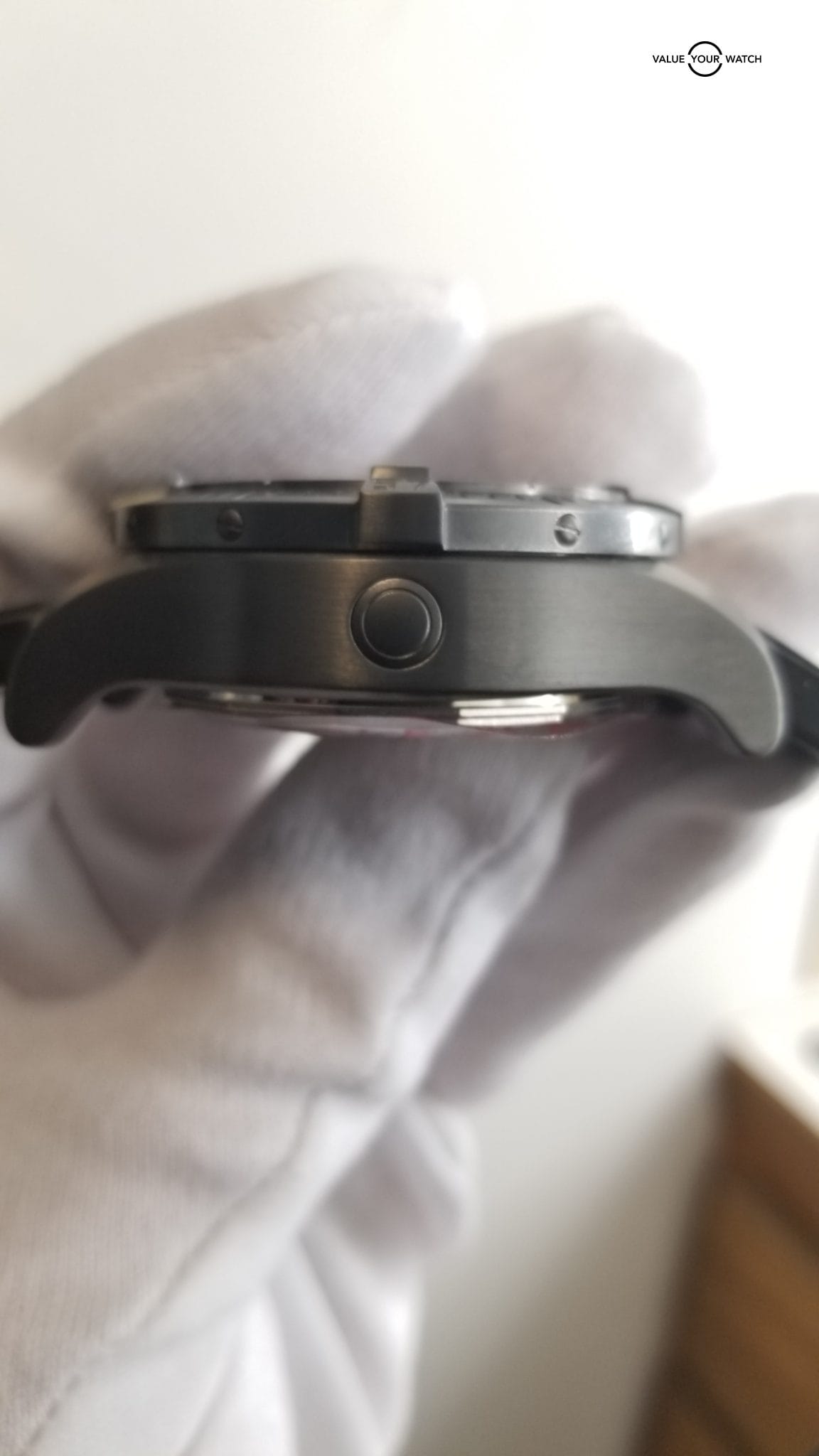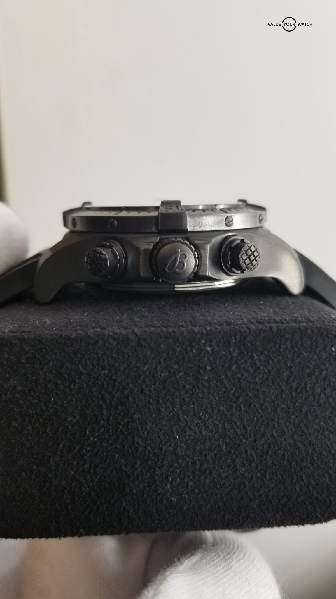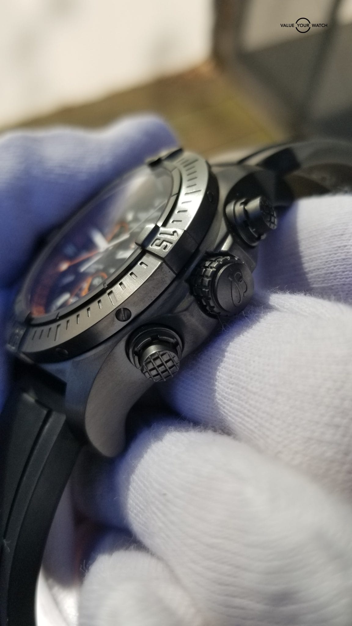 Black PVD 45.5mm case distinctly different from most of Breitling’s Catalogue. Stealth fighter inspired matte black.