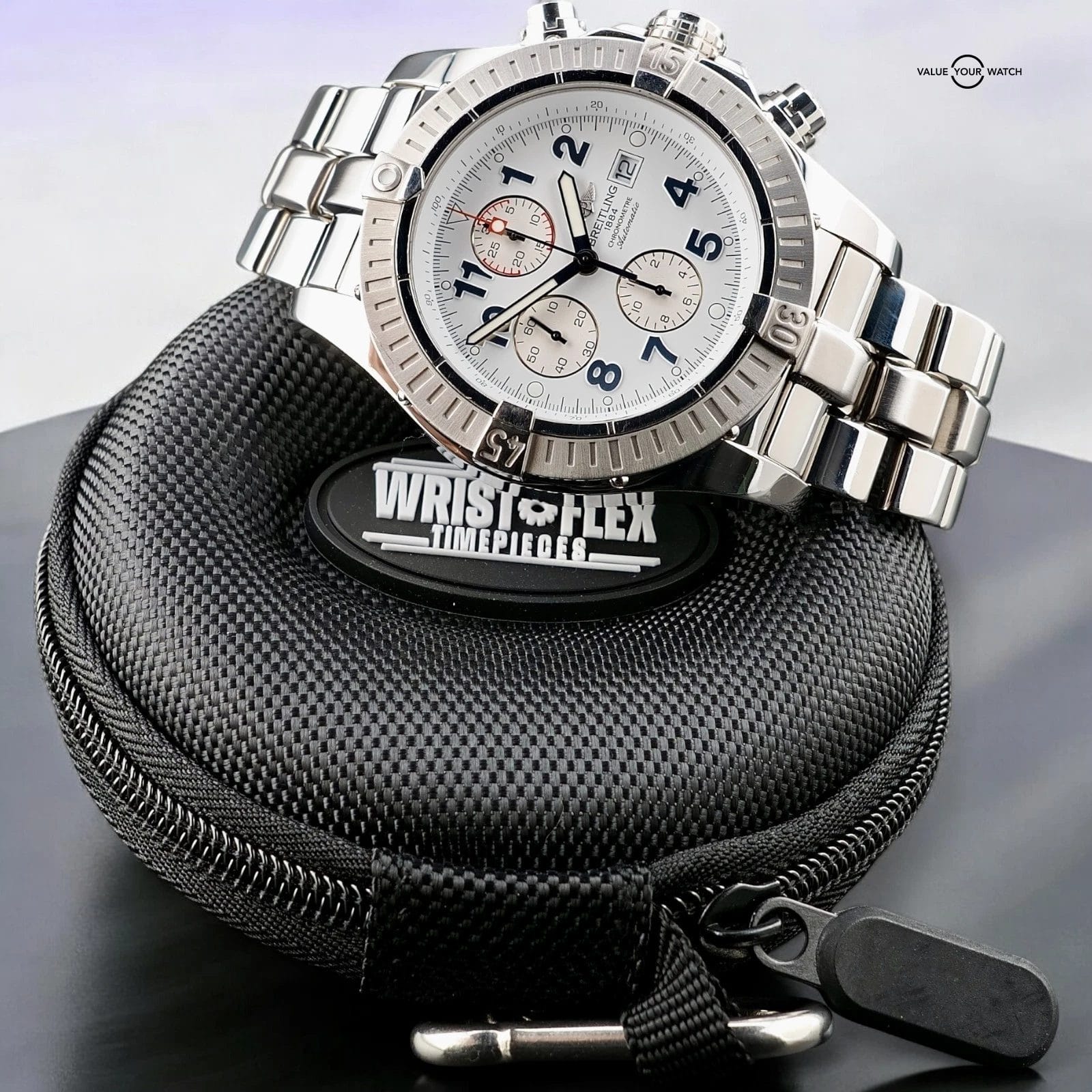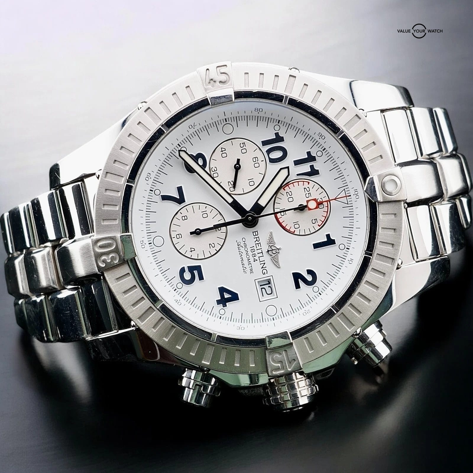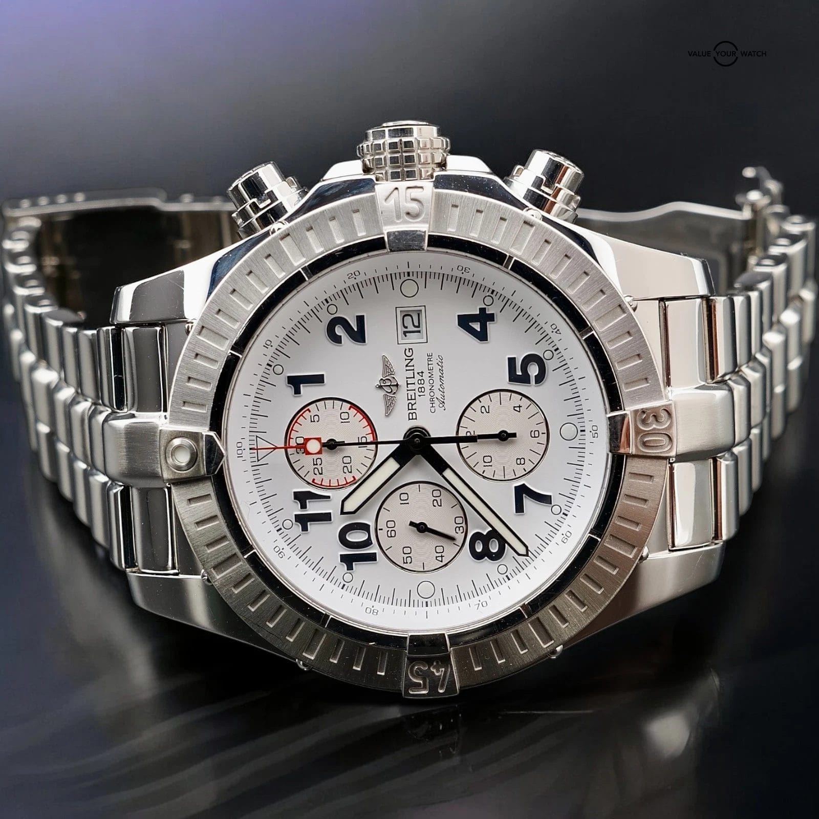 🔱 Breitling Super Avenger A13370 – 48mm White Dial Chronograph 🔱