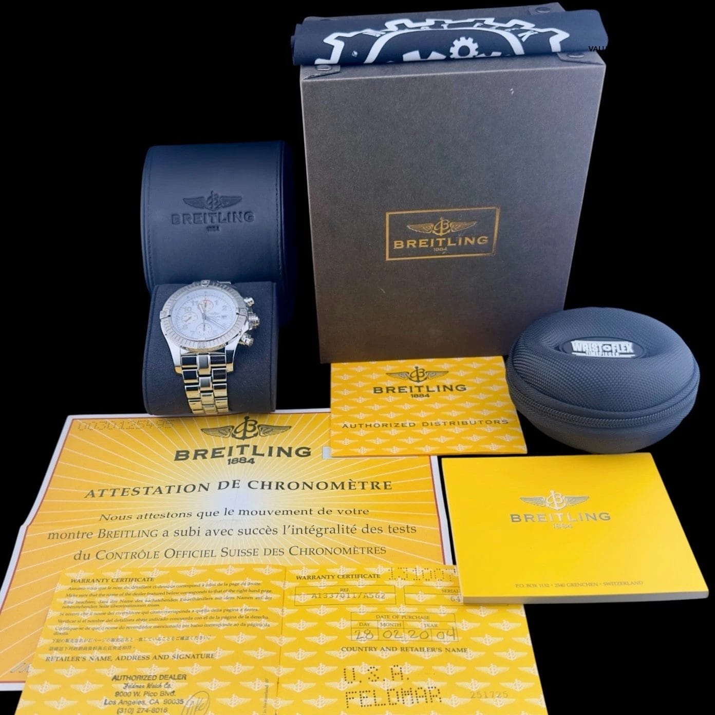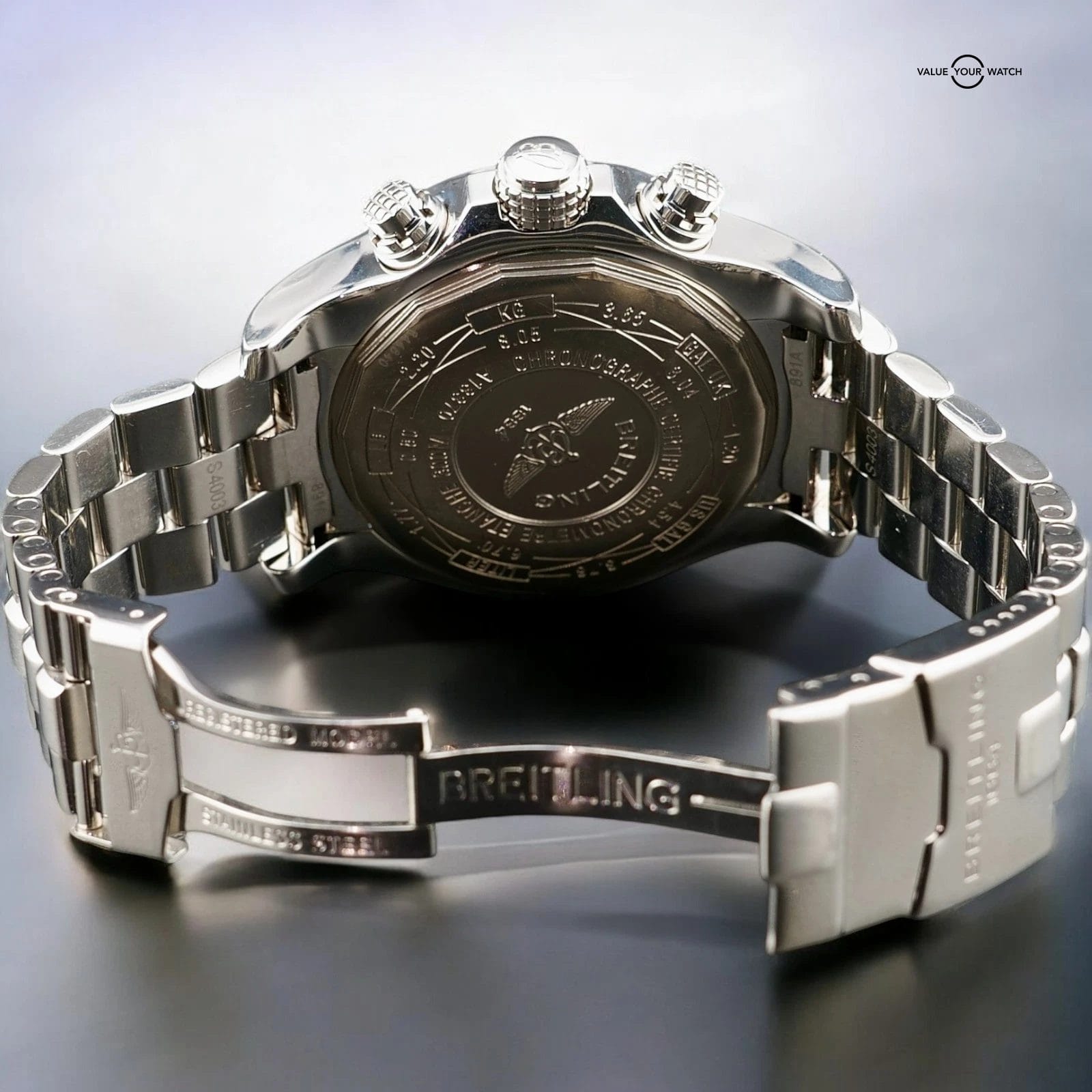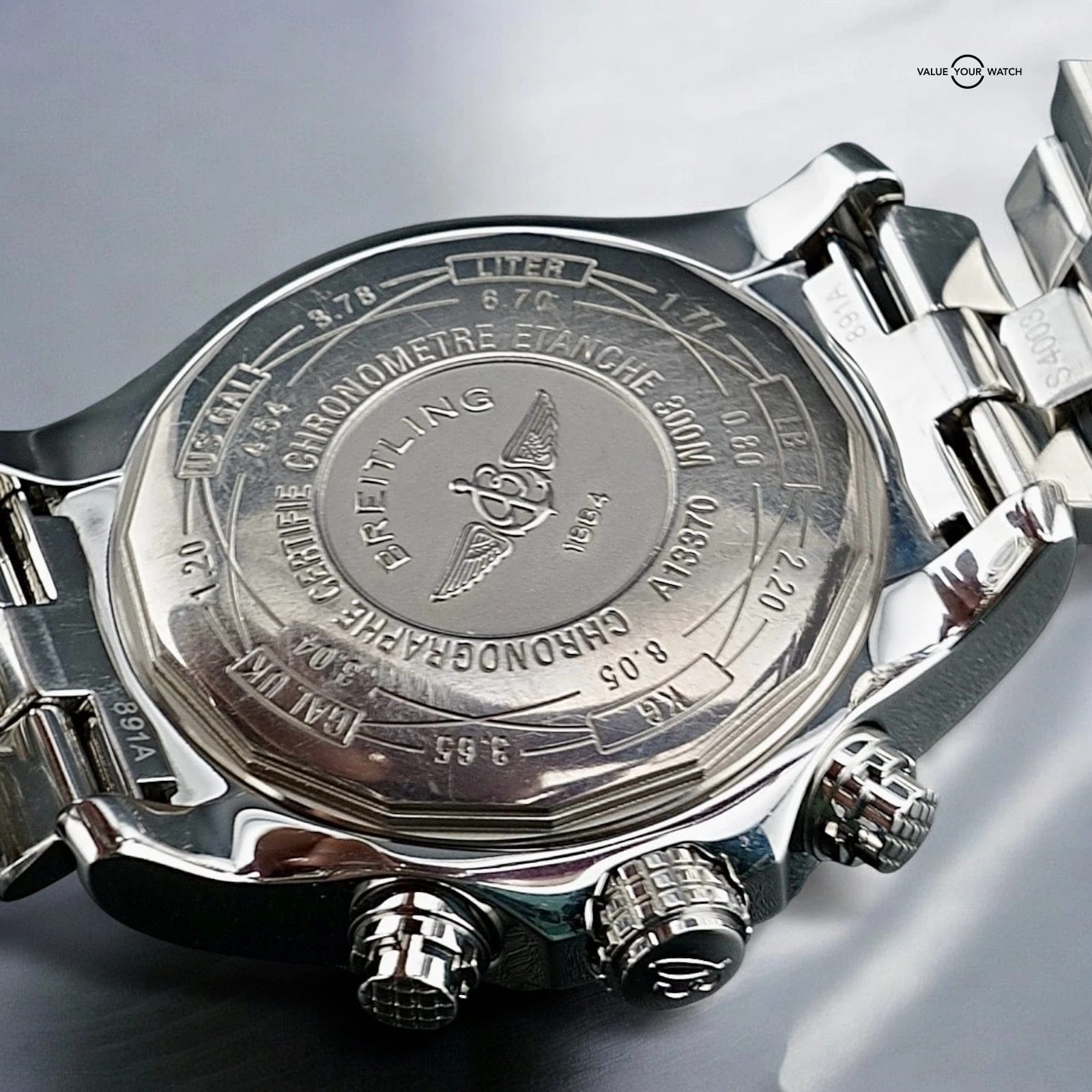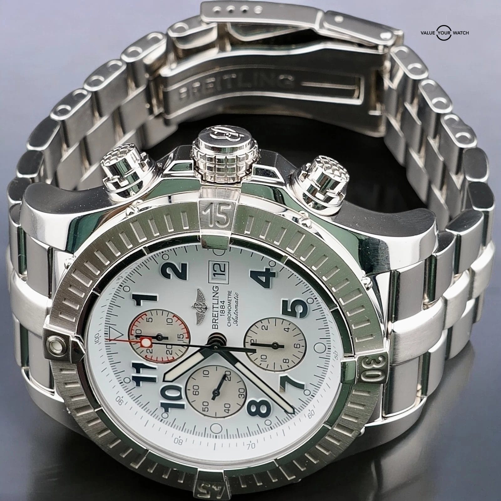 Specification: Breitling Super Avenger A13370 -48mm White Dial Steel Chrono, Full Set Box & P