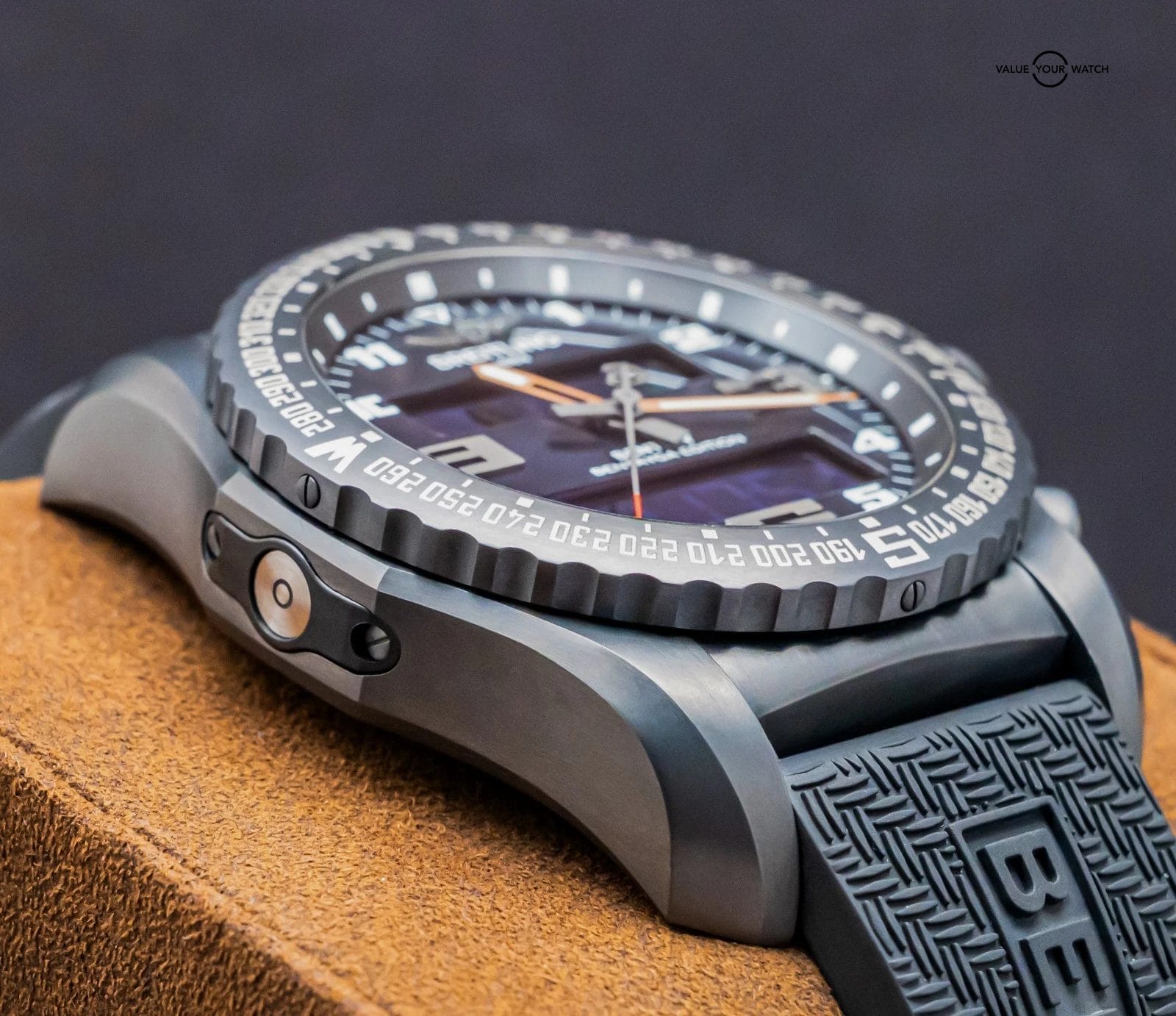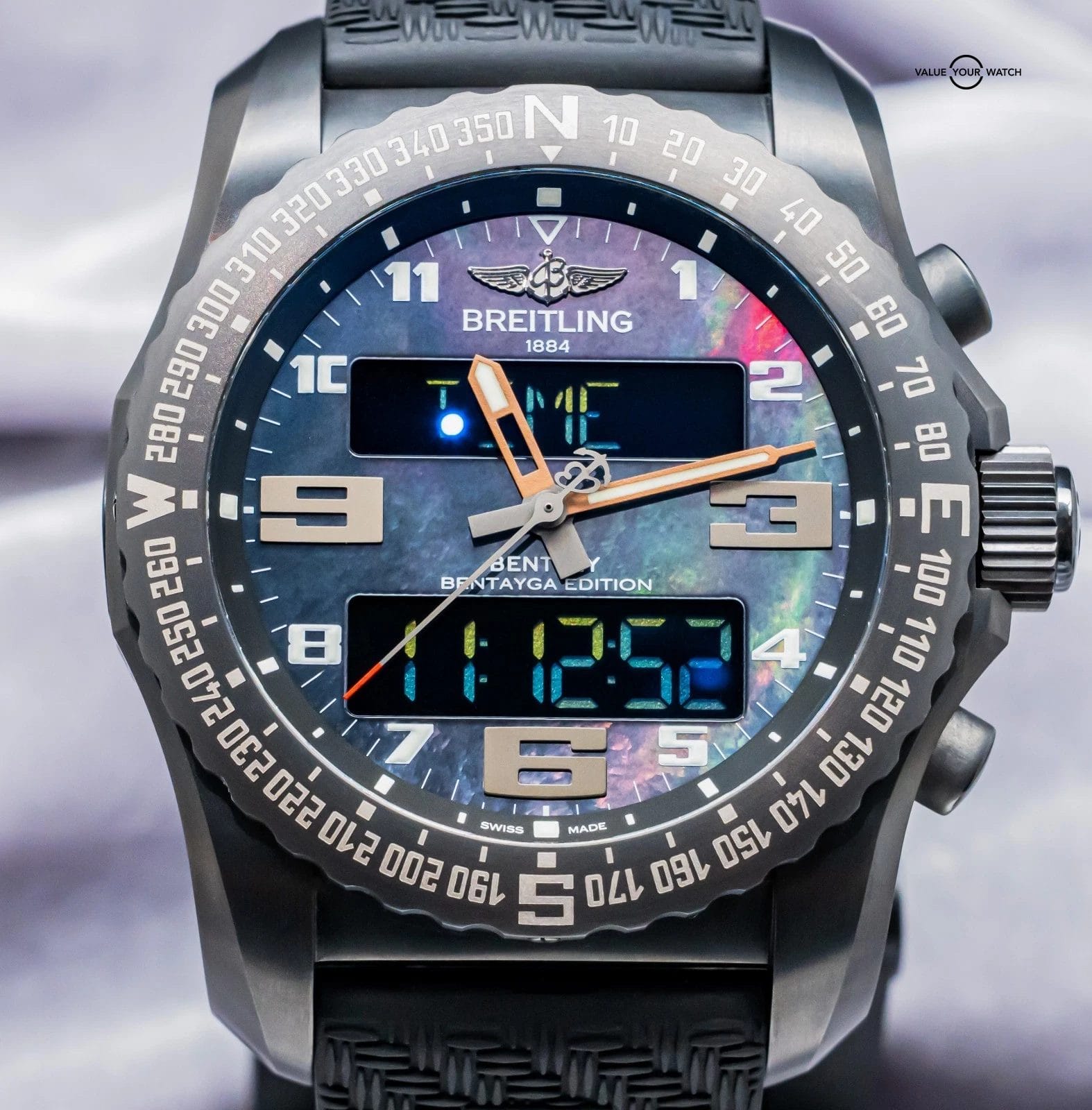 STUNNING Breitling Bentley Bentayga Cockpit B50 Professional 46 mm in Black Titanium with Blue Mother of Pearl Dial on Matching Black Titanium Deploy & Bentley Rubber! Arrives with original Breitling boxes and brand new Breitling charger kit. KILLER Dial! This B50 was FULLY SERVICED at Breitling in November 2025, a huge value-add. Have peace of mind, this piece is under WARRANTY until November 2026!