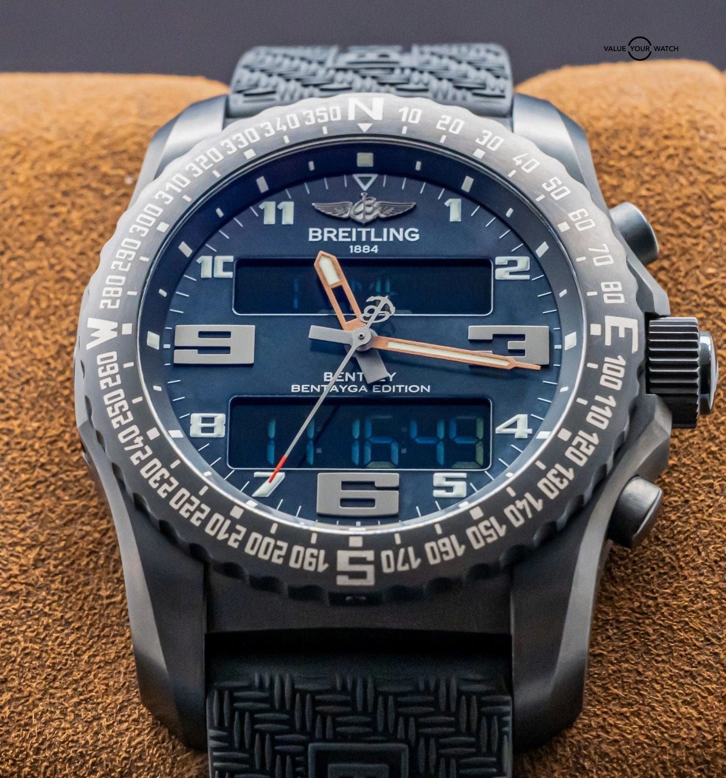 These Bentley Bentayga Special Editions of the B50 are simply the BEST versions of the B50 ever made, the dials are simply exquisite. Do excuse dust/lint in the pictures from the photography process. This B50 has very minor wear but is incredibly clean overall. The watch is a marvel alone based on all of its many functions. Has the Flyback, UTC, GMT, Countdown, Alarm, and the Perpetual Day & Date functions. Honestly, I’ve only scratched the surface on the B50’s capabilities; it’s a fantastic watch to wear daily, and it’s even better for someone who wants to be confident in knowing they are buying a watch that is a tool at its roots!