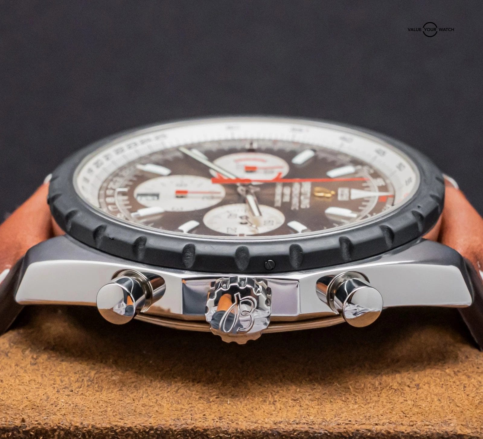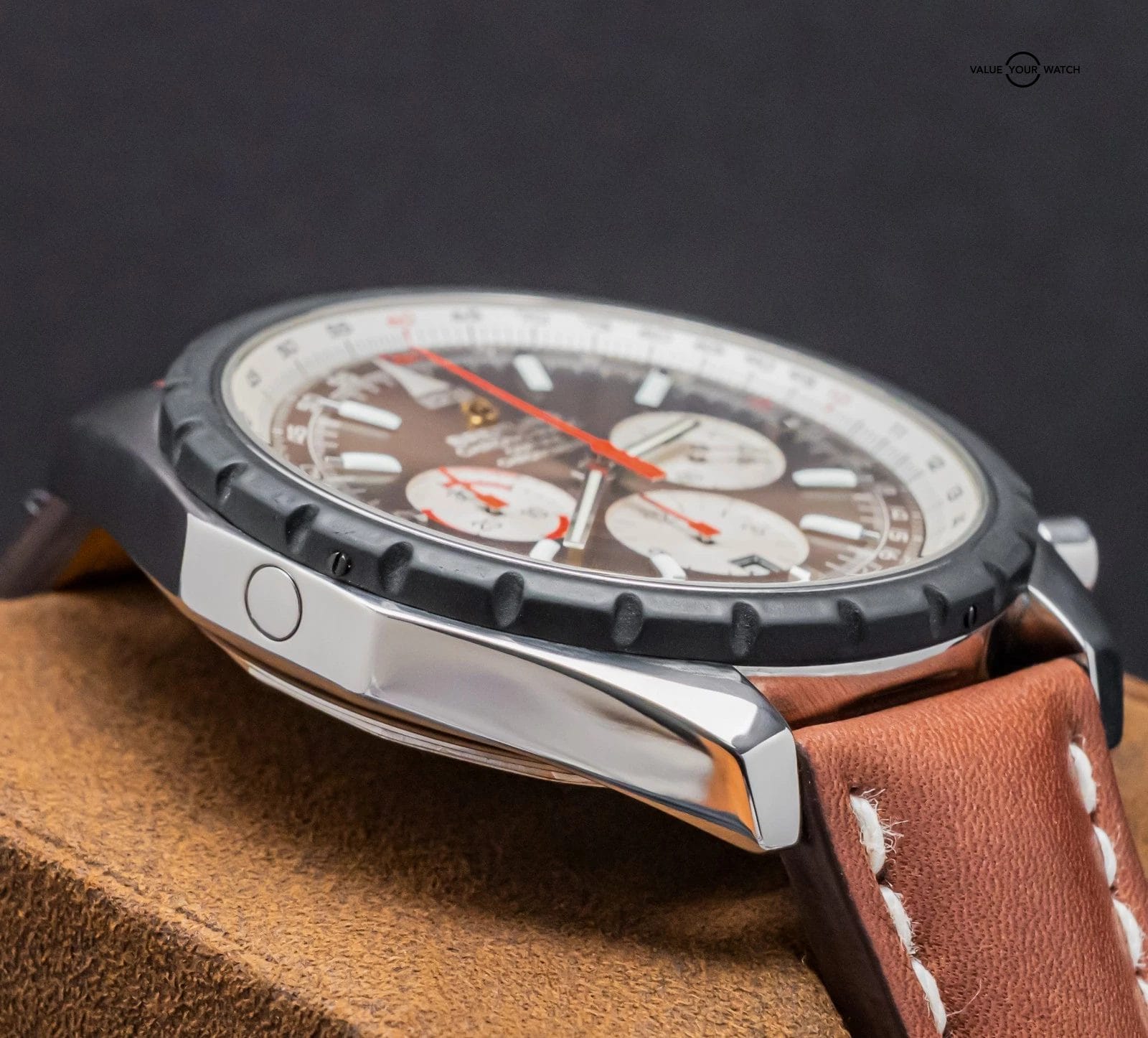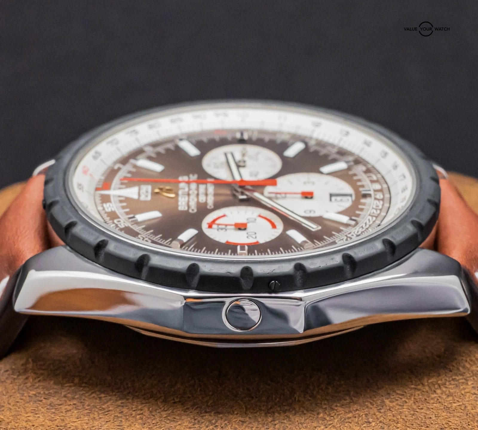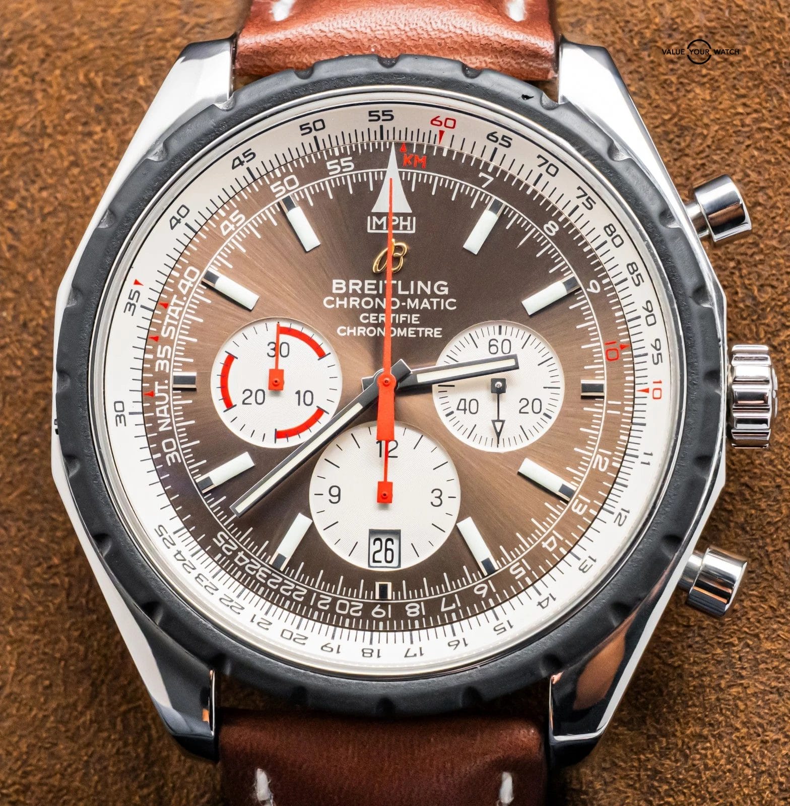STRIKING Breitling Chrono-Matic 49 mm with Brown Dial on BRAND NEW UNWORN Brown Breitling Leather! Arrives with original Breitling boxes and is a relatively rare piece to find with the Brown Dial; as we list, it is the only one for sale in the country. This piece was FULLY SERVICED at Breitling in November 2025, a huge value-add. Have peace of mind, this piece is WARRANTIED through Breitling until November 2026!