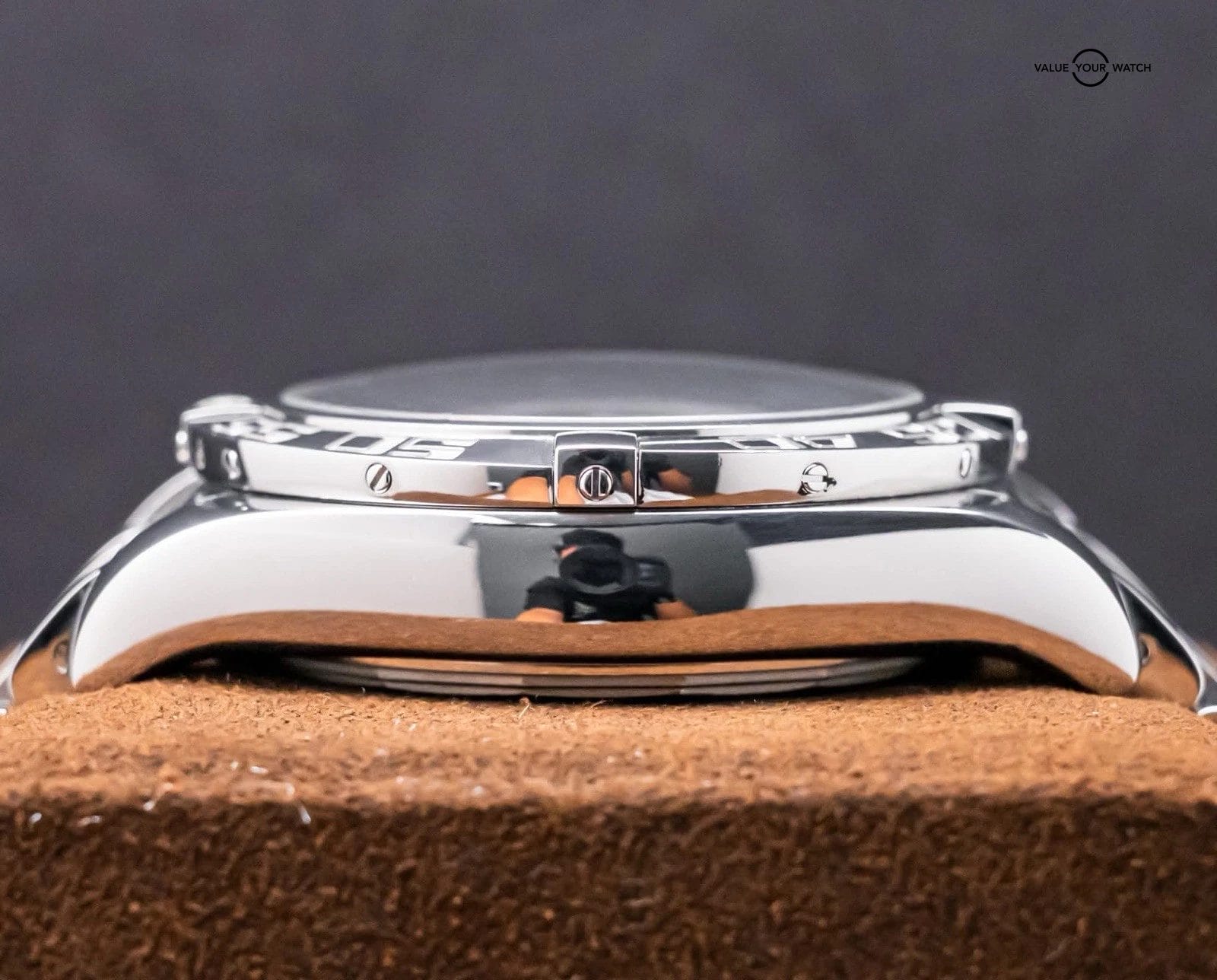 Do not hesitate to contact me with any questions. I sell over 700 watches per year, have fantastic reviews online, and thousands of references; I seek a very simple and pleasant buying experience for my clients through fostering relationships in the watch community. The serials have been blurred for privacy. The bracelet can accommodate a 6.85 inch wrist at maximum without additional links.